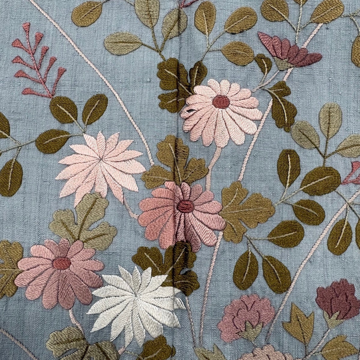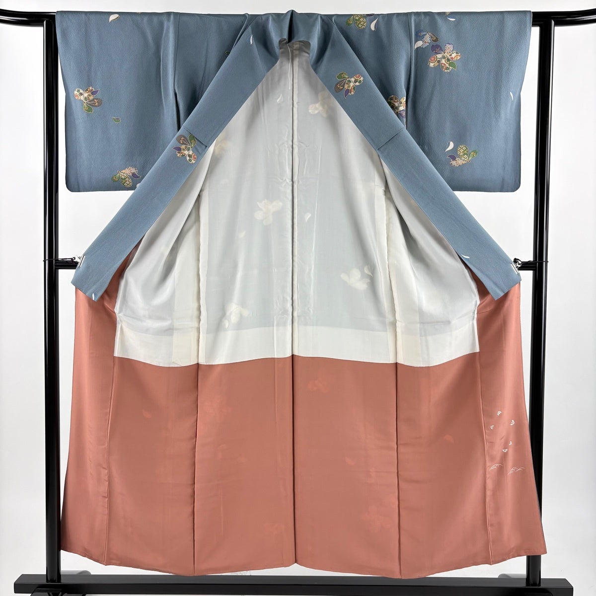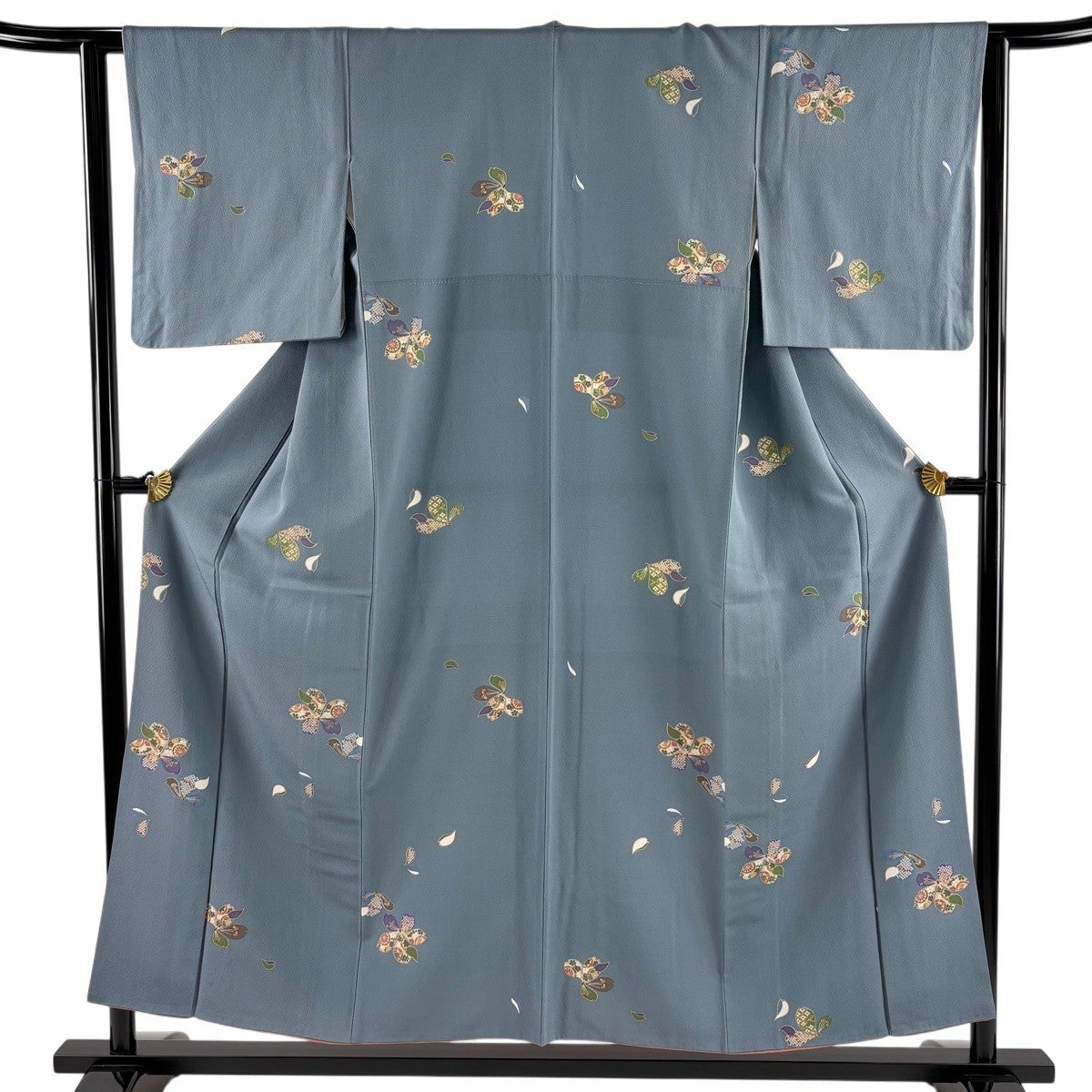 訪問着 身丈166cm 裄丈64cm M 袷 枝花 草花 ぼかし 青灰色 正絹 秀品