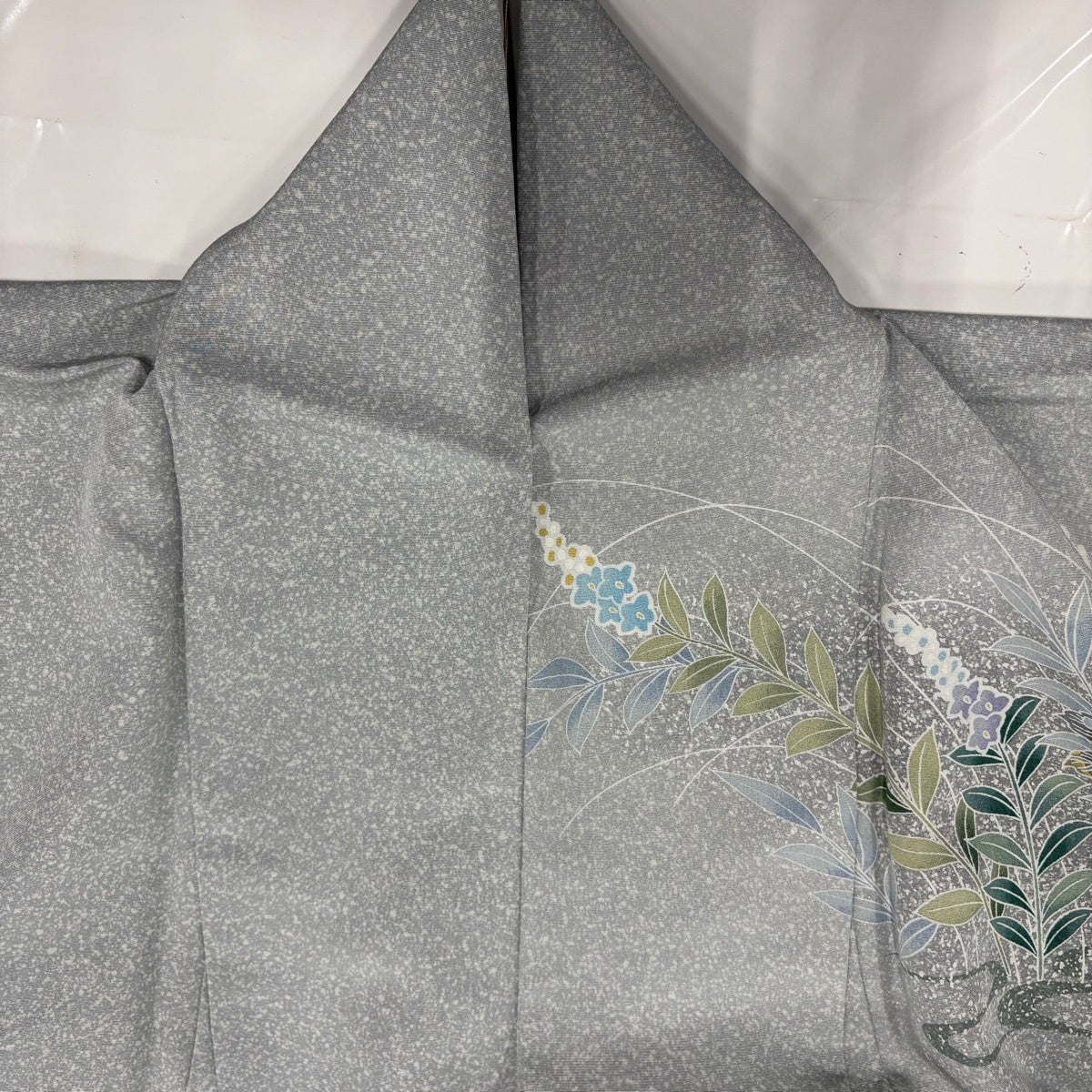 付下げ 身丈163.5cm 裄丈67cm M 袷 ふくろう 萩 金彩 縦ぼかし 青灰色 正絹 名品