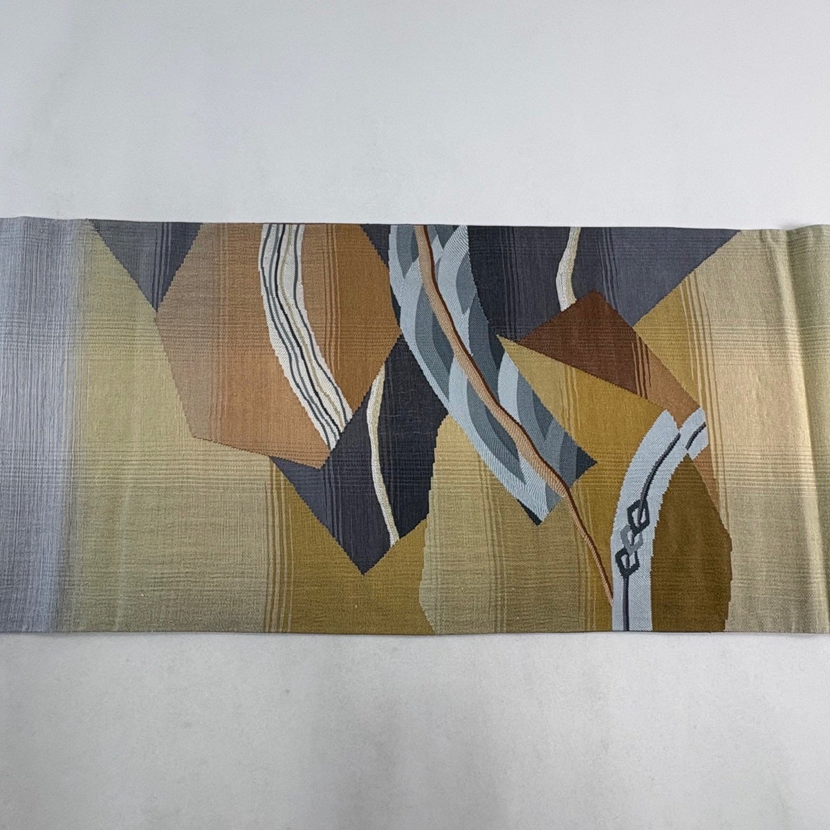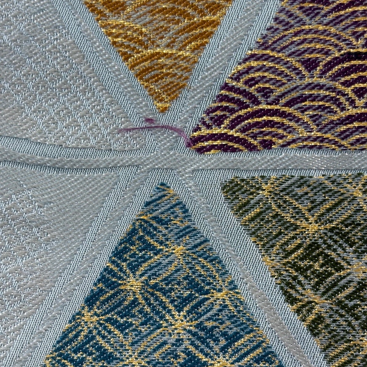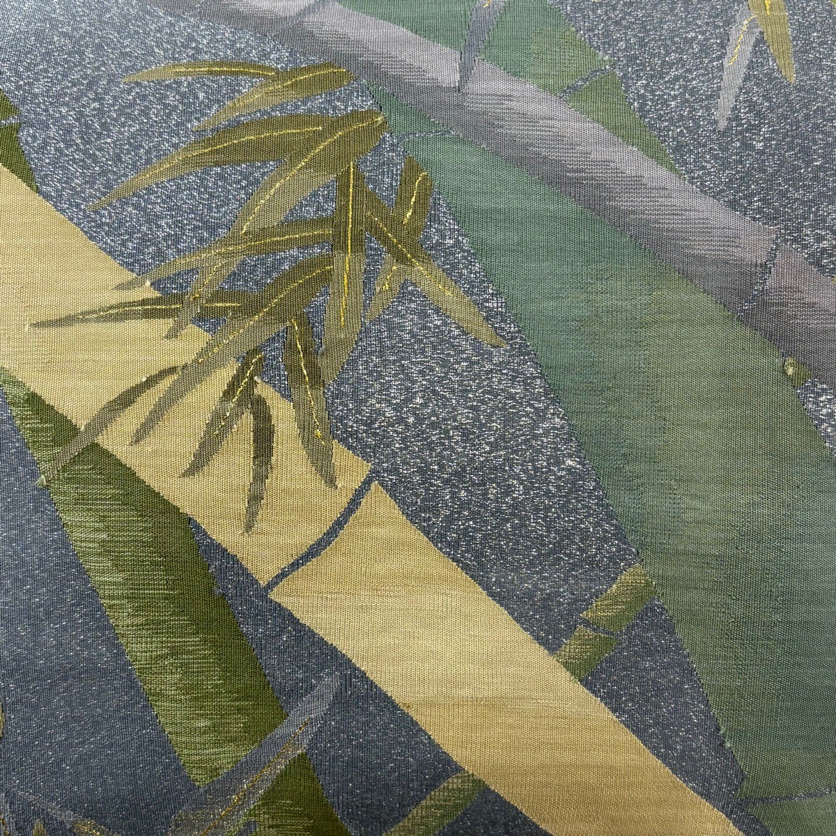 【美品】 袋帯 秀品 幾何学模様 金銀糸 青灰色 お太鼓柄 正絹