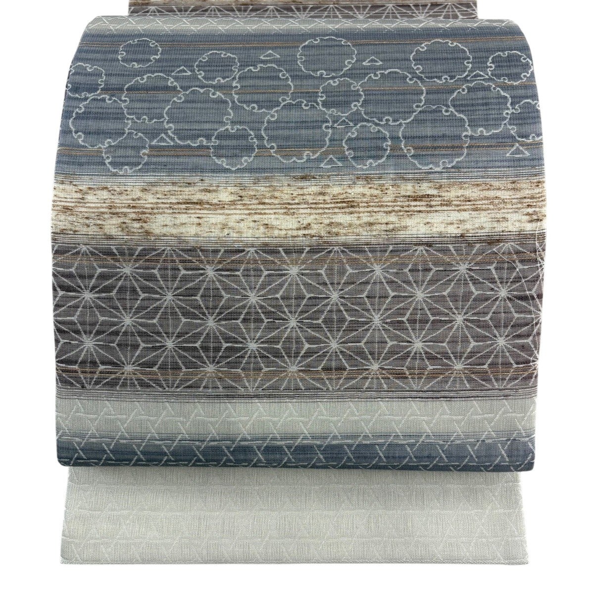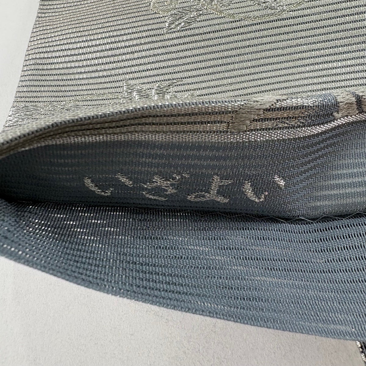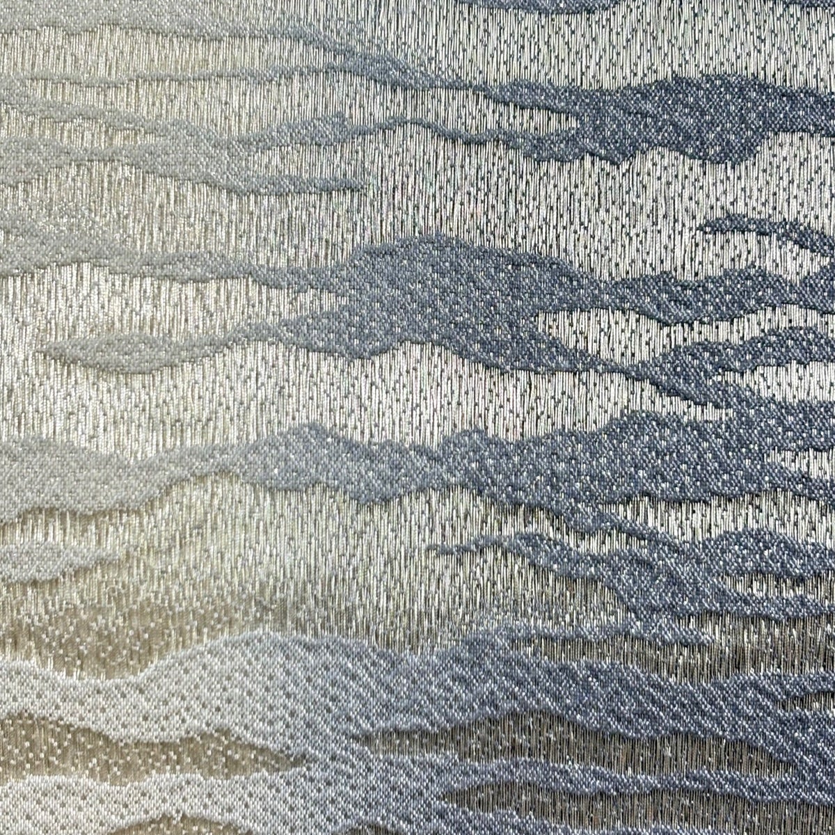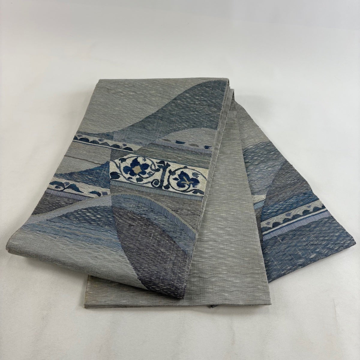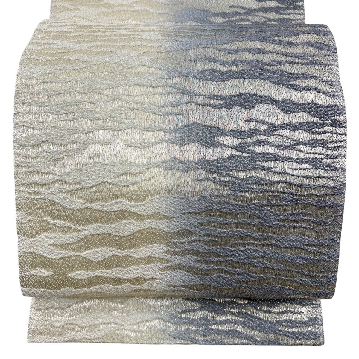 【美品】 袋帯 秀品 紬地 山並み ぼかし 青灰色 お太鼓柄 正絹