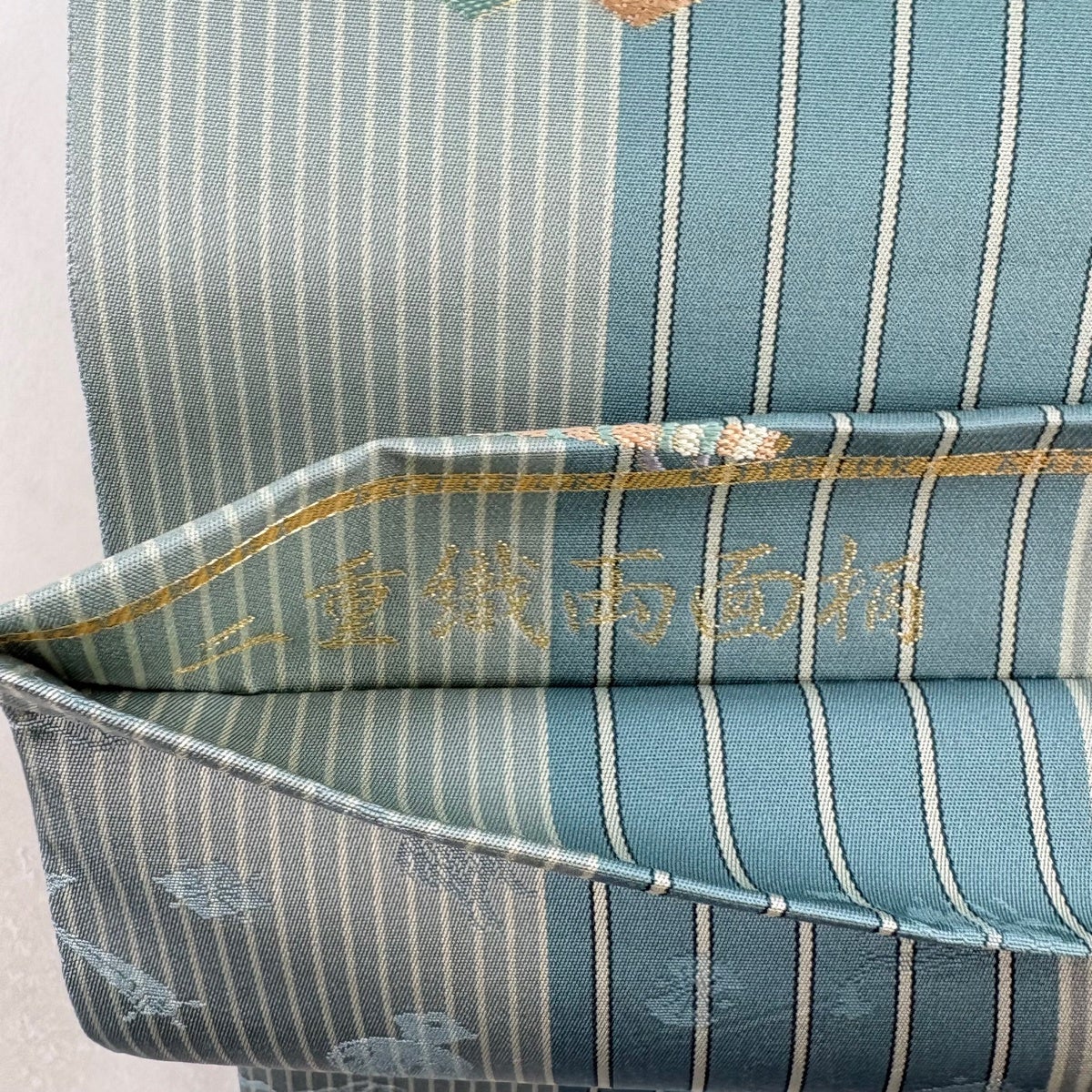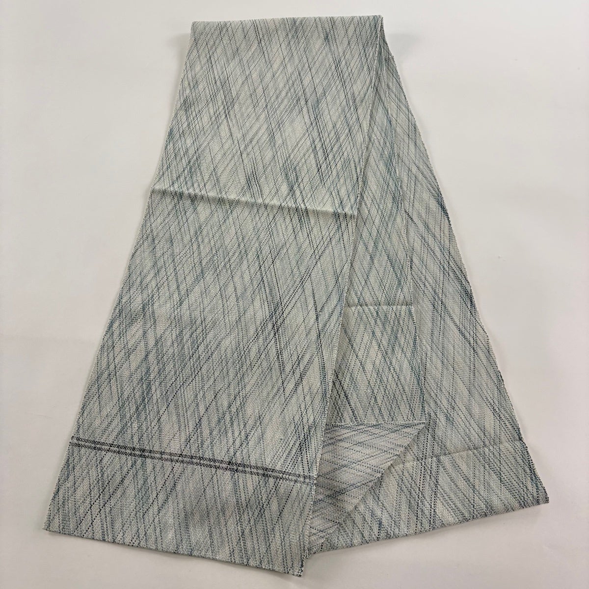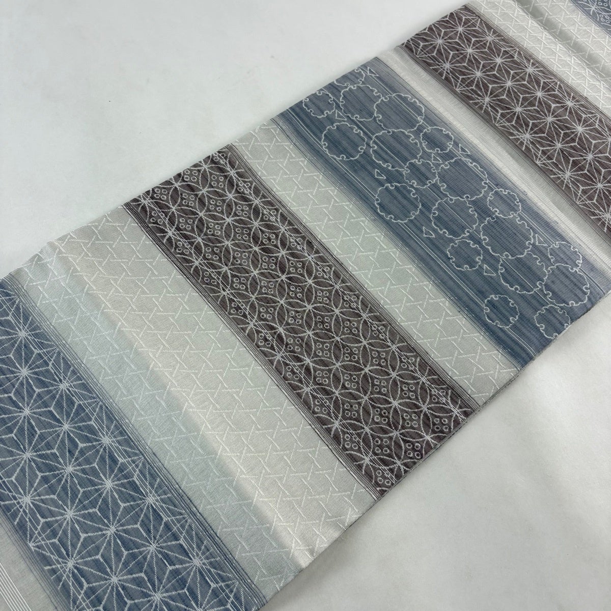【美品】半幅帯 優品 証紙あり 博多織 間道柄 独鈷 青灰色 正絹