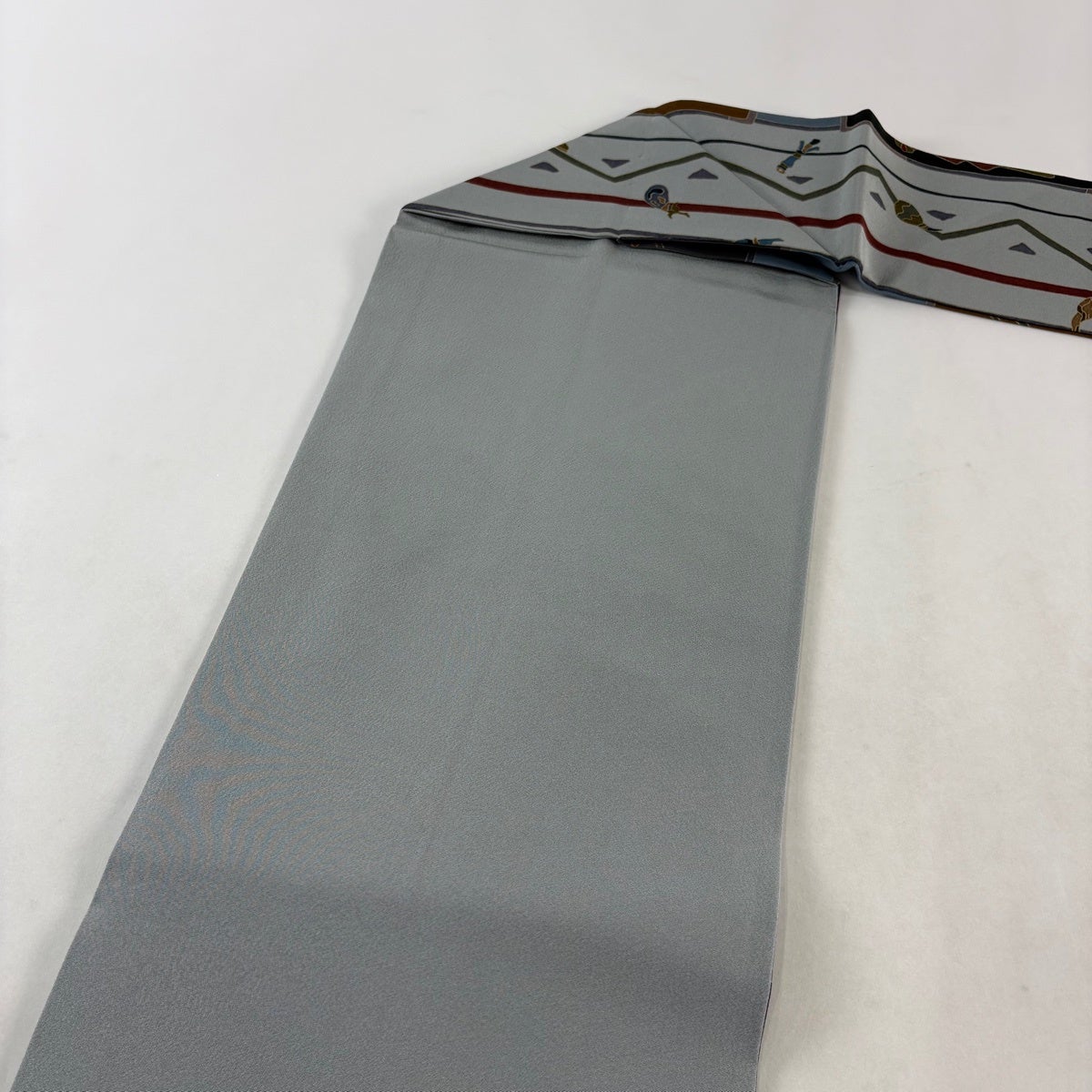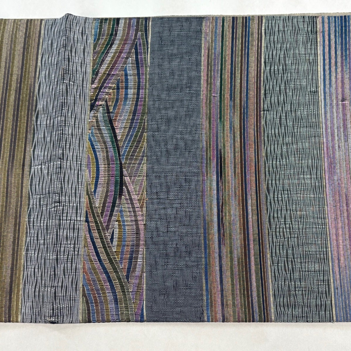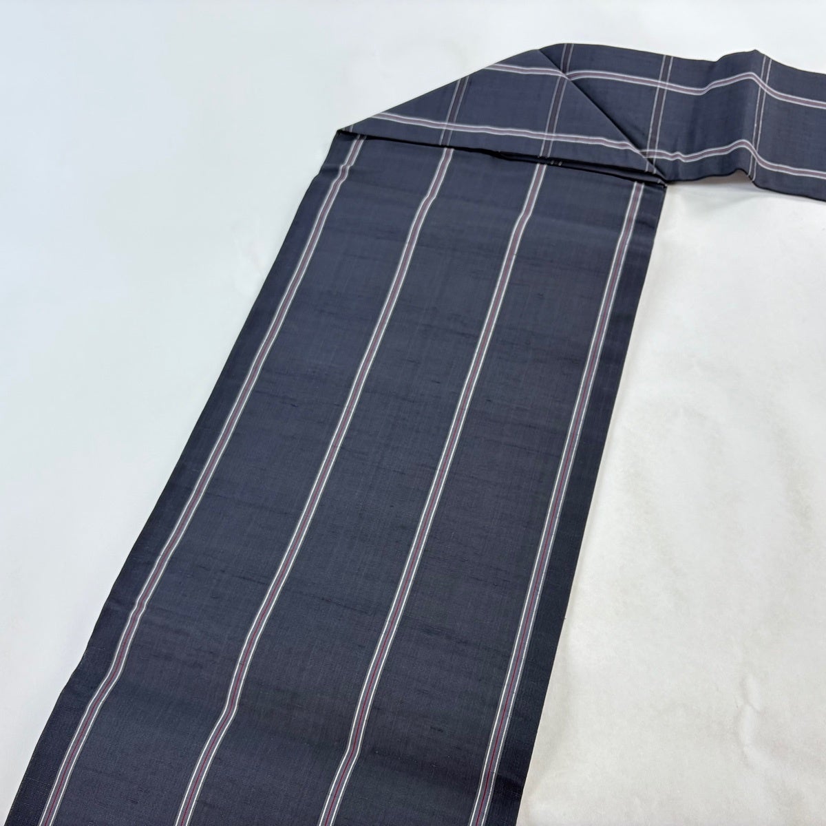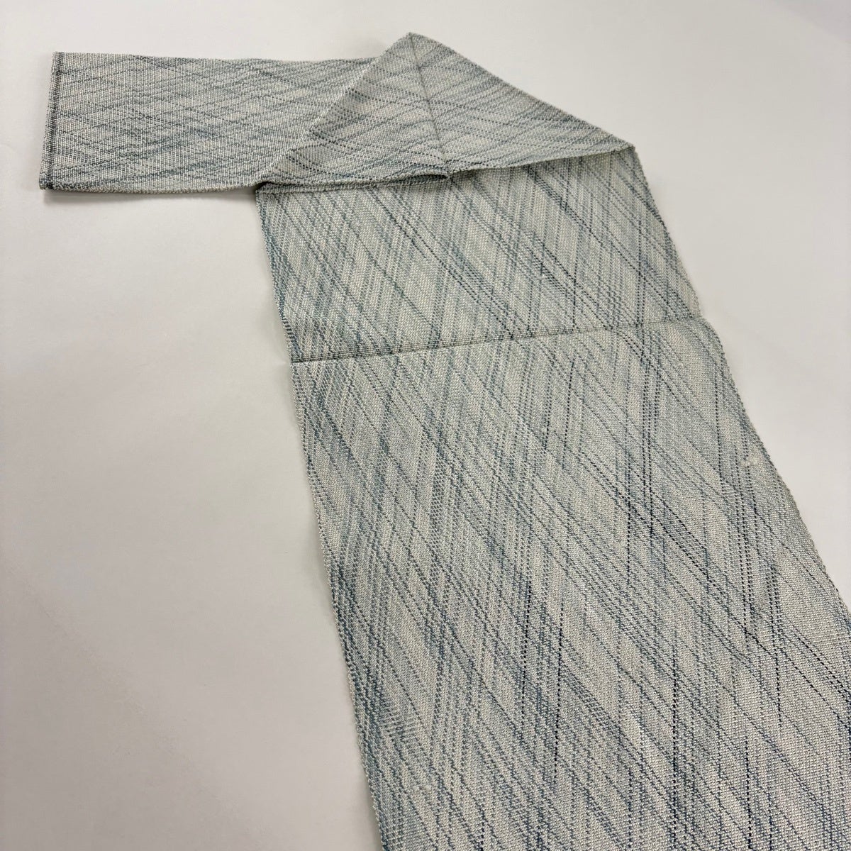 【美品】半幅帯 優品 証紙あり 博多織 間道柄 独鈷 青灰色 正絹