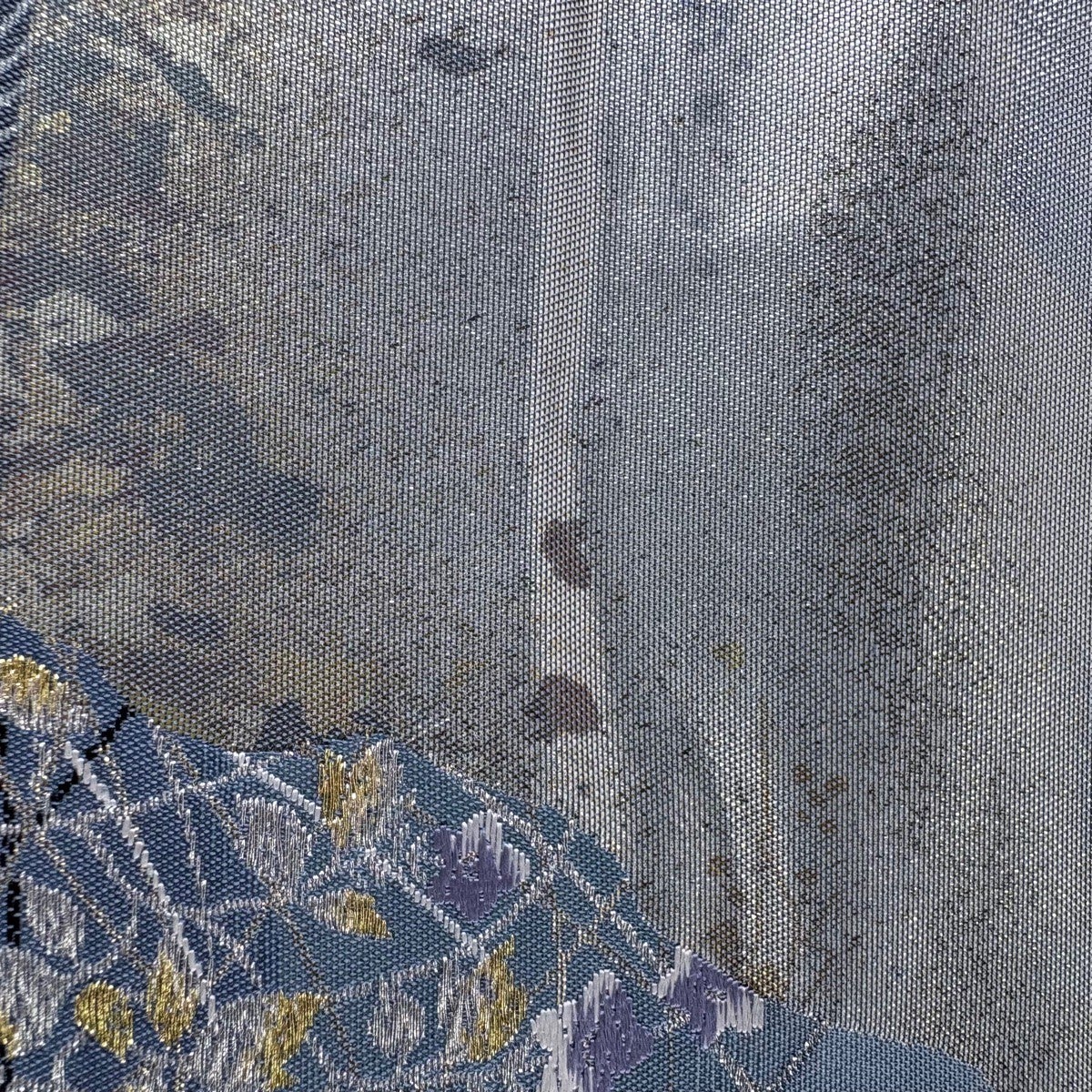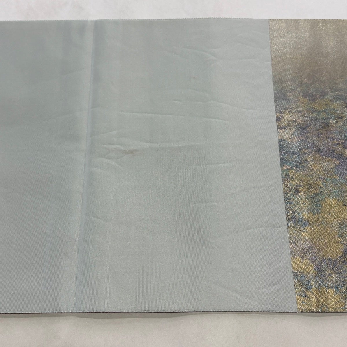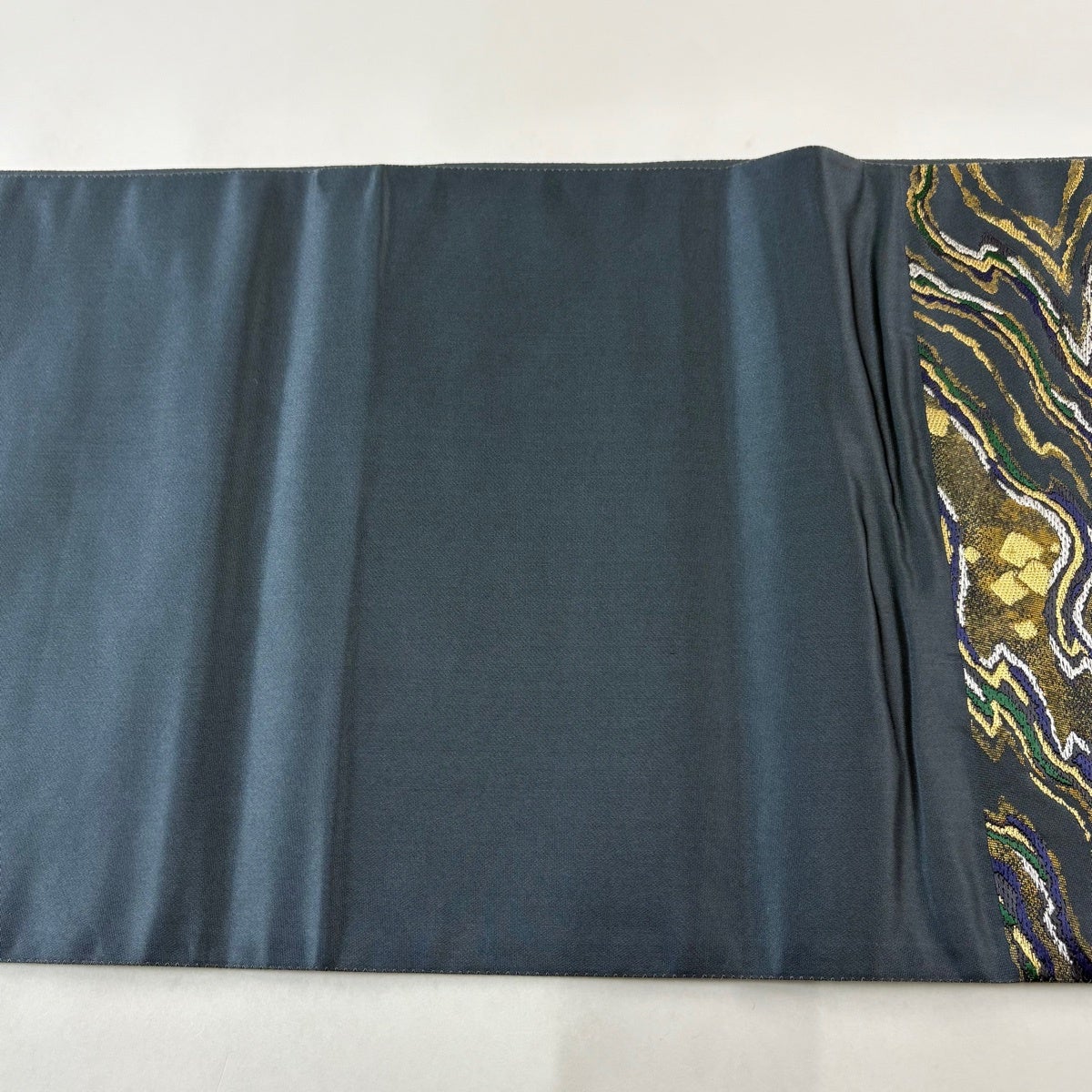 30%OFF 袋帯 秀品 生り物 色紙 青灰色 全通 正絹 K30
