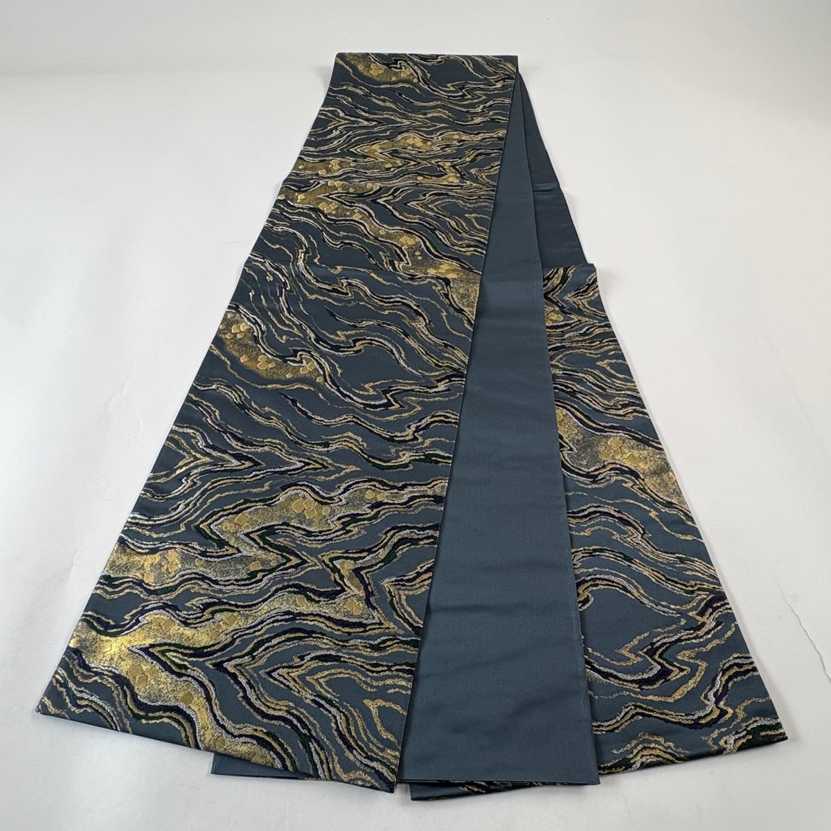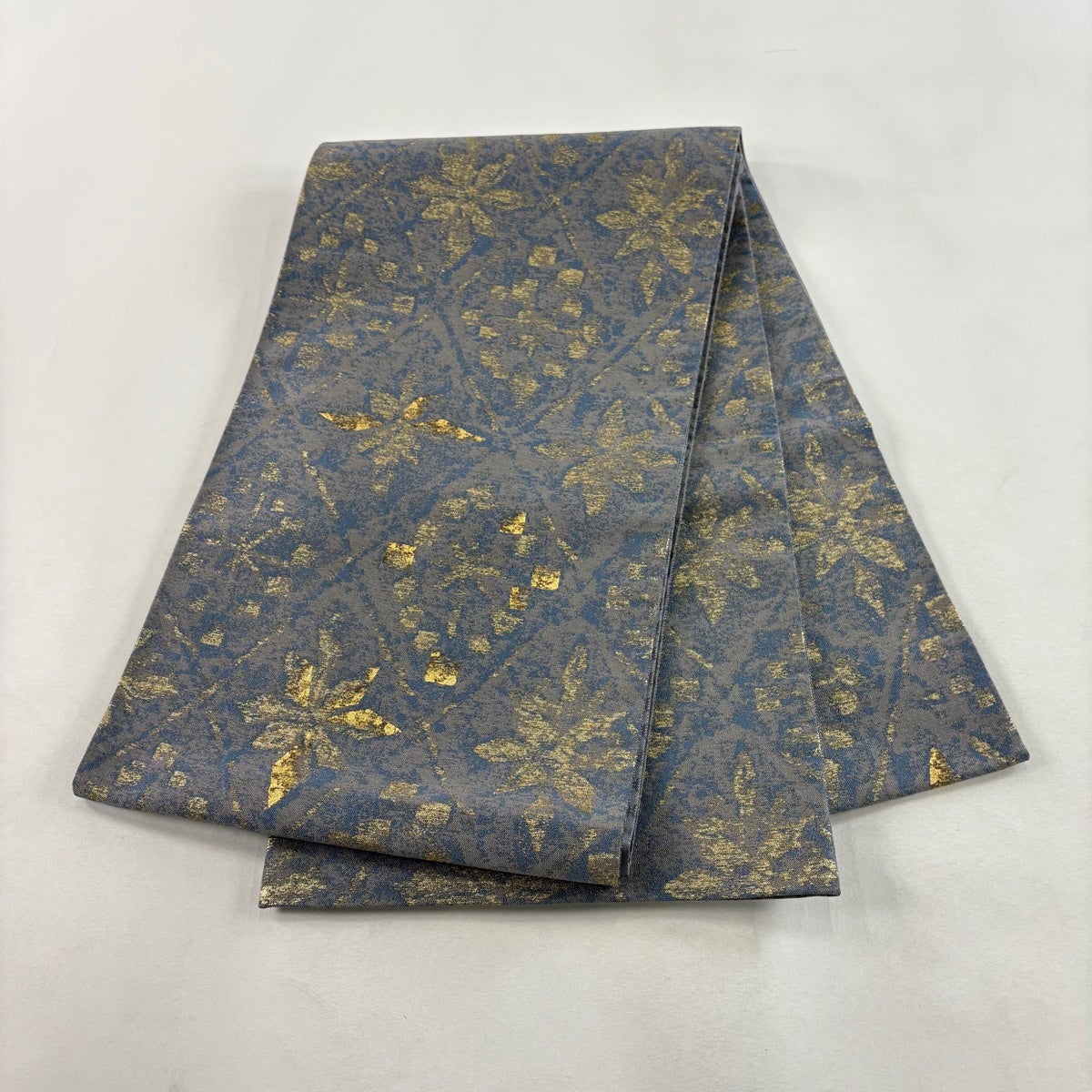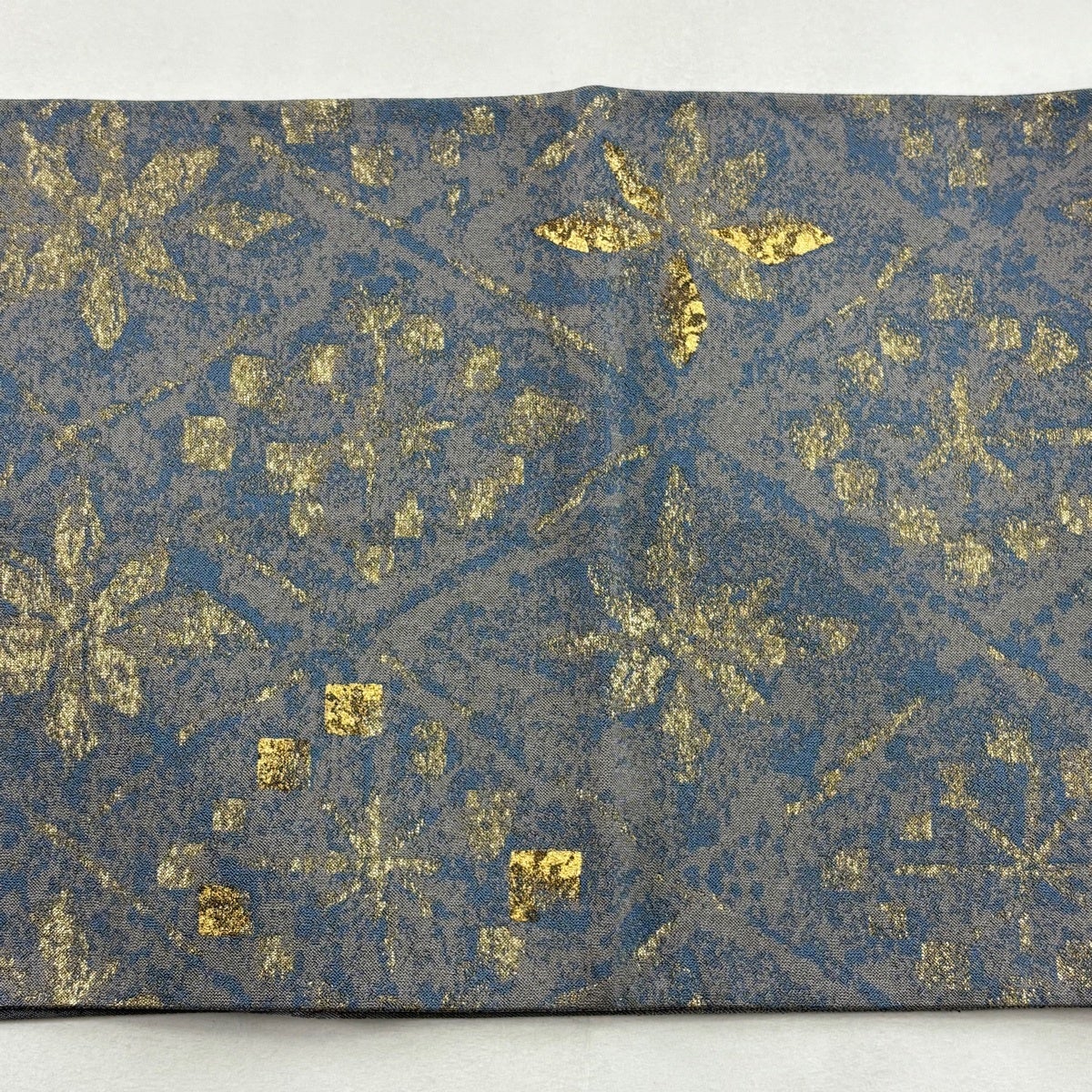 50%OFF 袋帯 秀品 幾何学 箔 青灰色 六通 正絹 K50
