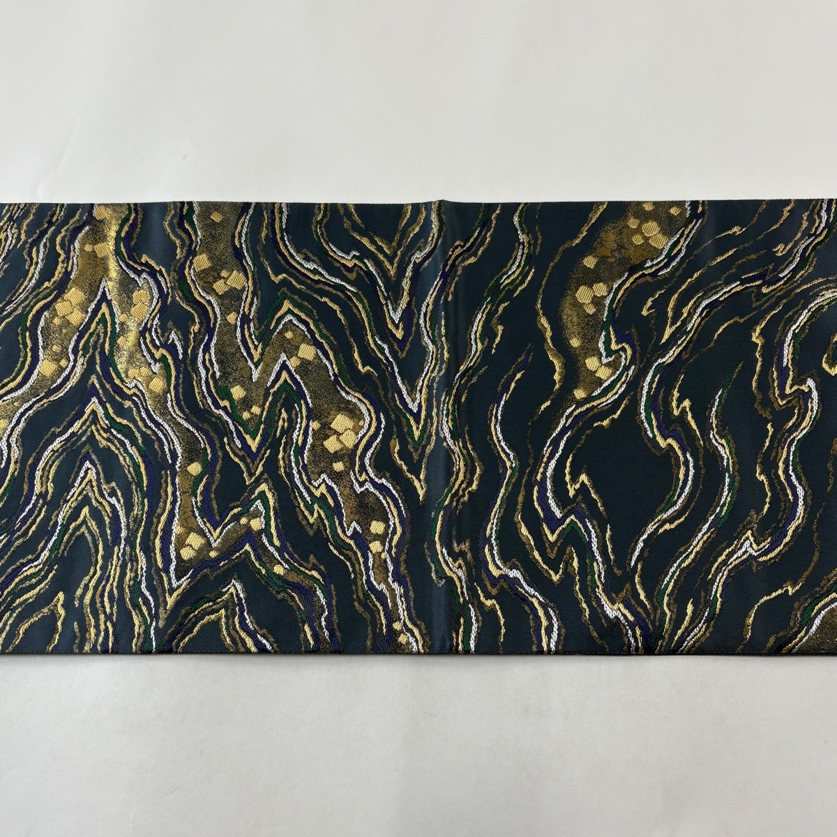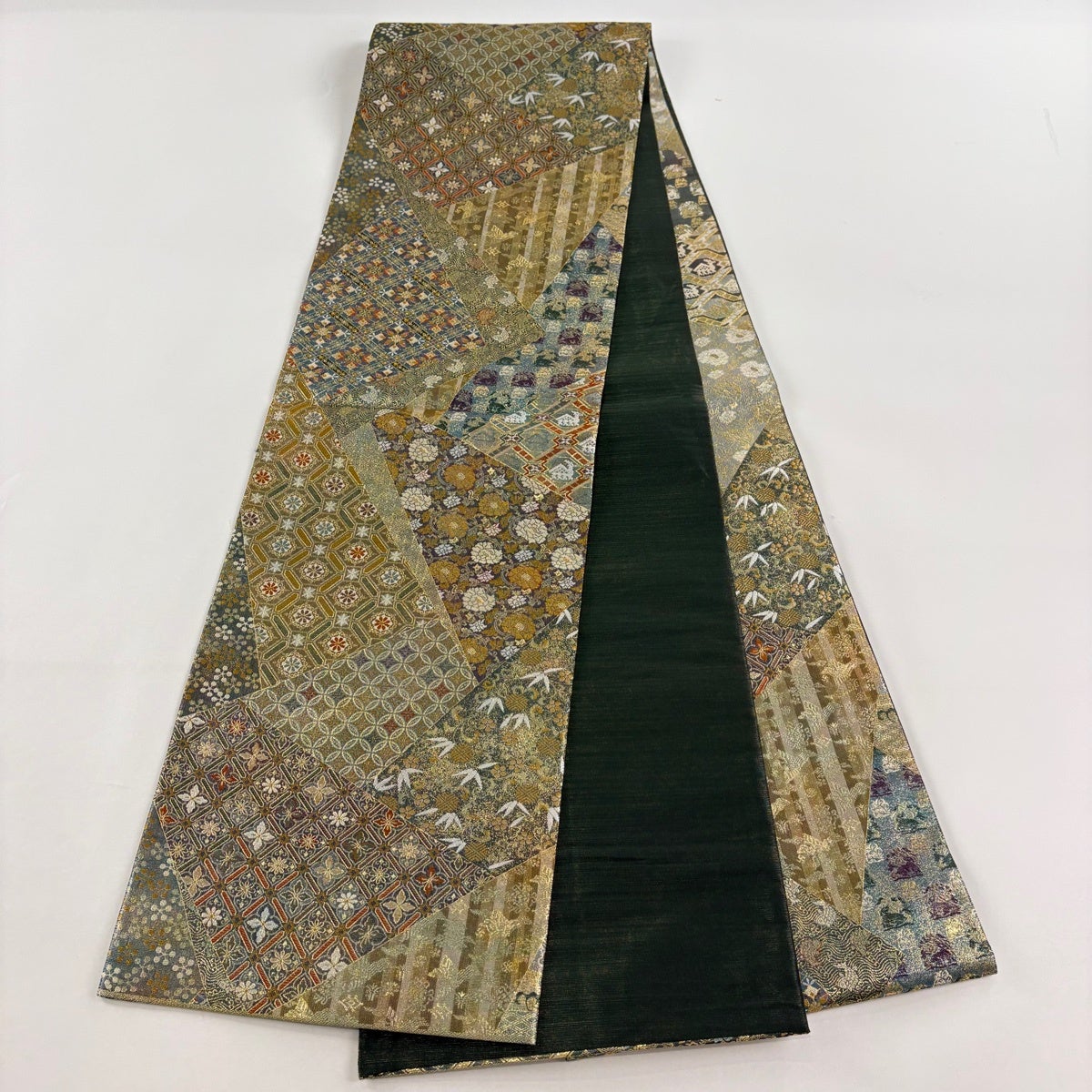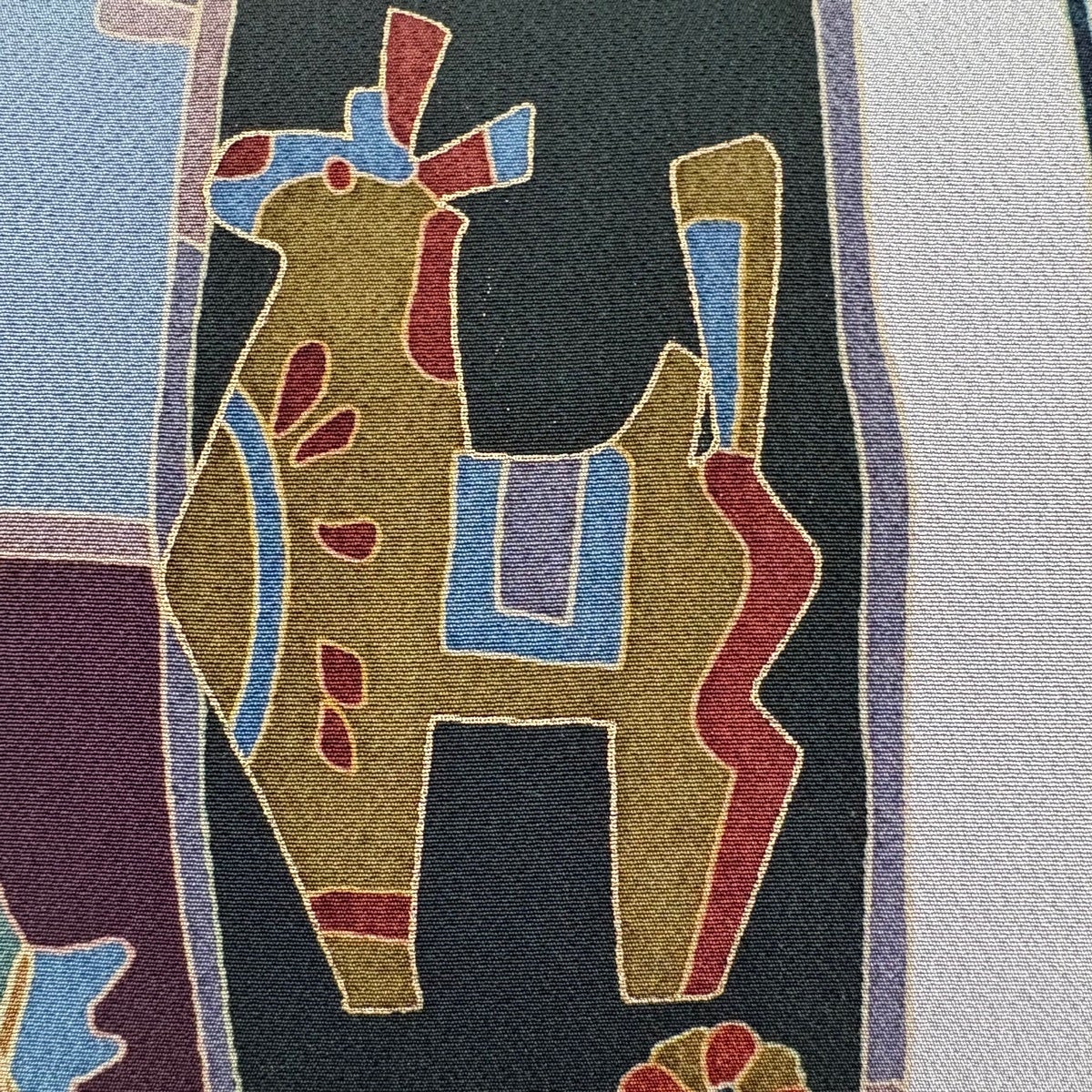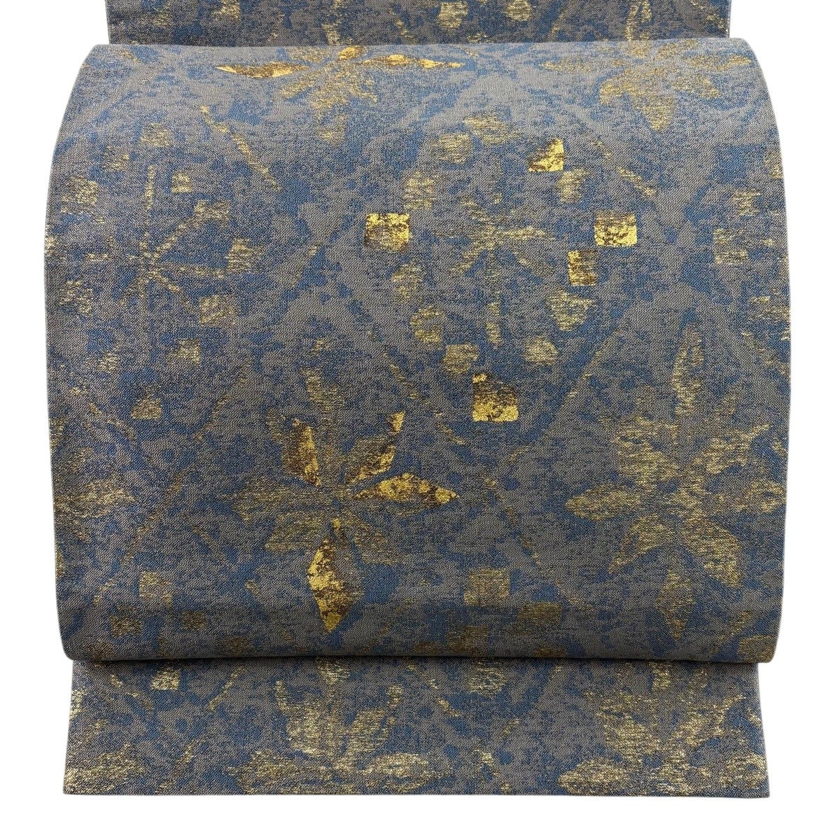 50%OFF 袋帯 秀品 幾何学 箔 青灰色 六通 正絹 K50