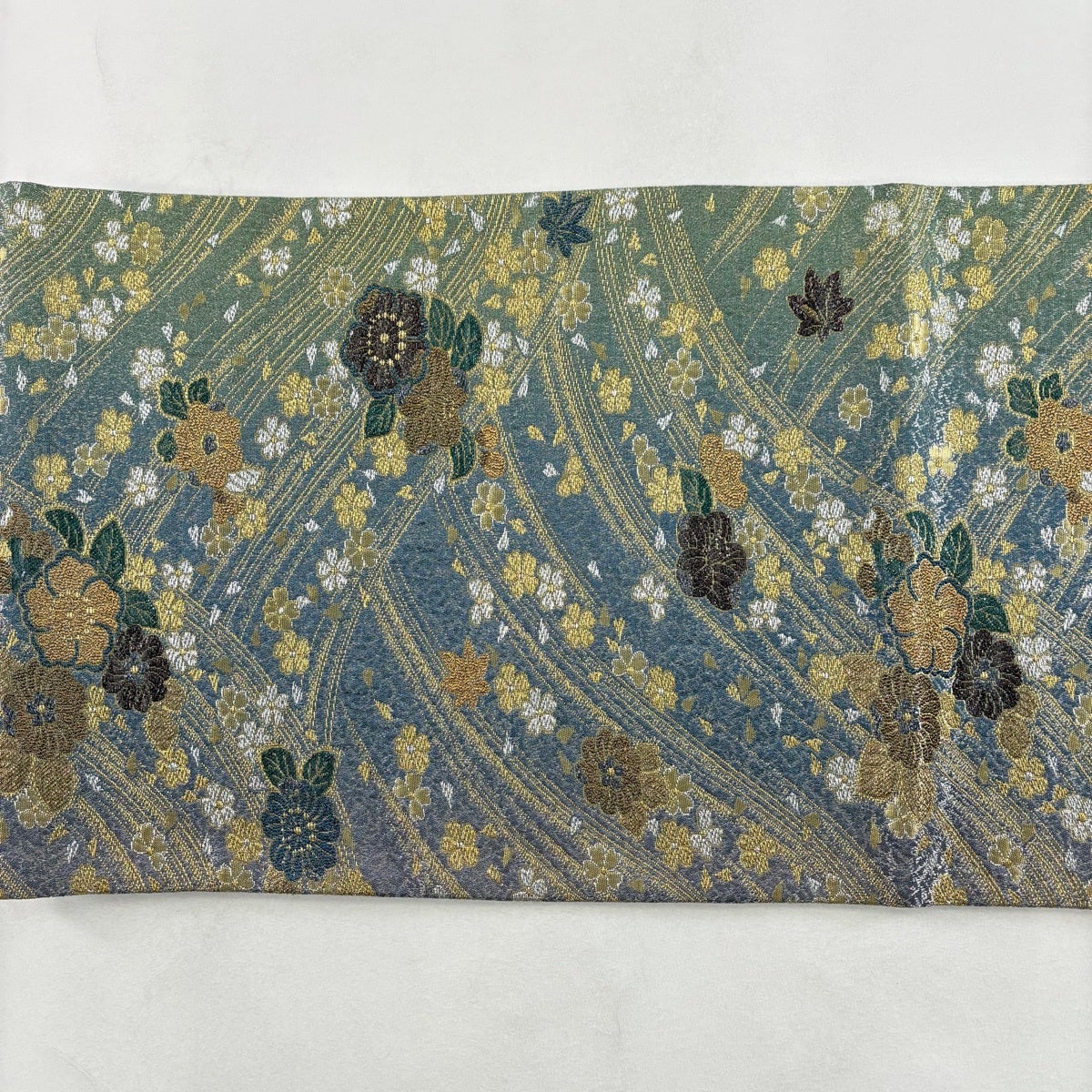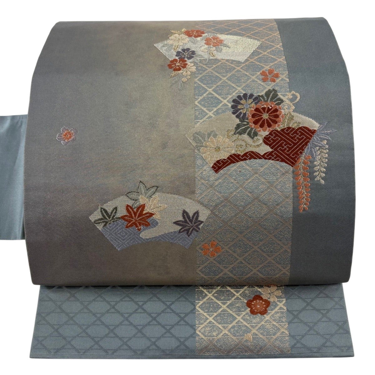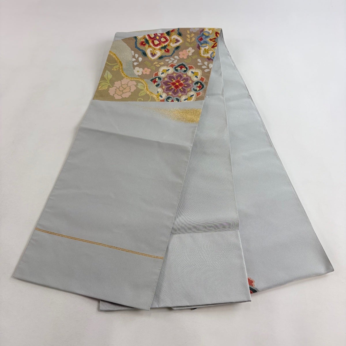 50%OFF 袋帯 秀品 花 疋田柄 青灰色 六通 正絹 K50