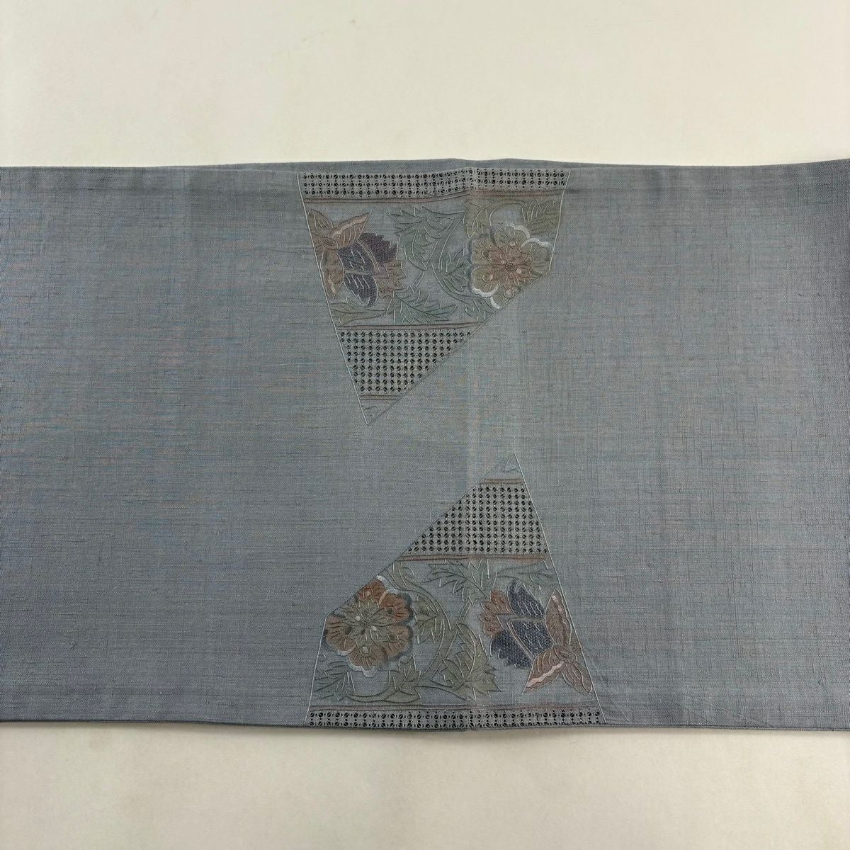 30%OFF 名古屋帯 秀品 花 霞 刺繍 青灰色 正絹 K30