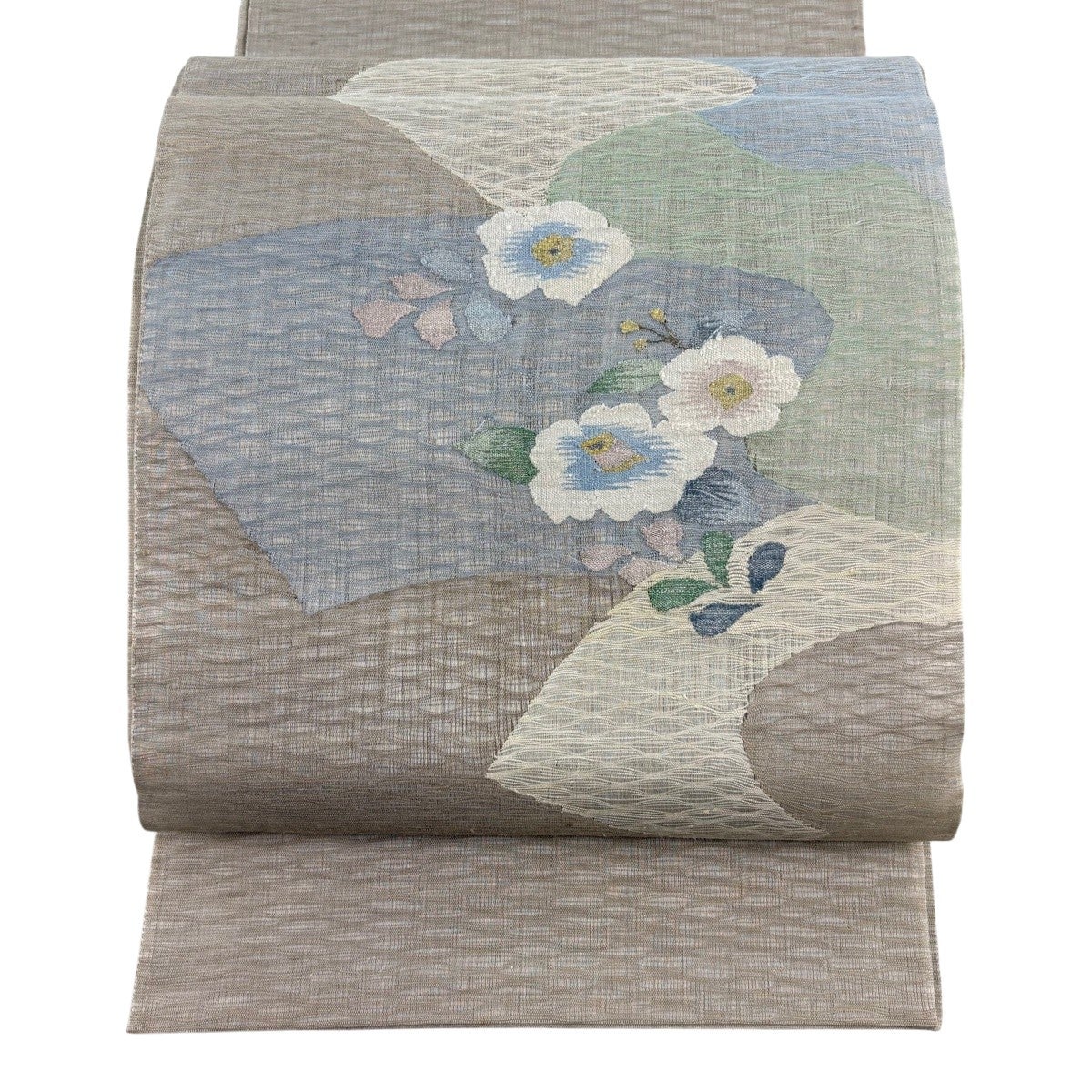 30%OFF 名古屋帯 名品 紬地 夏帯 草花 青灰色 麻 K30