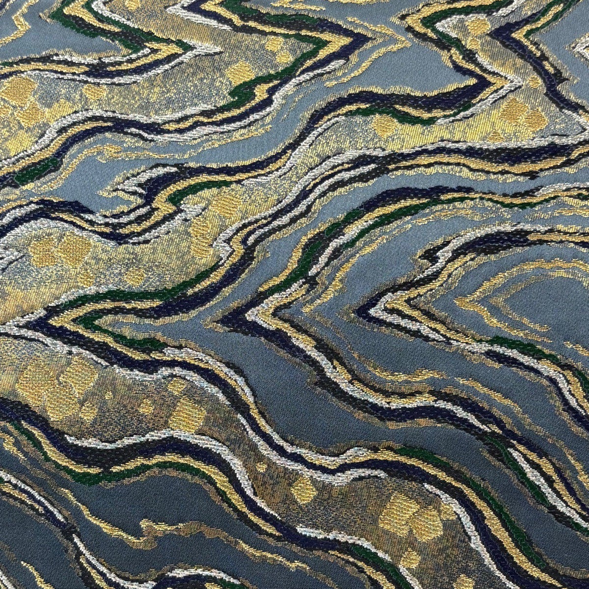【美品】 袋帯 秀品 流水 箔散らし 金銀糸 箔 青灰色 六通 正絹