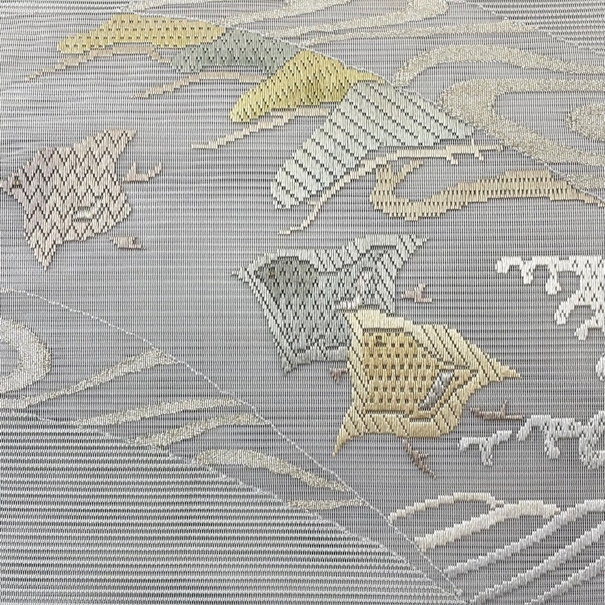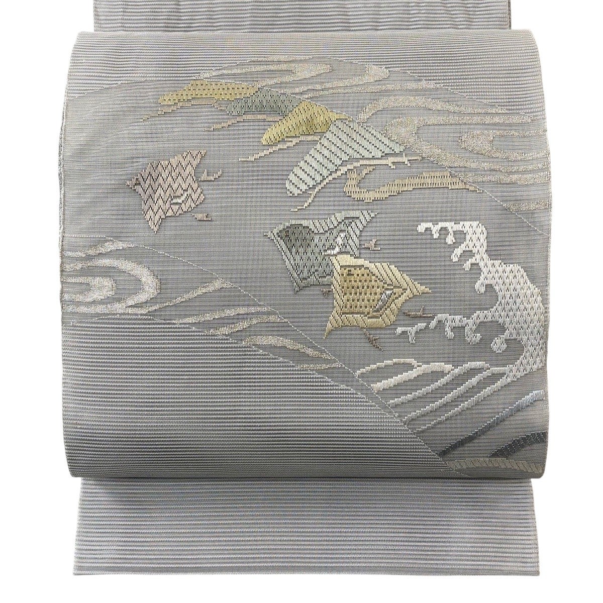 50%OFF 袋帯 秀品 慶賀霞取文 青灰色 六通 正絹 K50