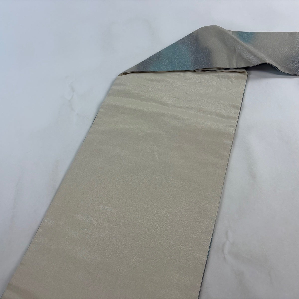 50%OFF 【美品】 袋帯 名品 霞 銀糸 青灰色 六通 正絹 K50