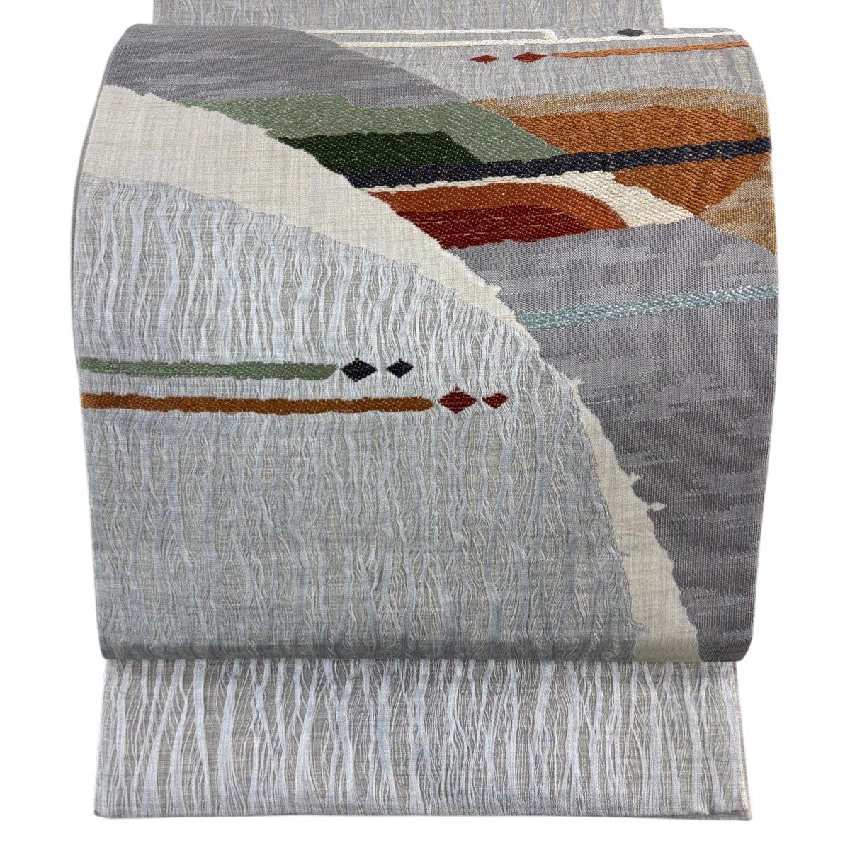 30%OFF 名古屋帯 秀品 夏帯 八寸名古屋帯 幾何学 青灰色 正絹 K30