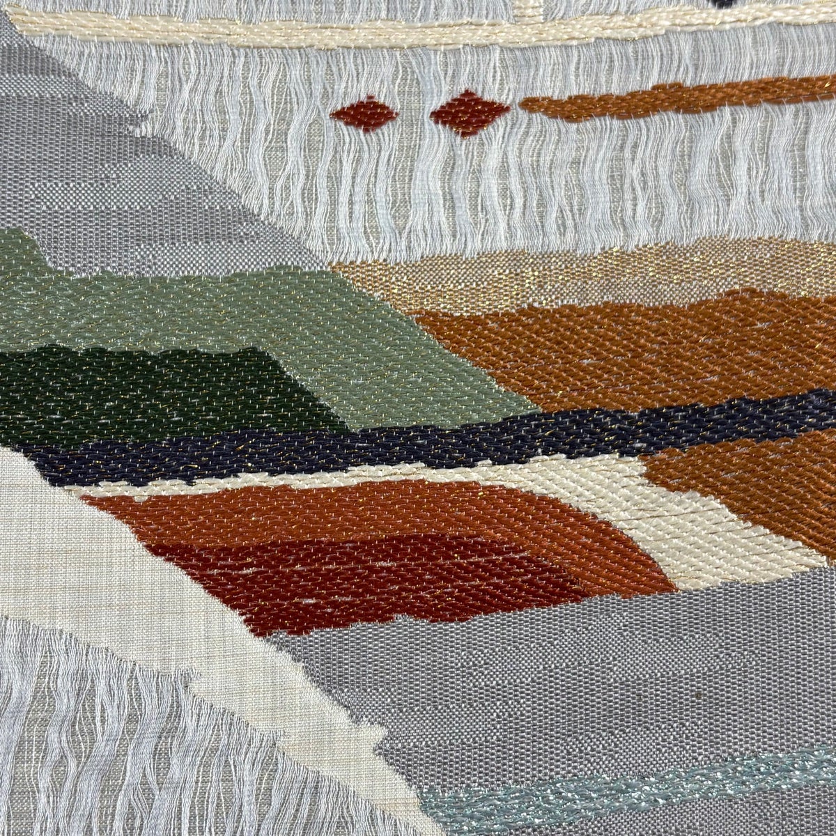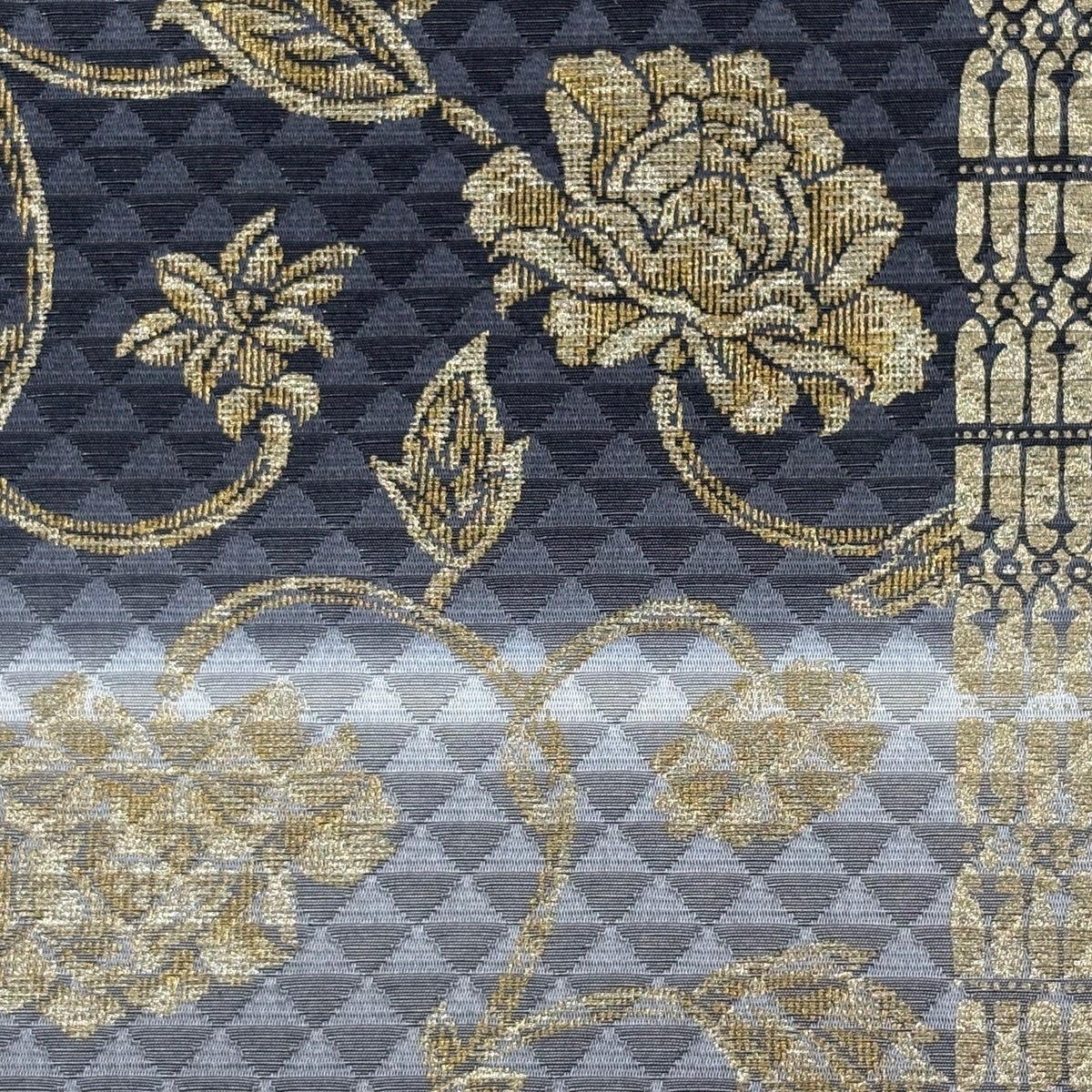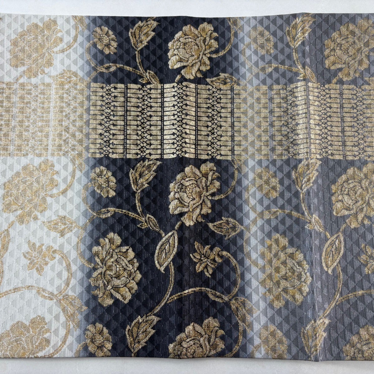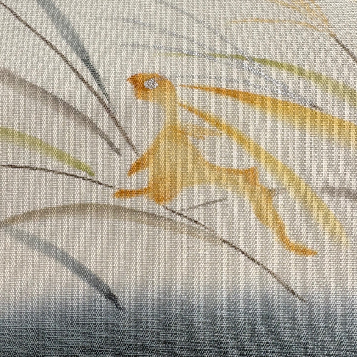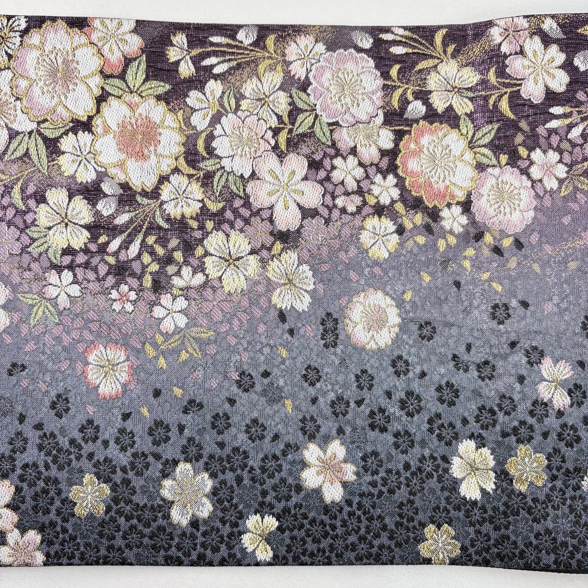 30%OFF 袋帯 秀品 草花 格子 金銀糸 青灰色 六通 正絹 K30