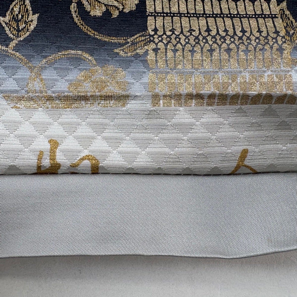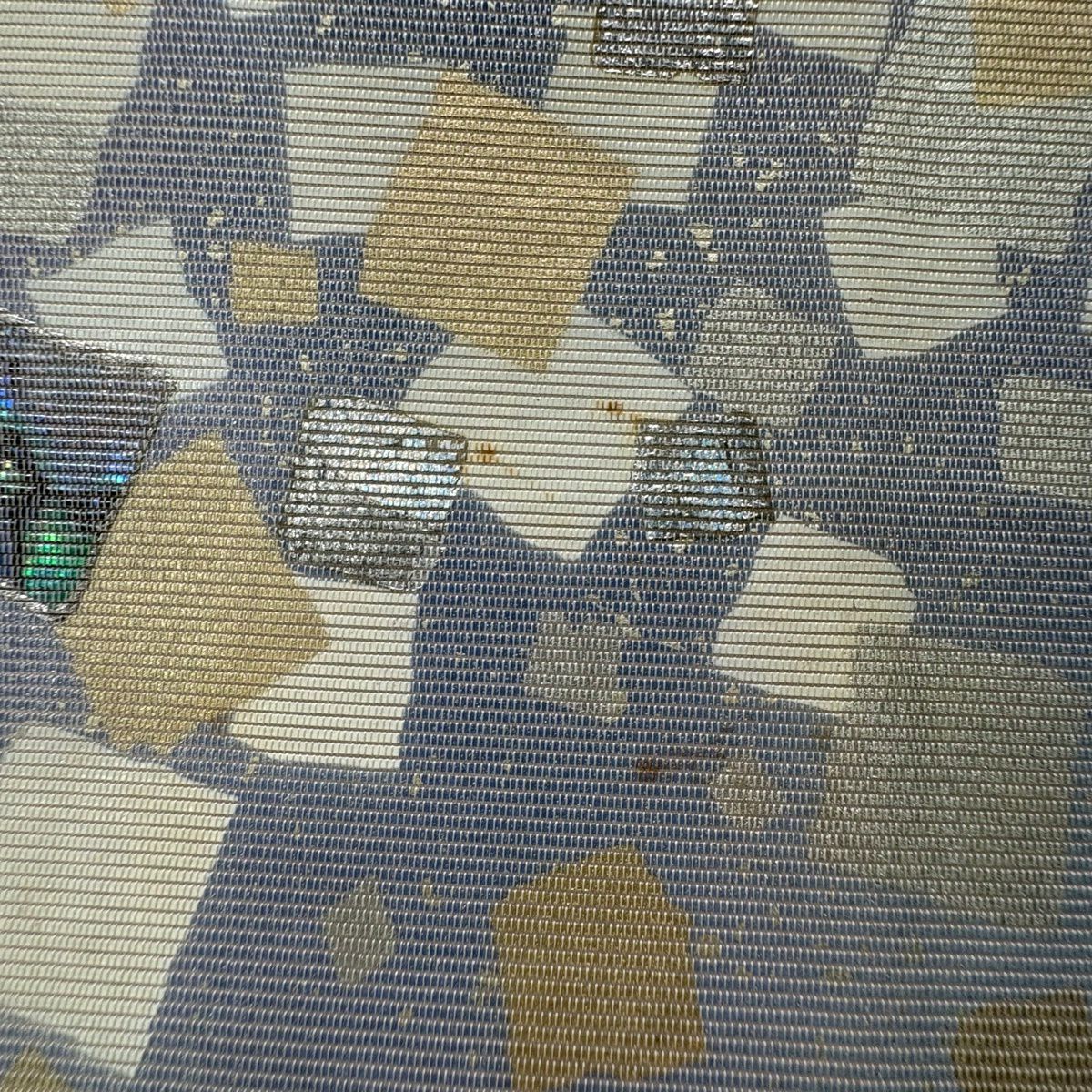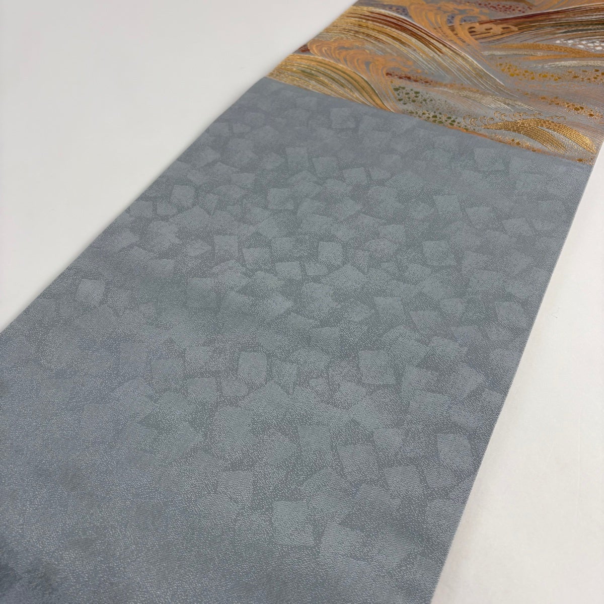 50%OFF 袋名古屋帯 秀品 夏帯 幾何学 箔 青灰色 正絹 K50