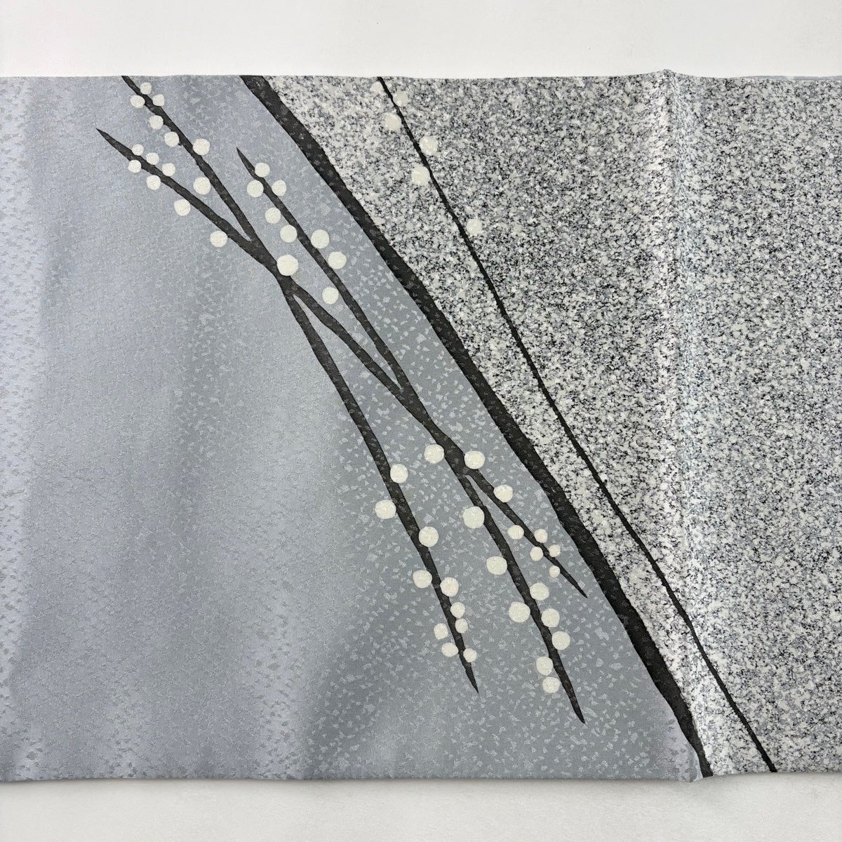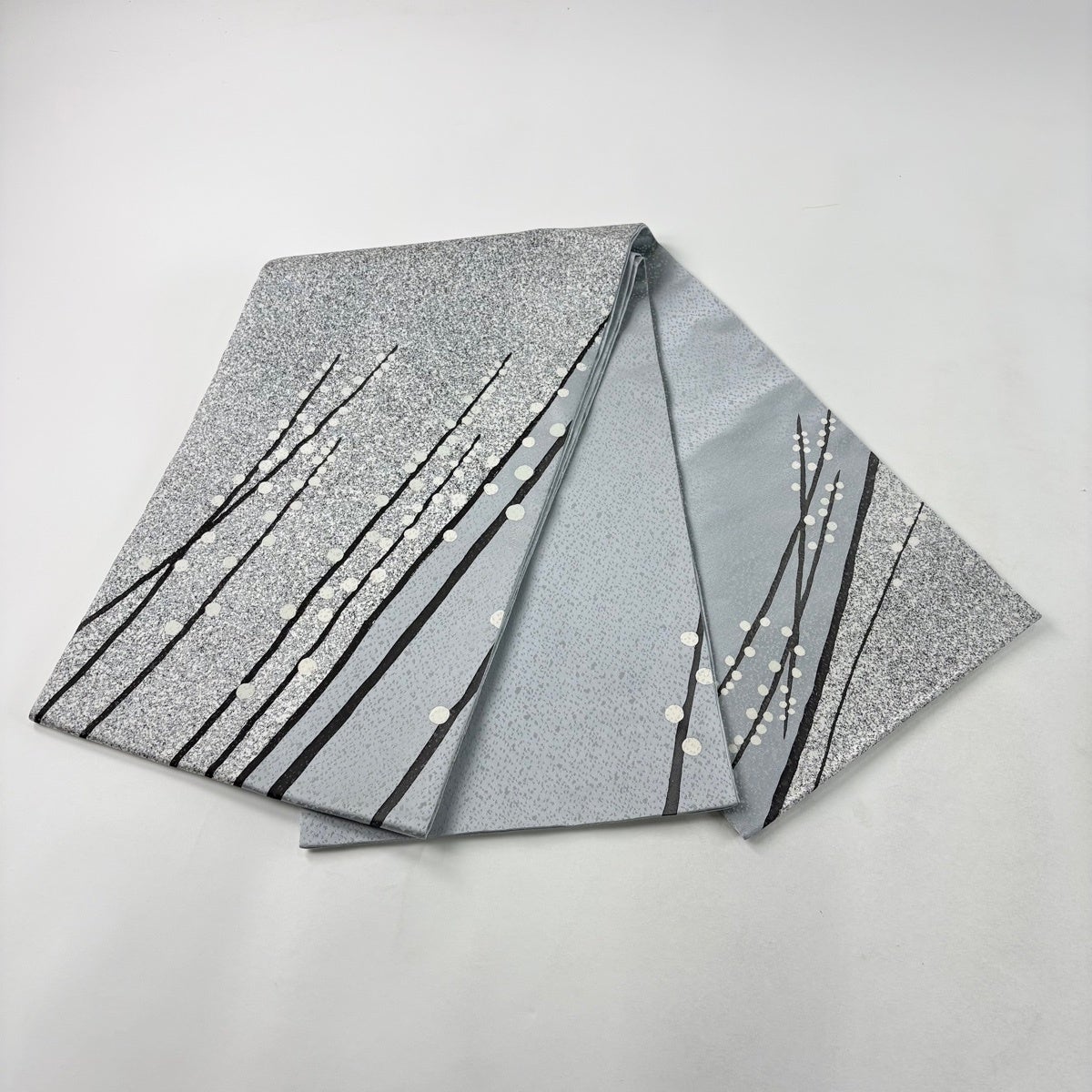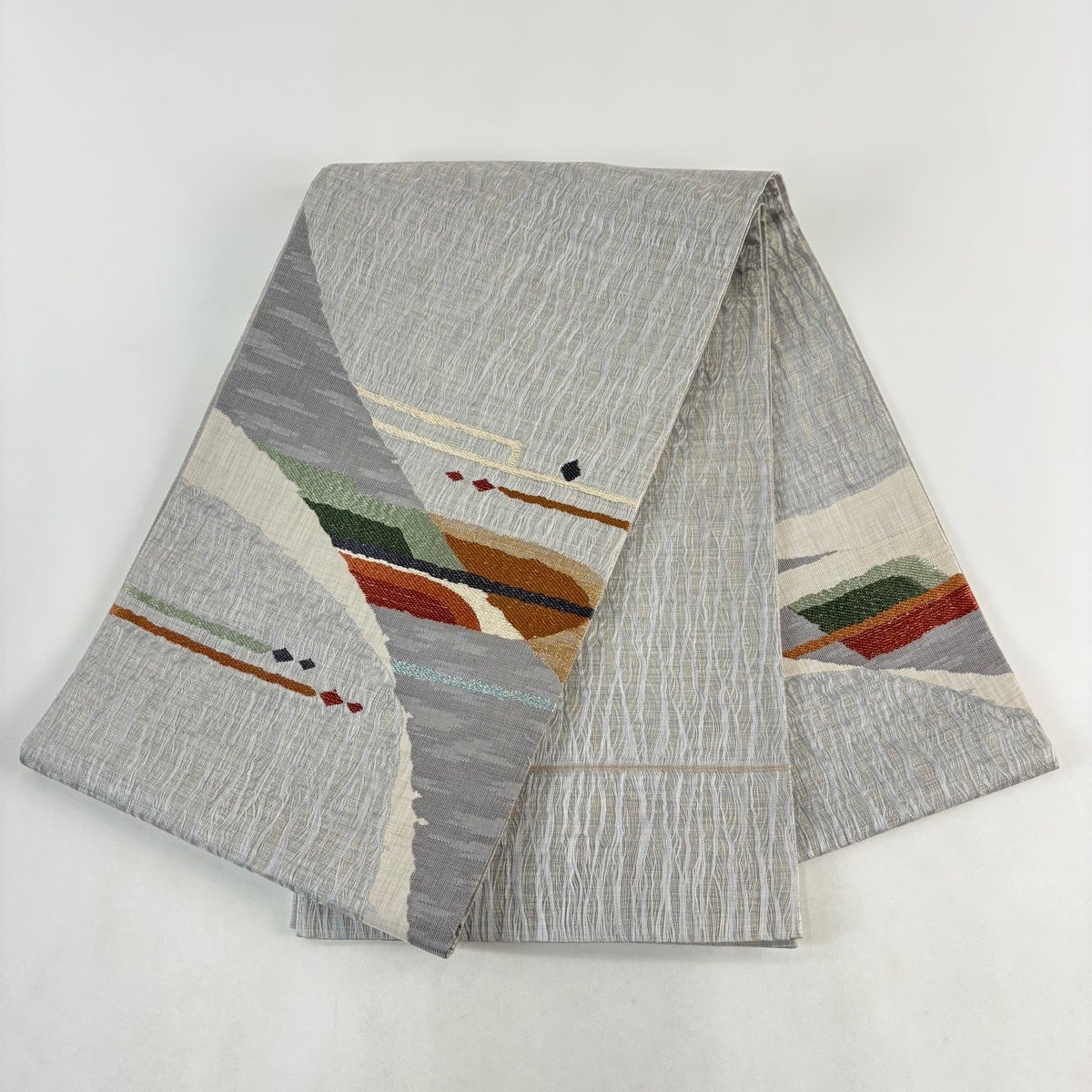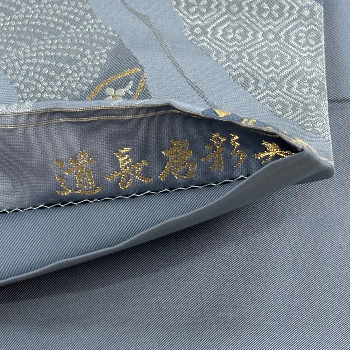 50%OFF 袋名古屋帯 秀品 夏帯 幾何学 箔 青灰色 正絹 K50