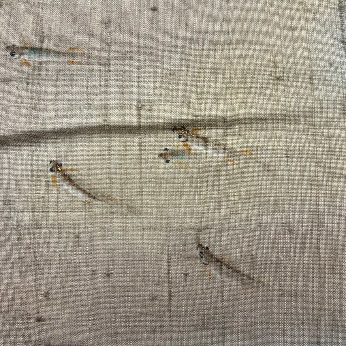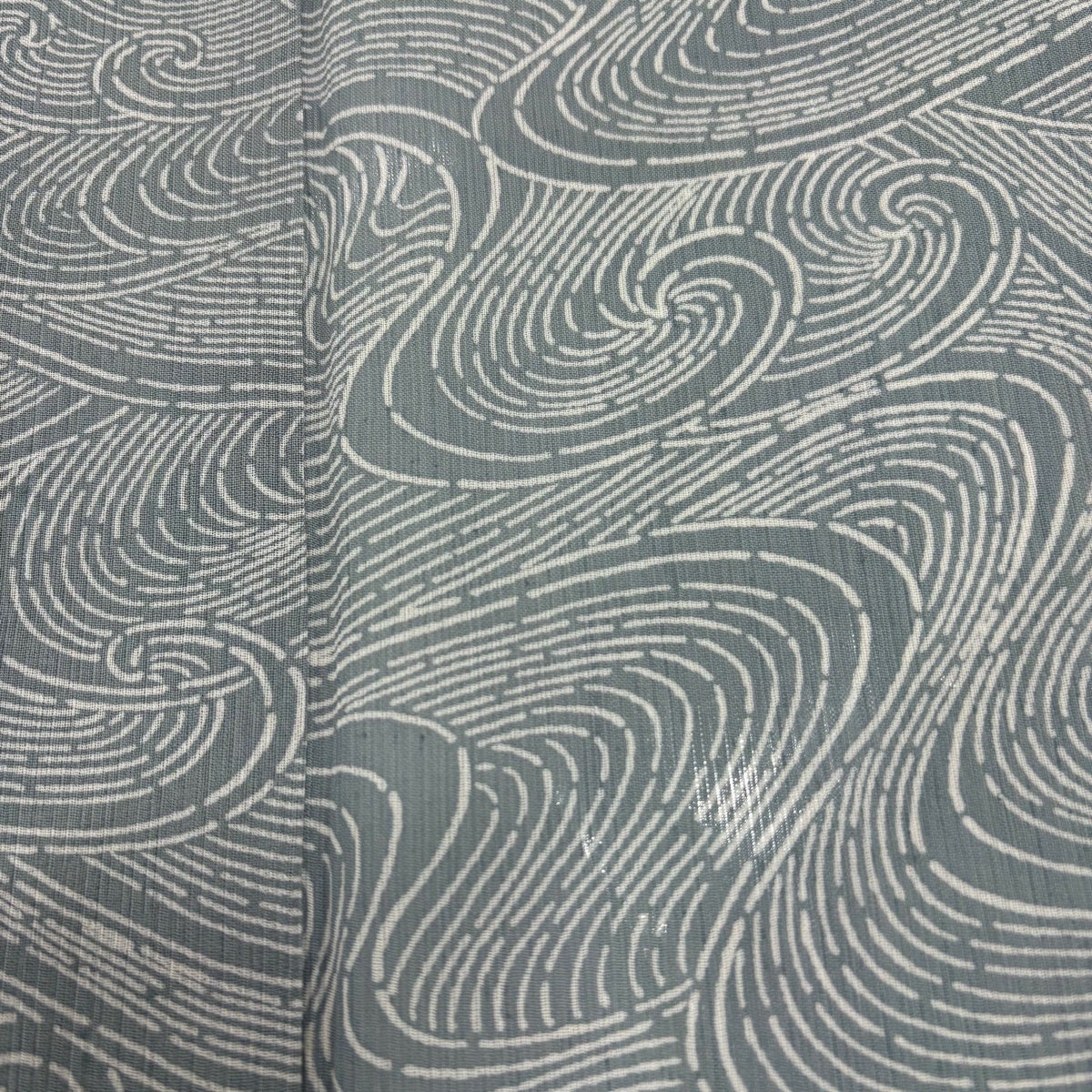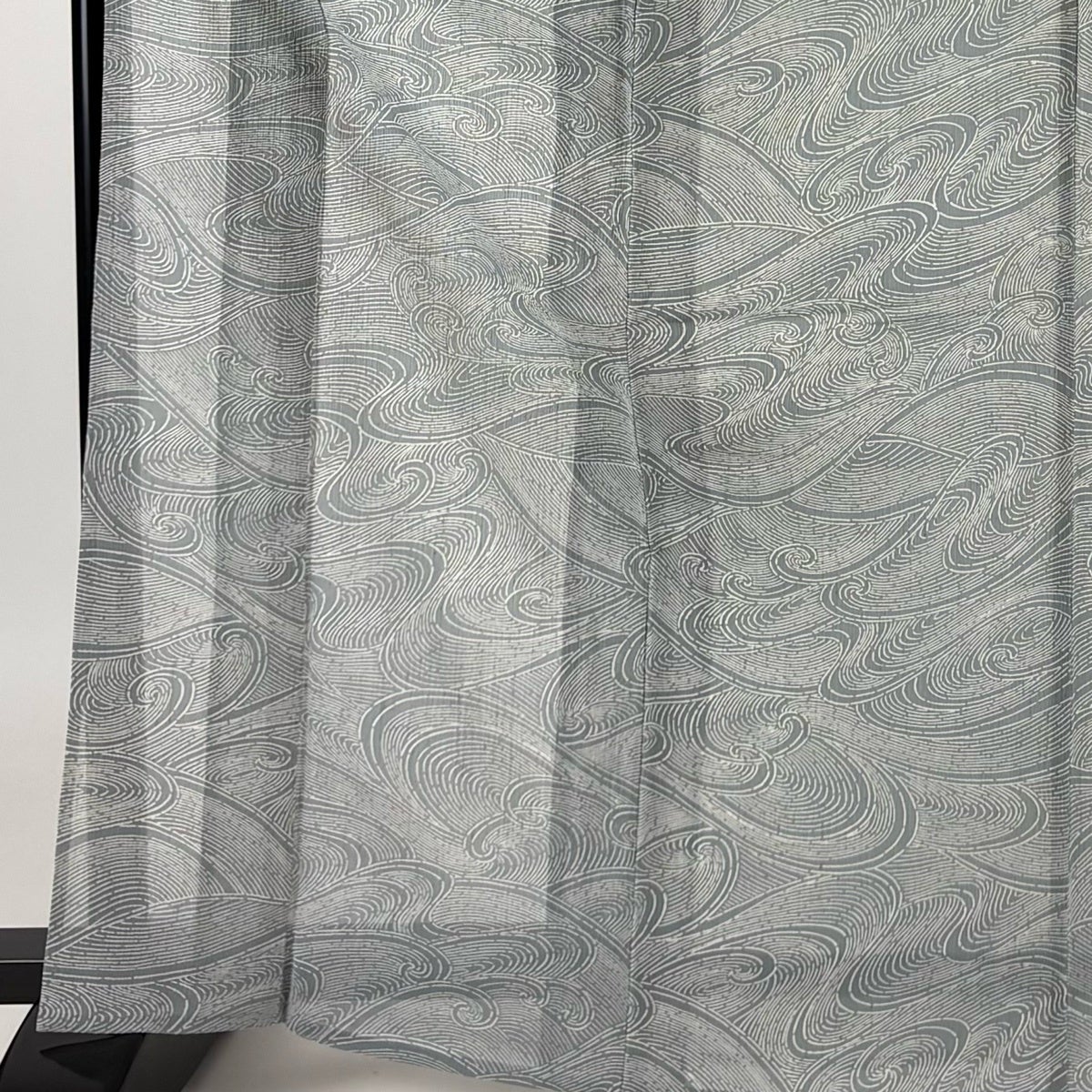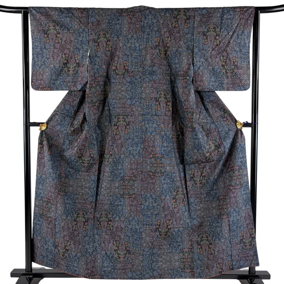 30%OFF 反物 秀品 小紋 風景 人物 縮緬 青灰色 正絹 K30