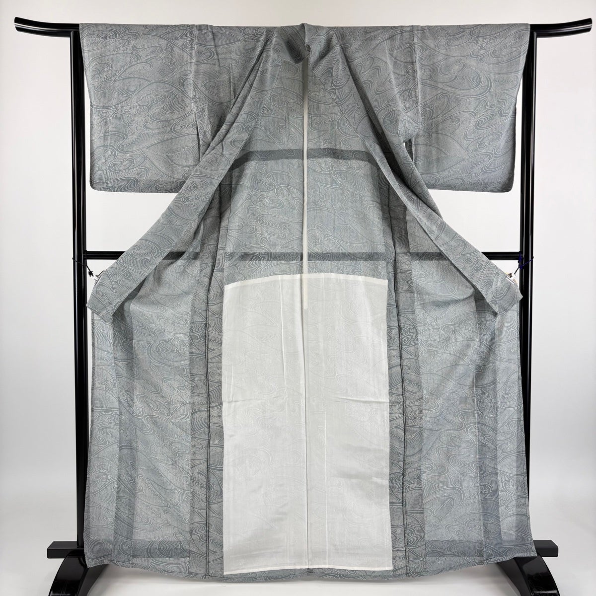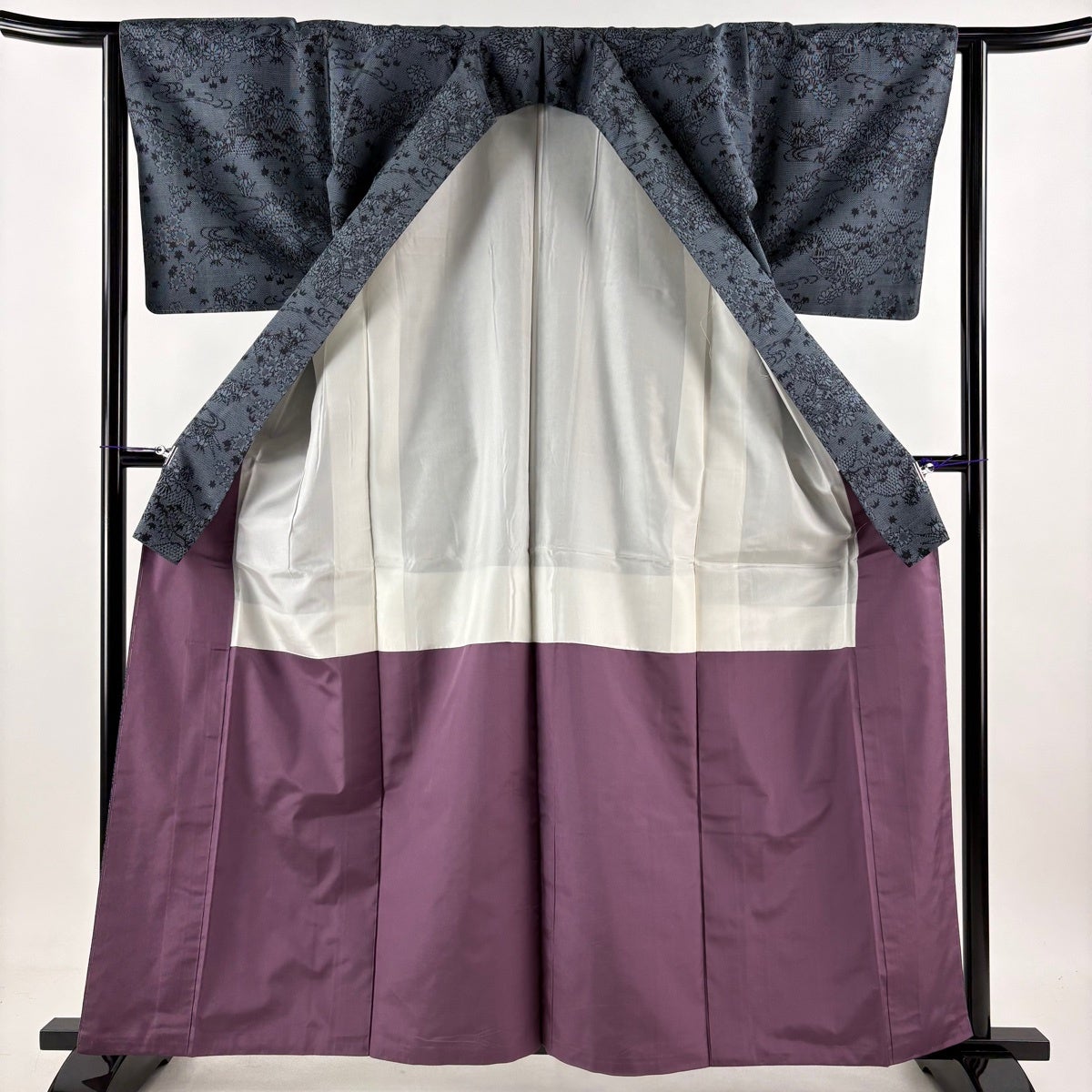 付下げ 身丈167.5cm 裄丈64cm M 袷 露芝 青灰色 正絹 優品