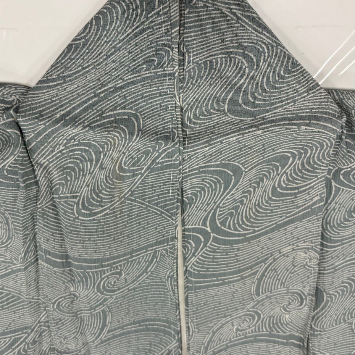 50%OFF 反物 秀品 小紋 家屋 松竹梅 縮緬 青灰色 正絹 K50