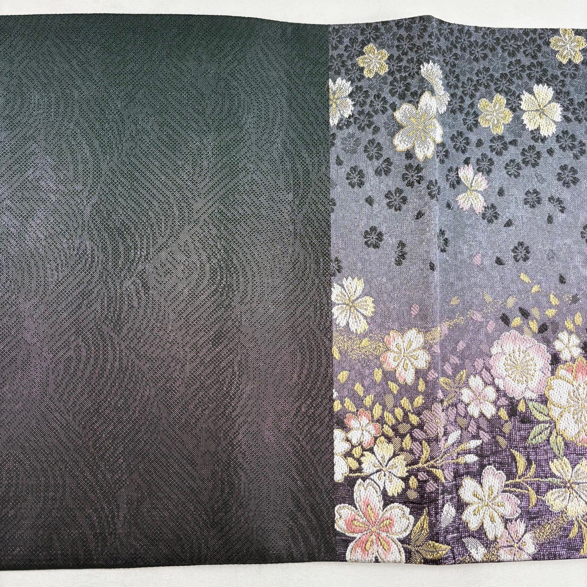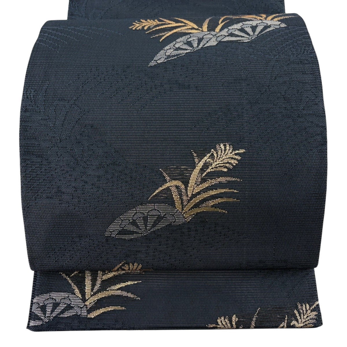 20%OFF 袋帯 逸品 草花 雪輪 箔 青灰色 お太鼓柄 正絹 K30