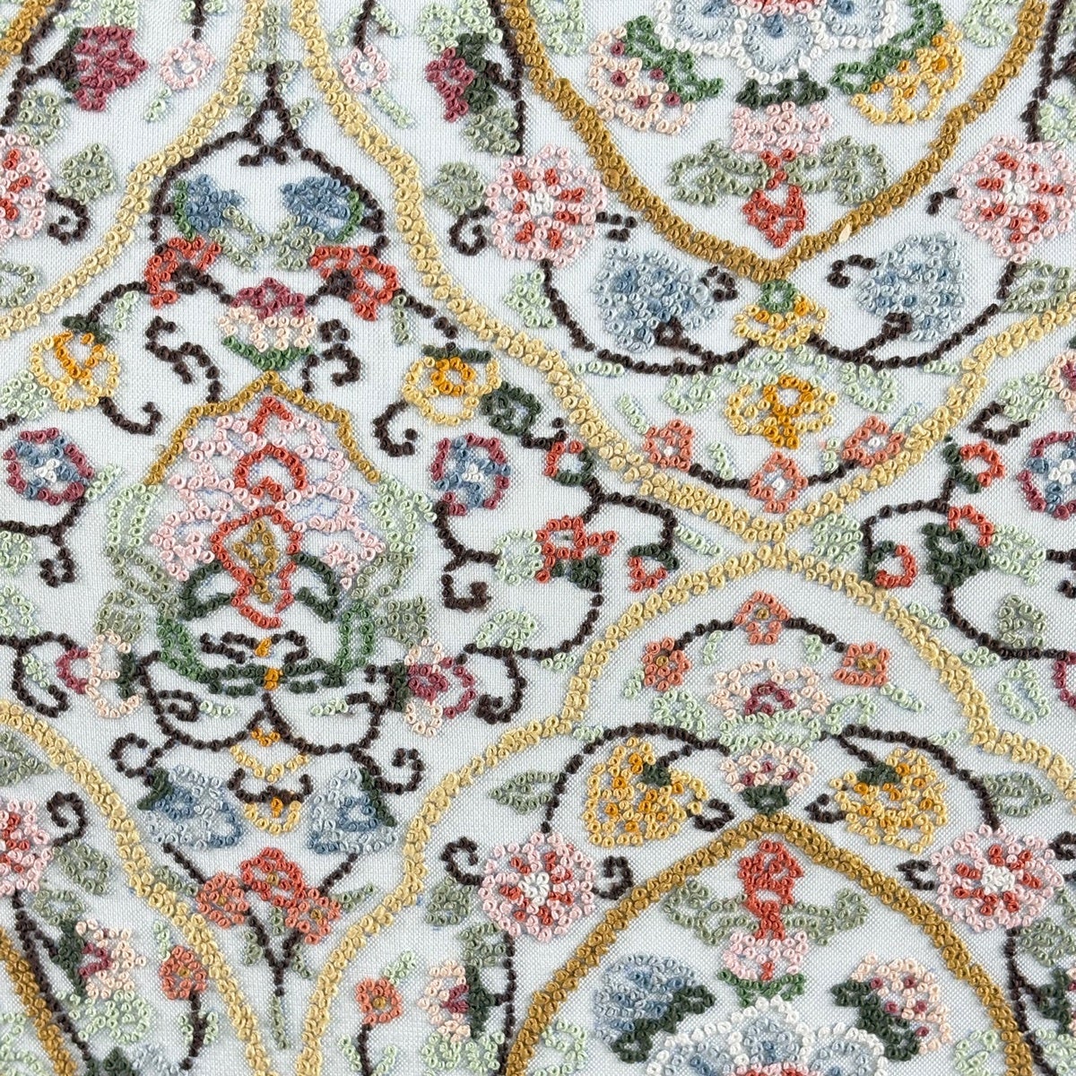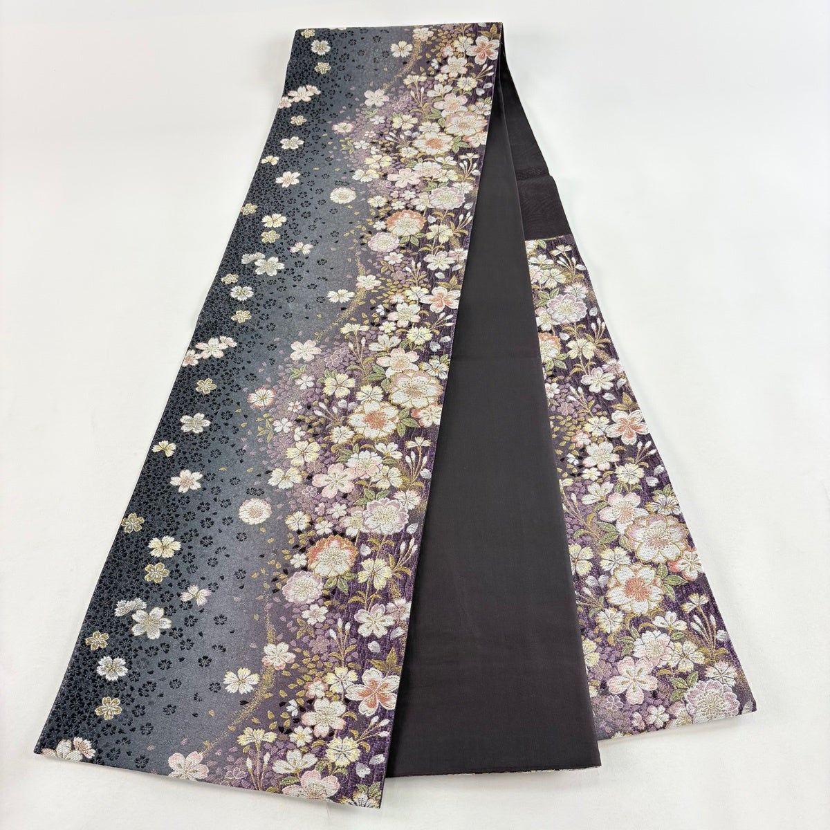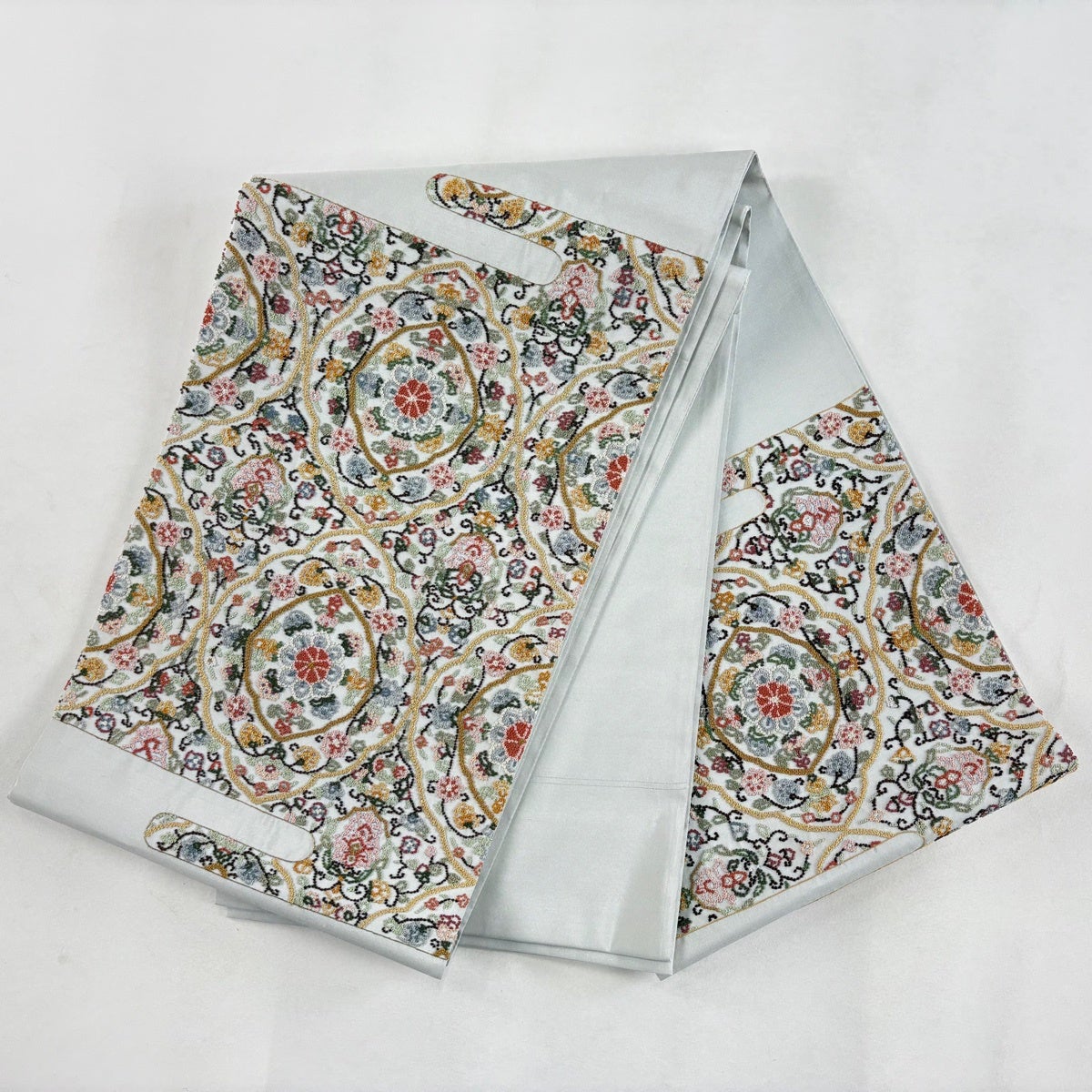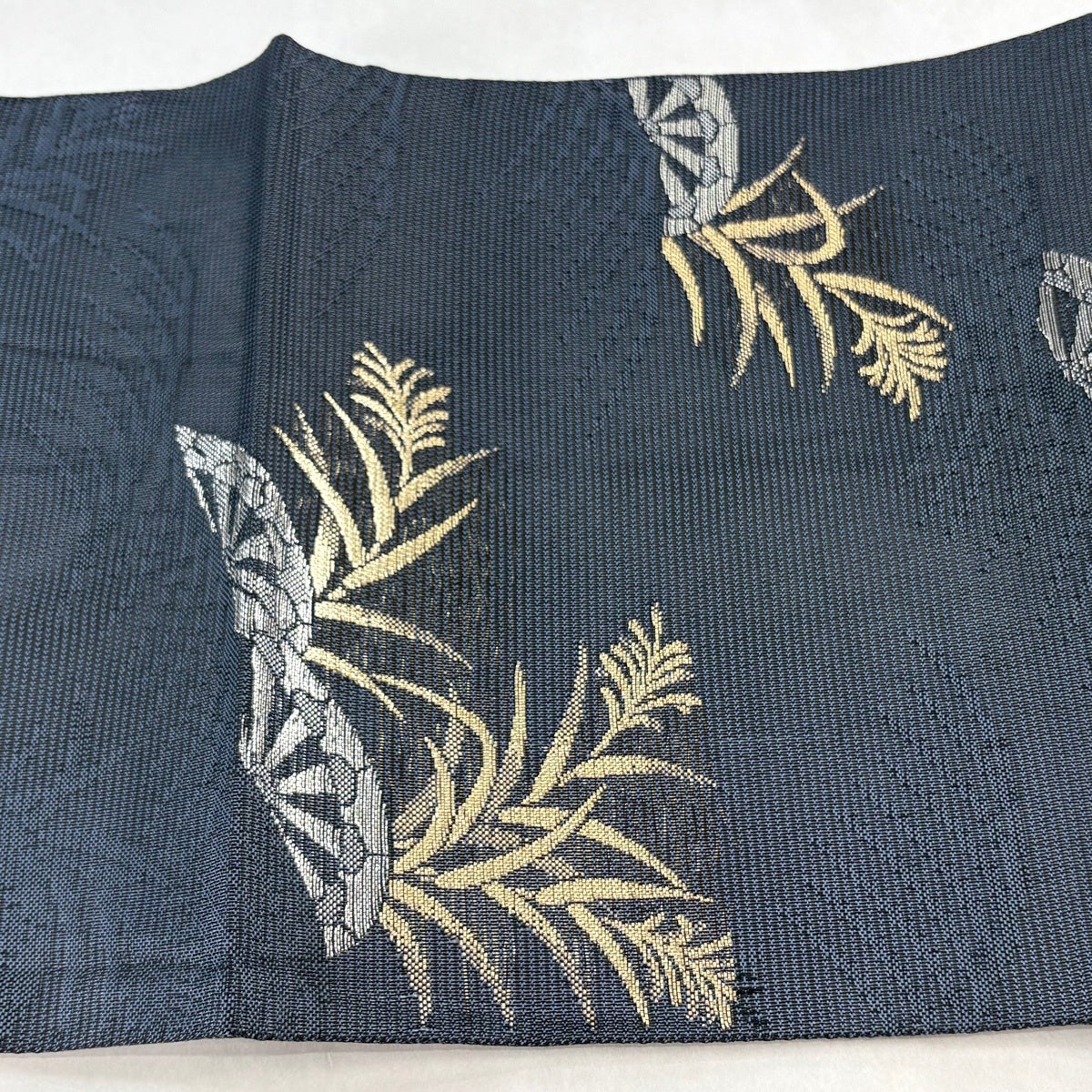 30%OFF 名古屋帯 秀品 饅頭菊 蔦 刺繍 箔 青灰色 正絹 K30
