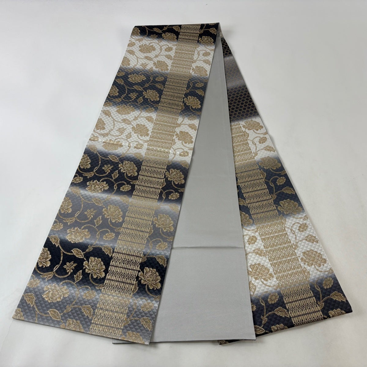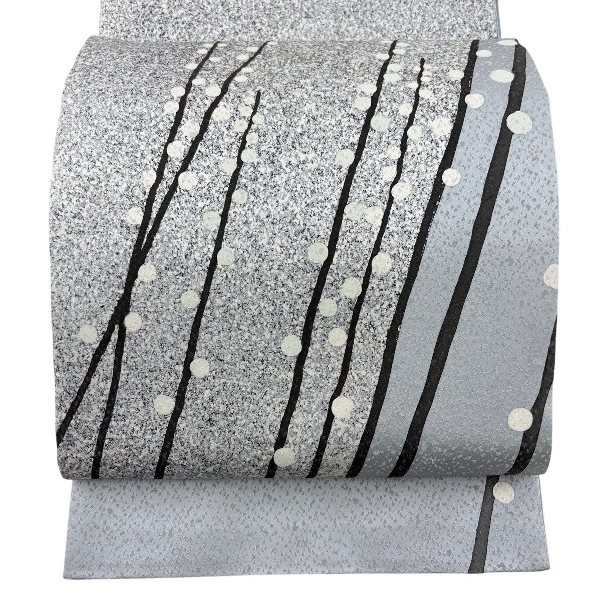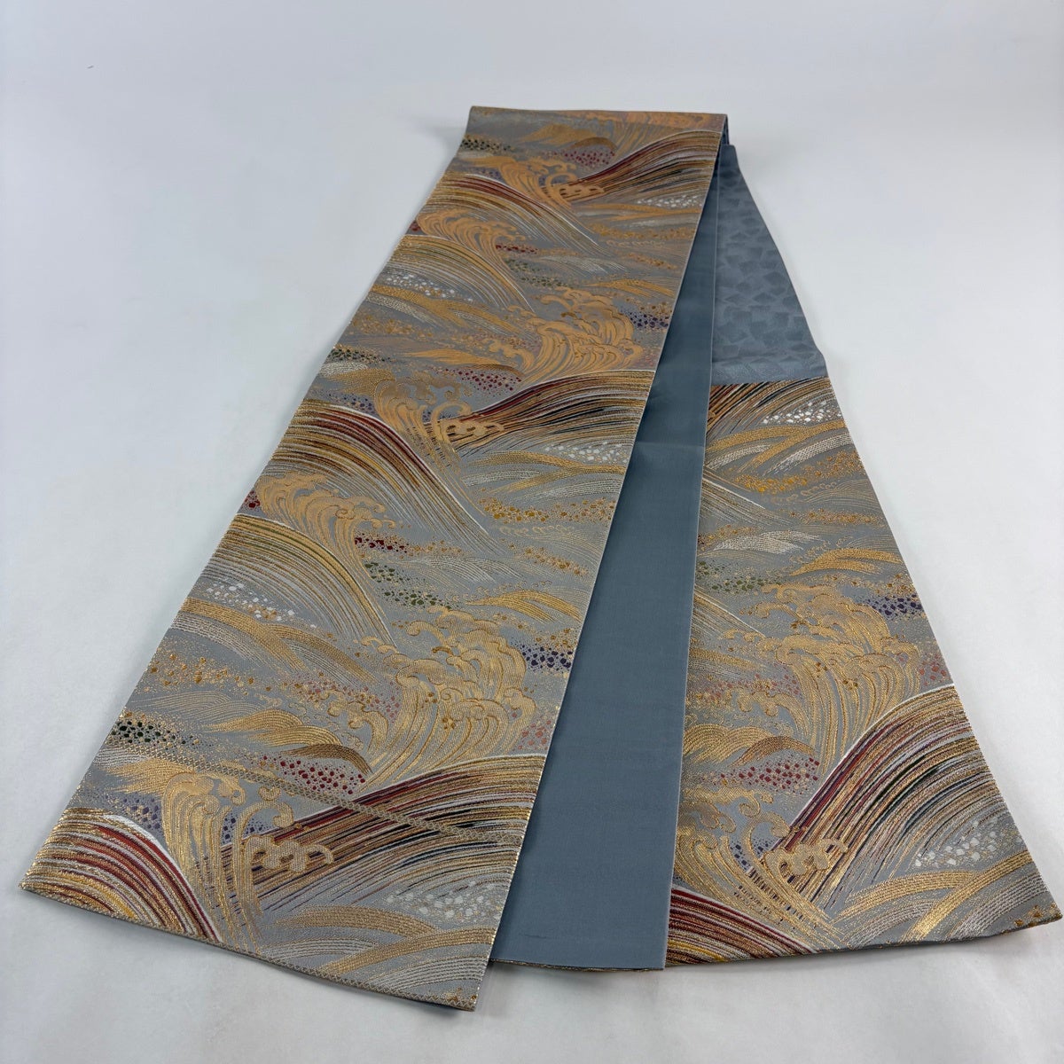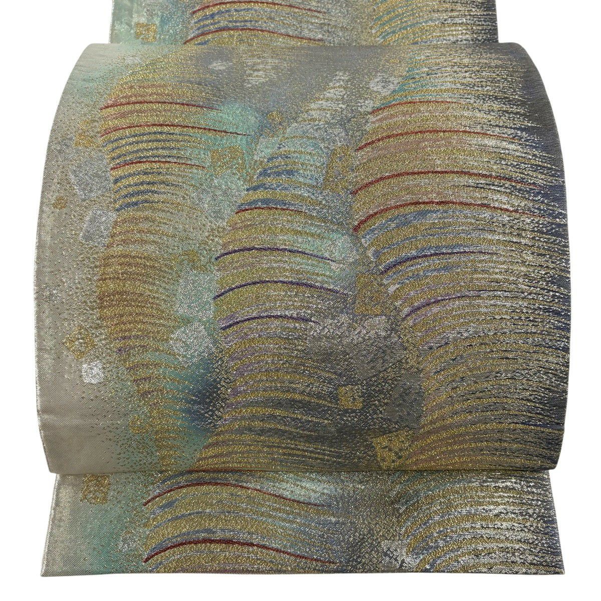 30%OFF 【美品】 袋帯 名品 段縞 箔 青灰色 全通 正絹 K30