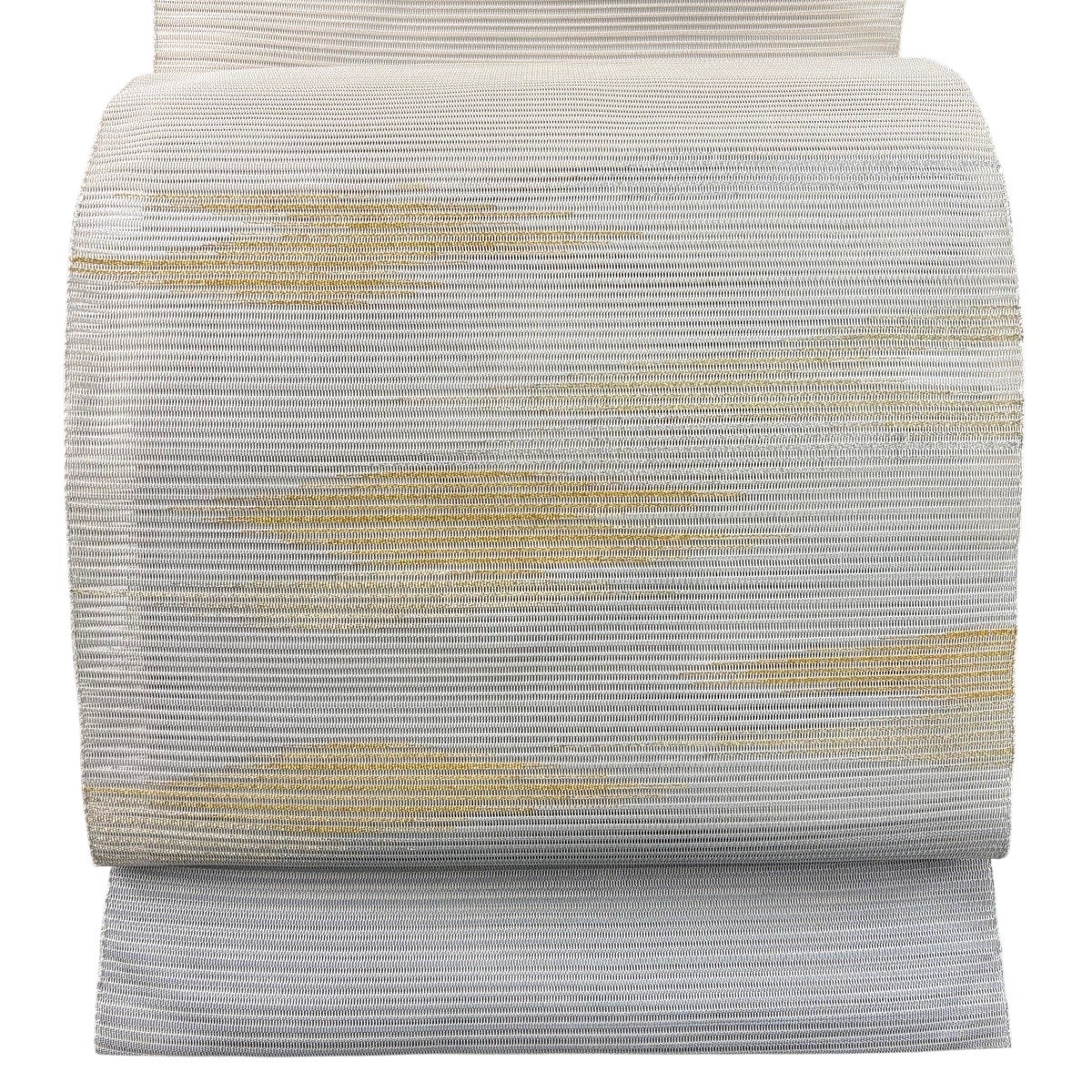 【美品】 名古屋帯 秀品 夏帯 八寸名古屋帯 幾何学 段縞 金糸 青灰色 正絹