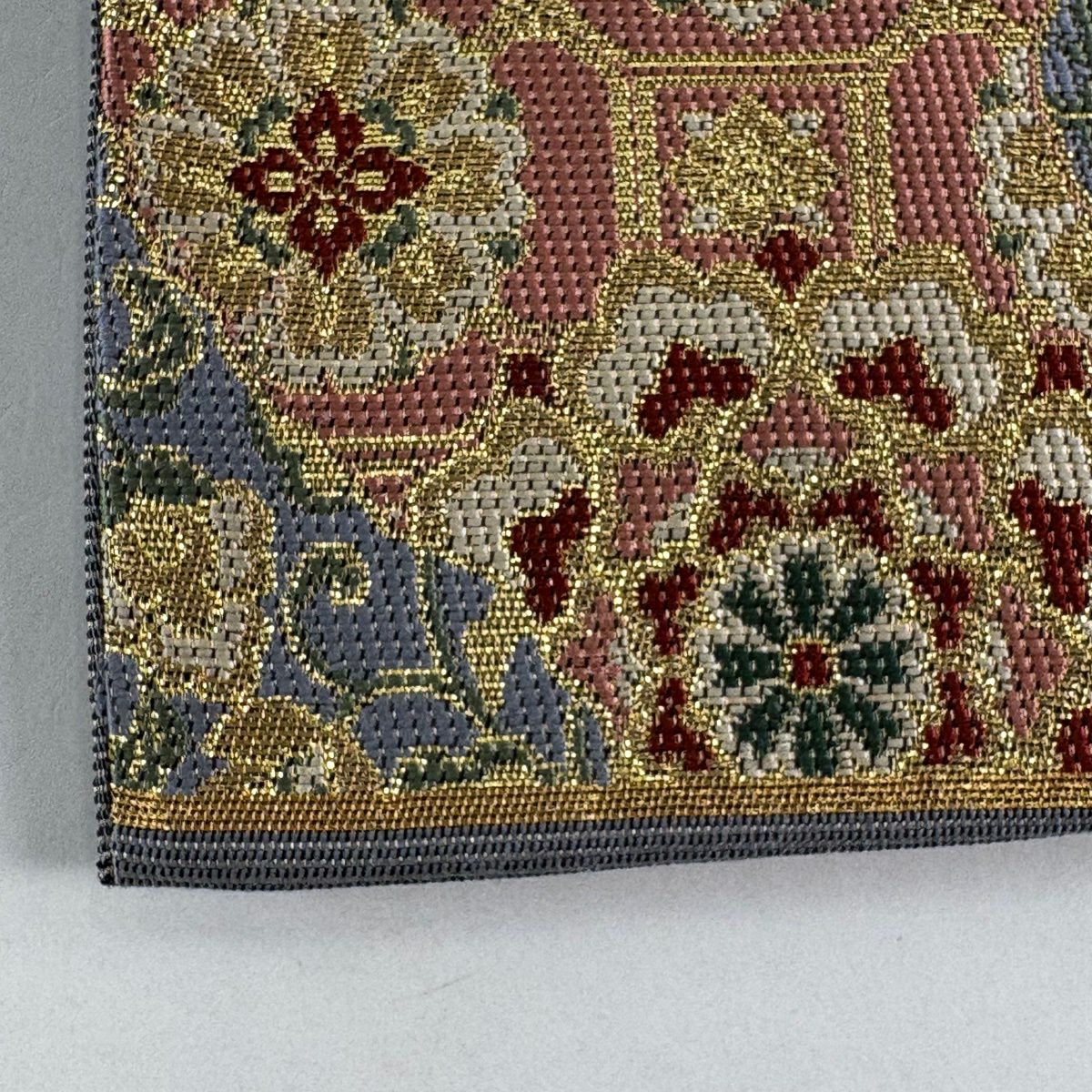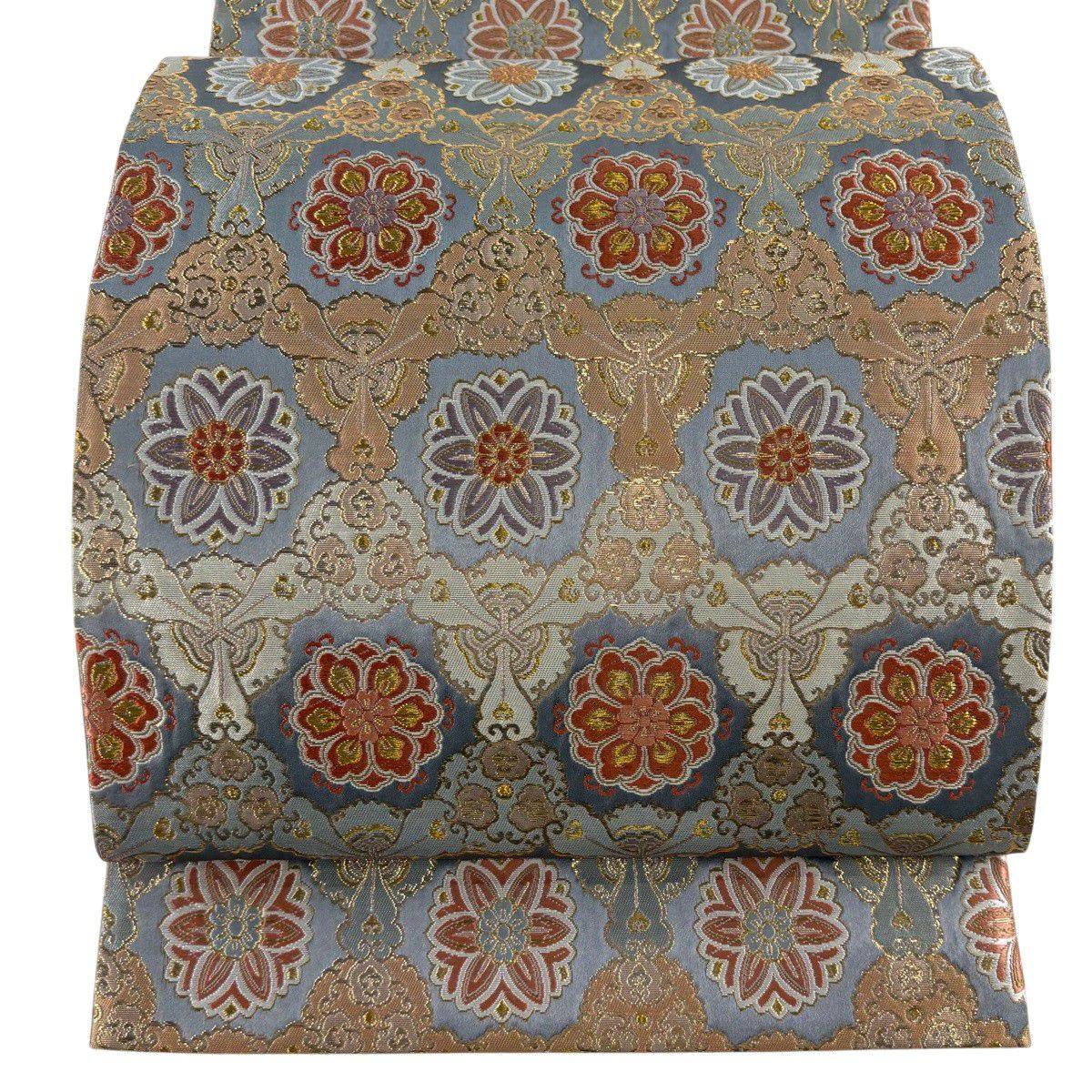 50%OFF 袋帯 名品 花唐草 唐織 箔 青灰色 六通 正絹 K50