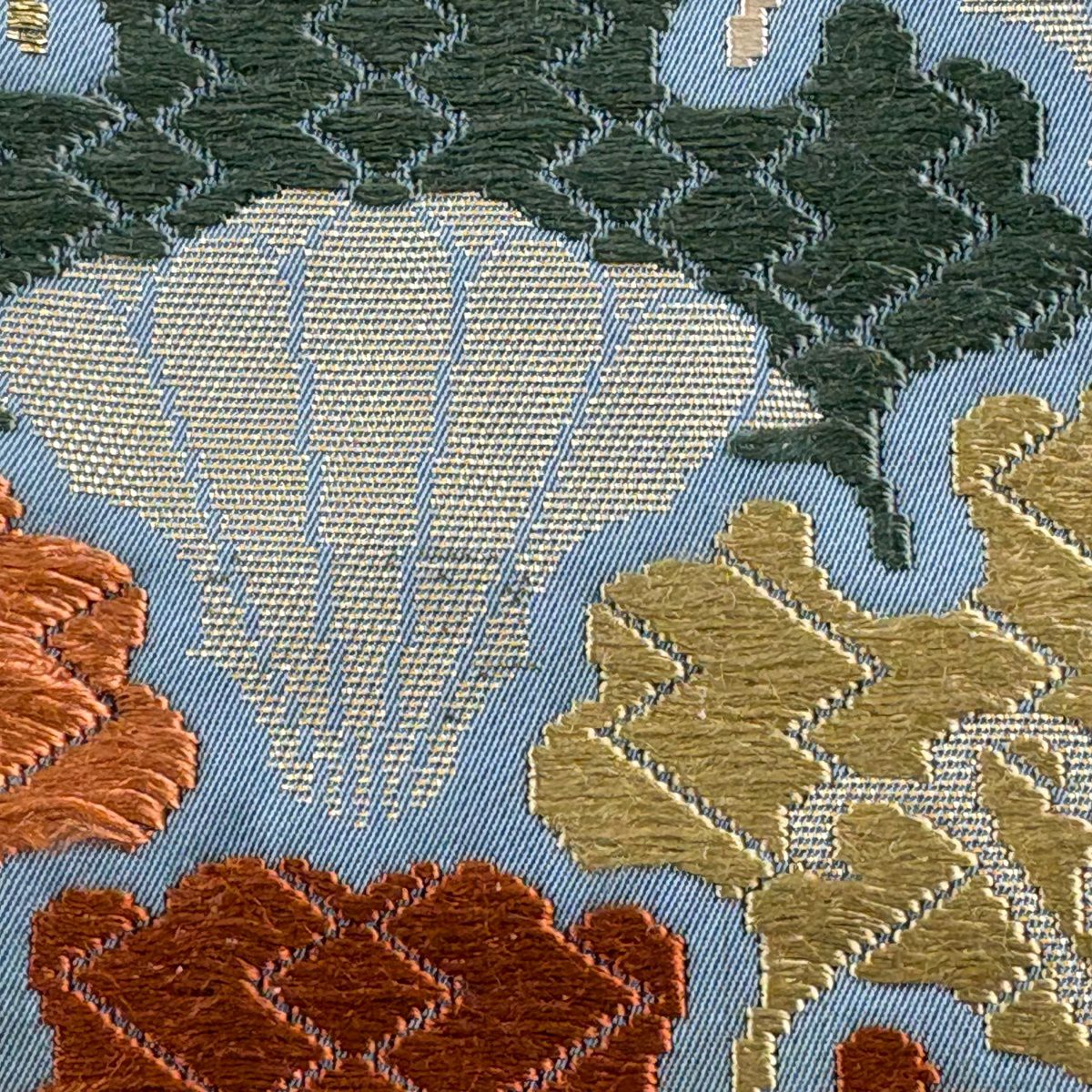 【美品】 袋帯 逸品 華文 草花 相良刺繍 金糸 青灰色 お太鼓柄 正絹