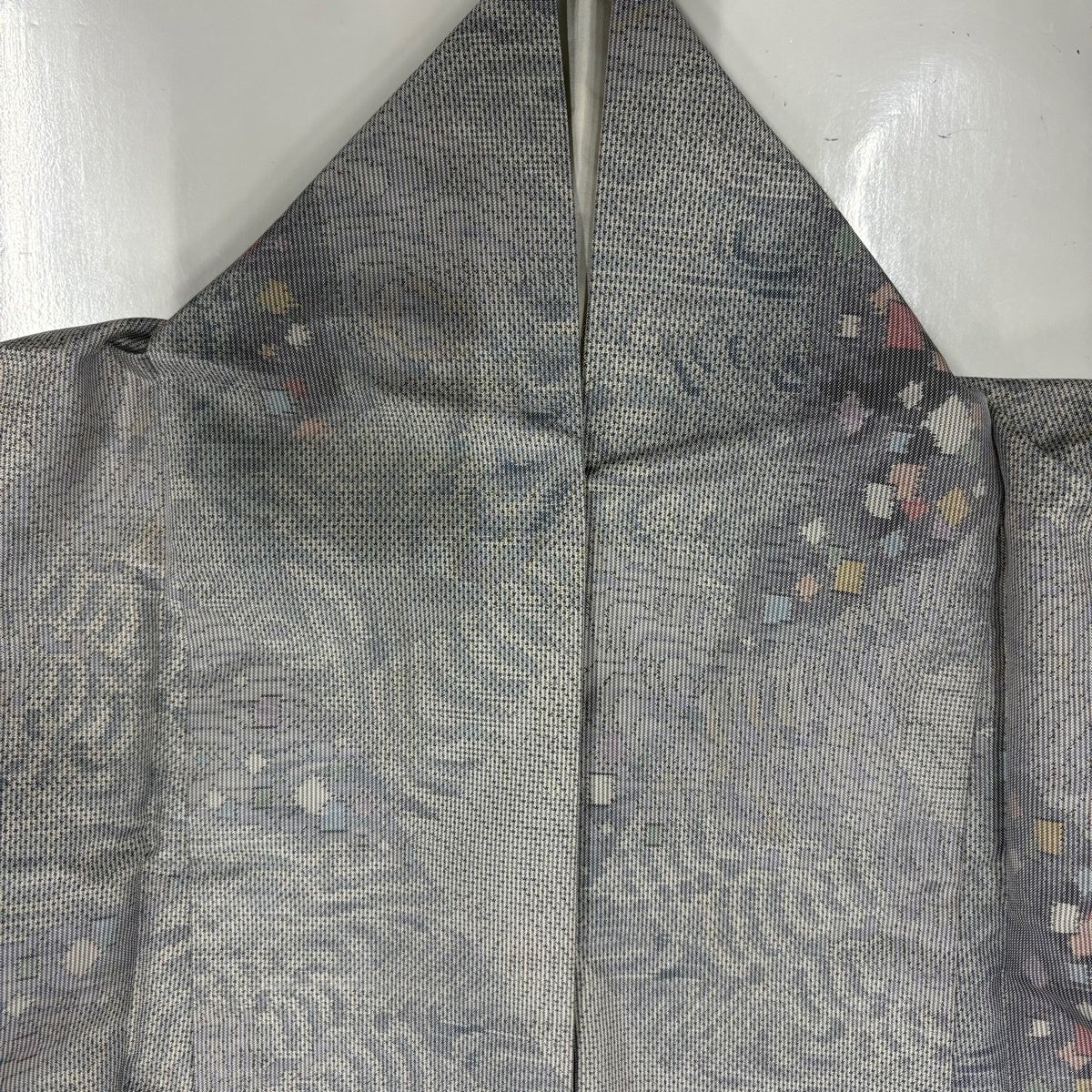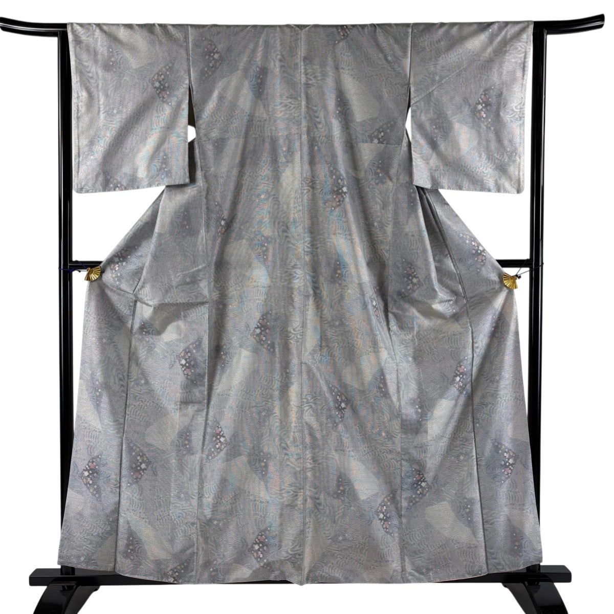 男着物 身丈145cm 裄丈67cm M 袷 亀甲絣 青灰色 正絹 秀品