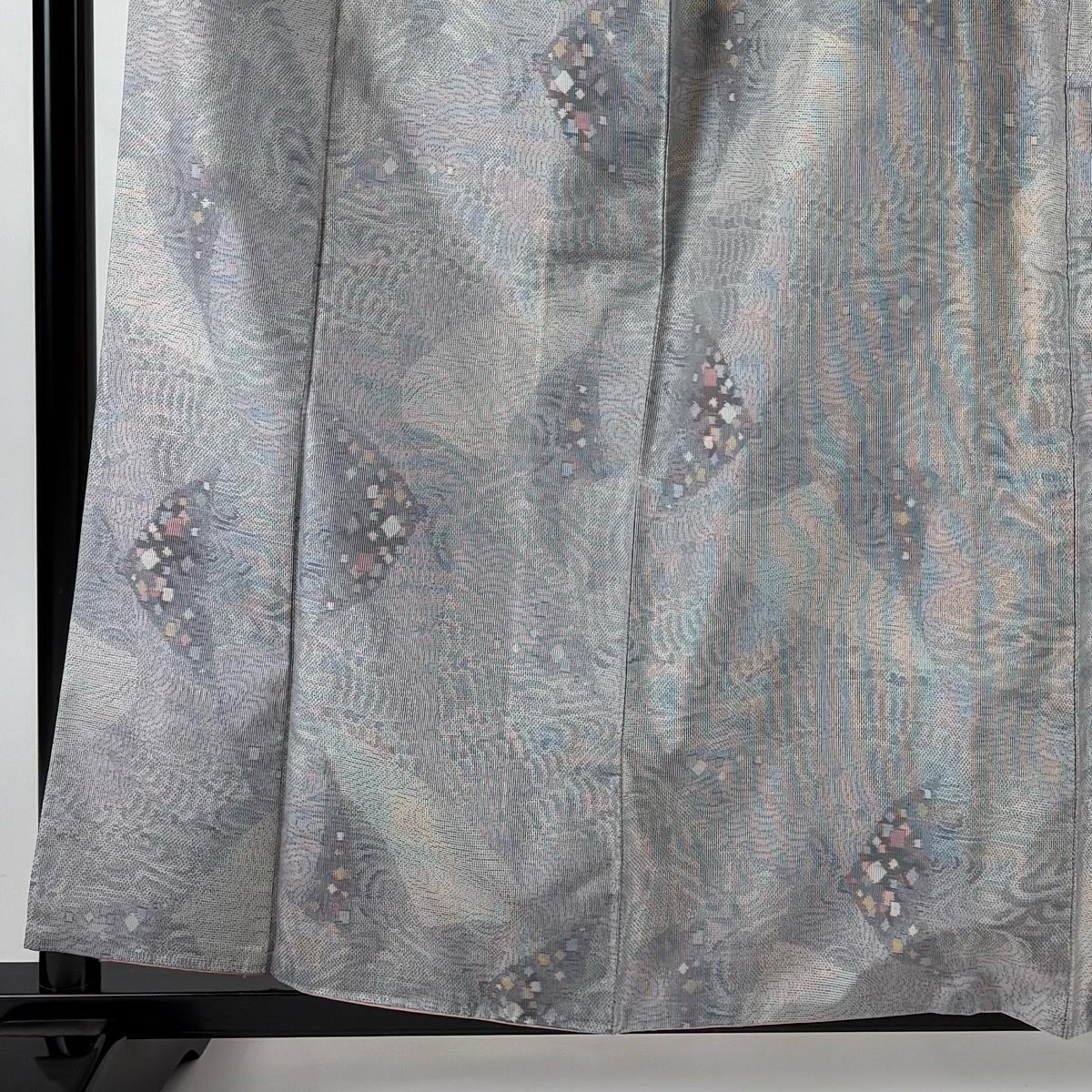 小紋 身丈162cm 裄丈64cm M 袷 墨流し 青灰色 正絹 名品