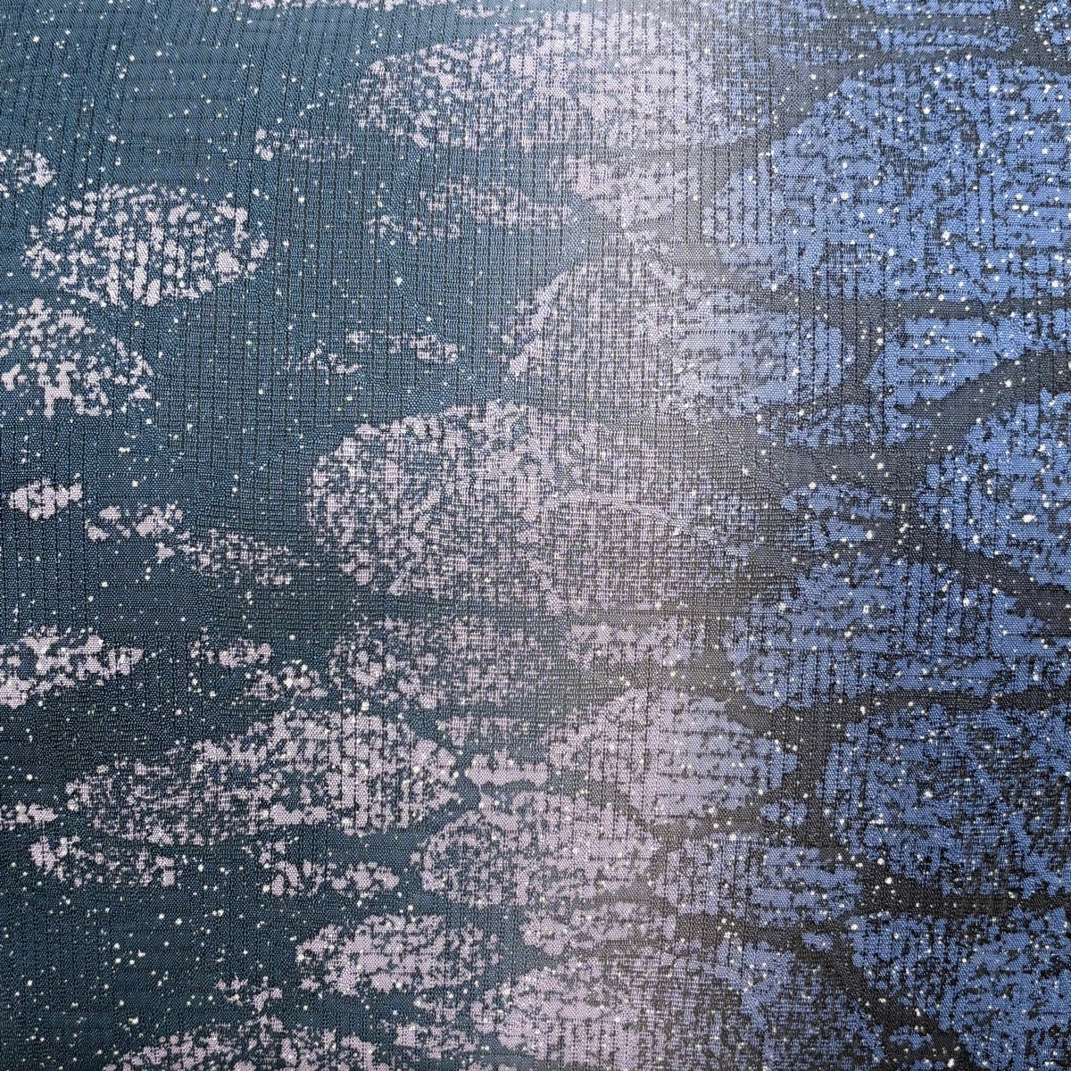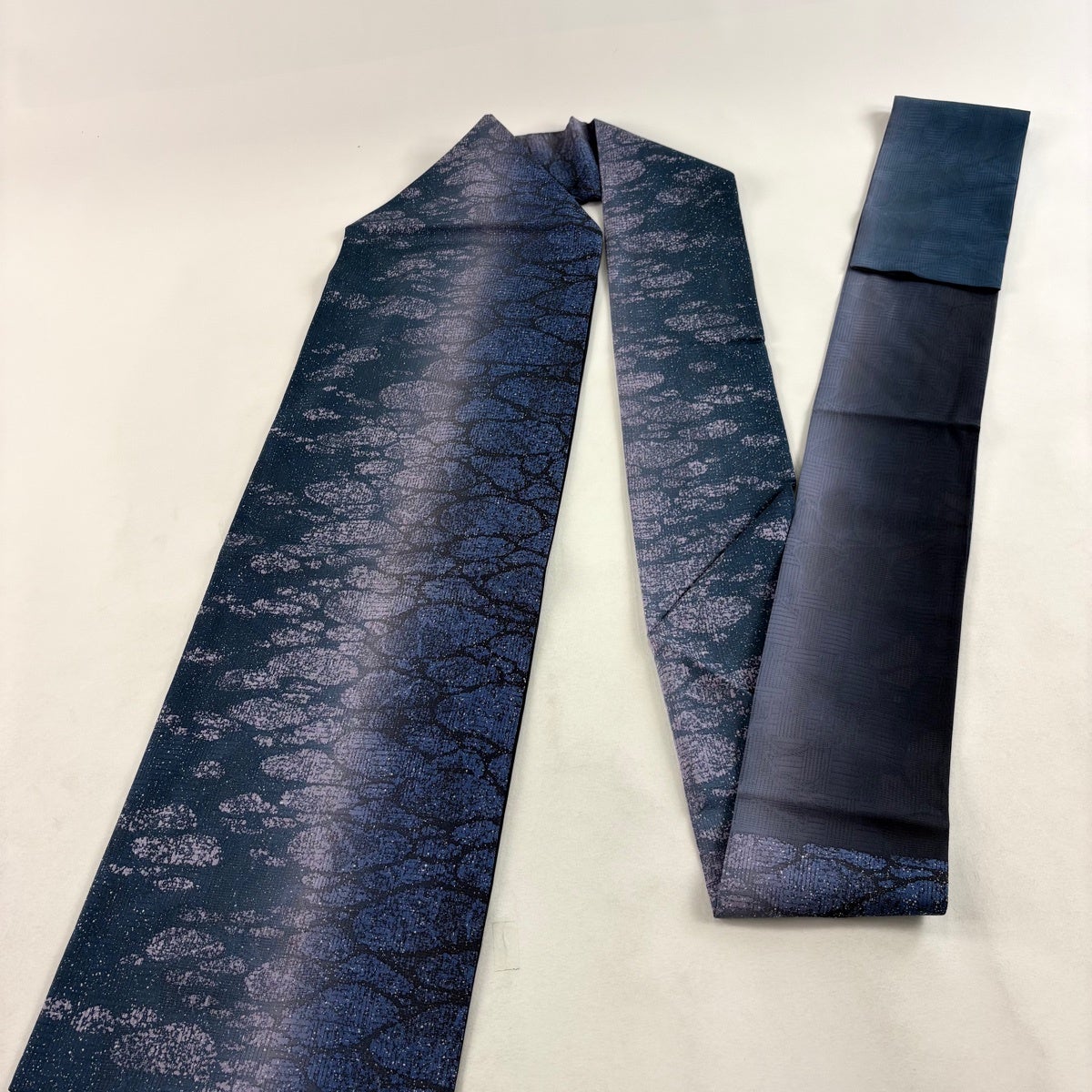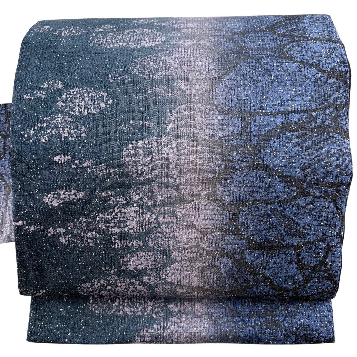 袋帯 名品 紬地 縫締め絞り 幾何学模様 銀彩 絞り 青灰色 六通 正絹