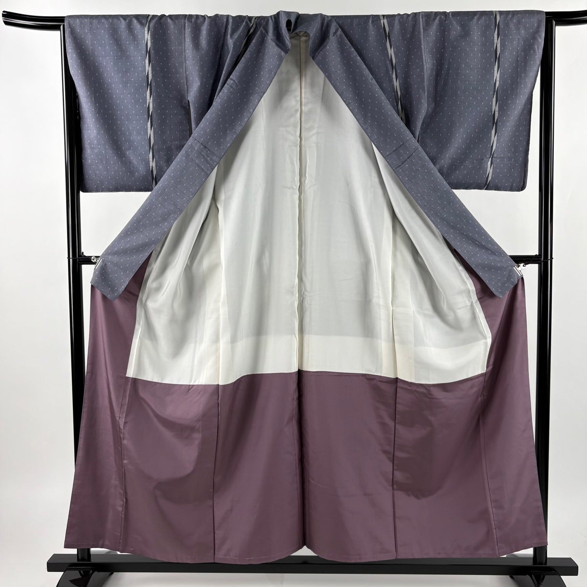 江戸小紋 身丈159cm 裄丈62cm S 袷 万筋 青灰色 正絹 名品 一つ紋