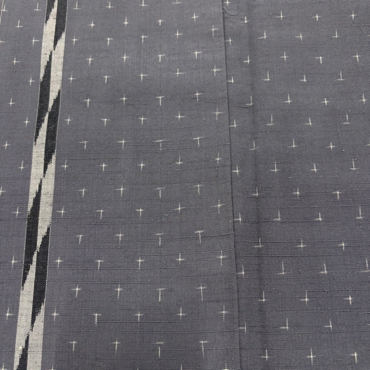 紬 身丈156cm 裄丈65.5cm M 袷 十字絣 幾何学 青灰色 正絹 秀品