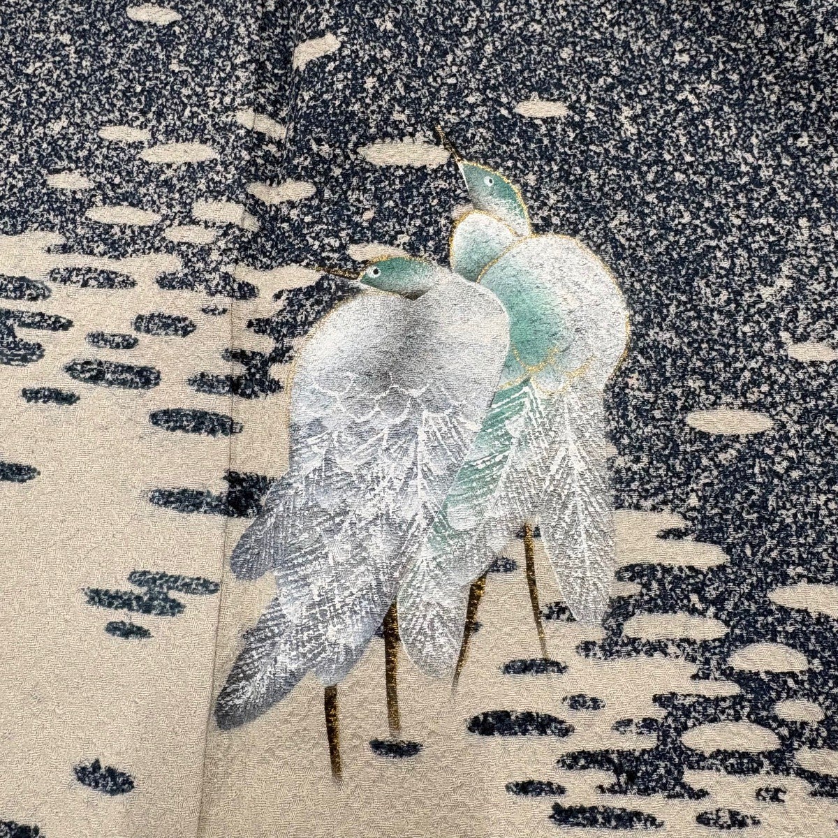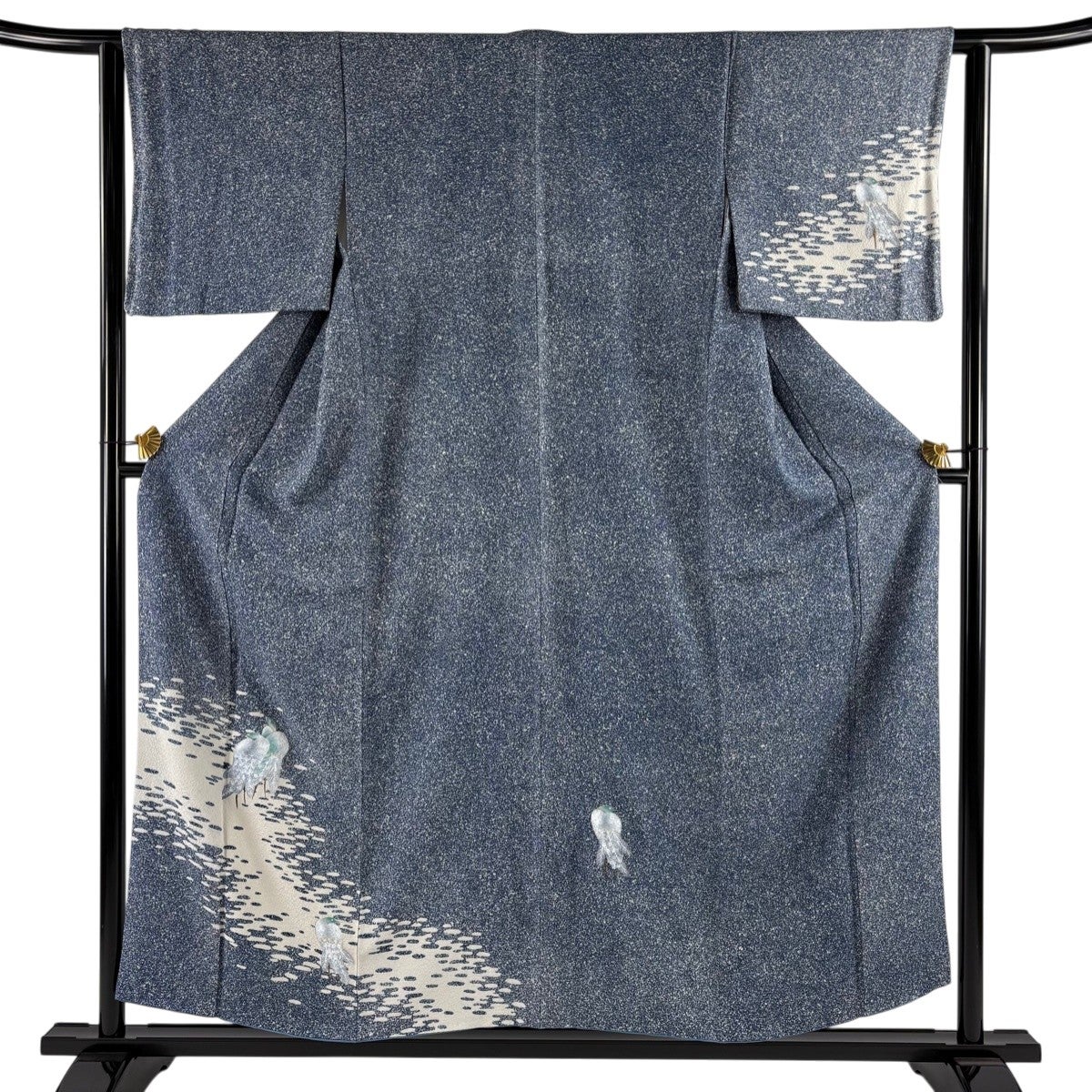 付下げ 身丈152.5cm 裄丈62cm S 紗絽袷 鳥 箔 青灰色 正絹 秀品