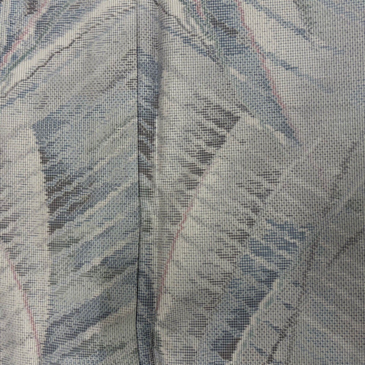 名古屋帯 秀品 夏帯 八寸名古屋帯 絽 トンネル仕立て 草花 すすき 箔 青灰色 正絹
