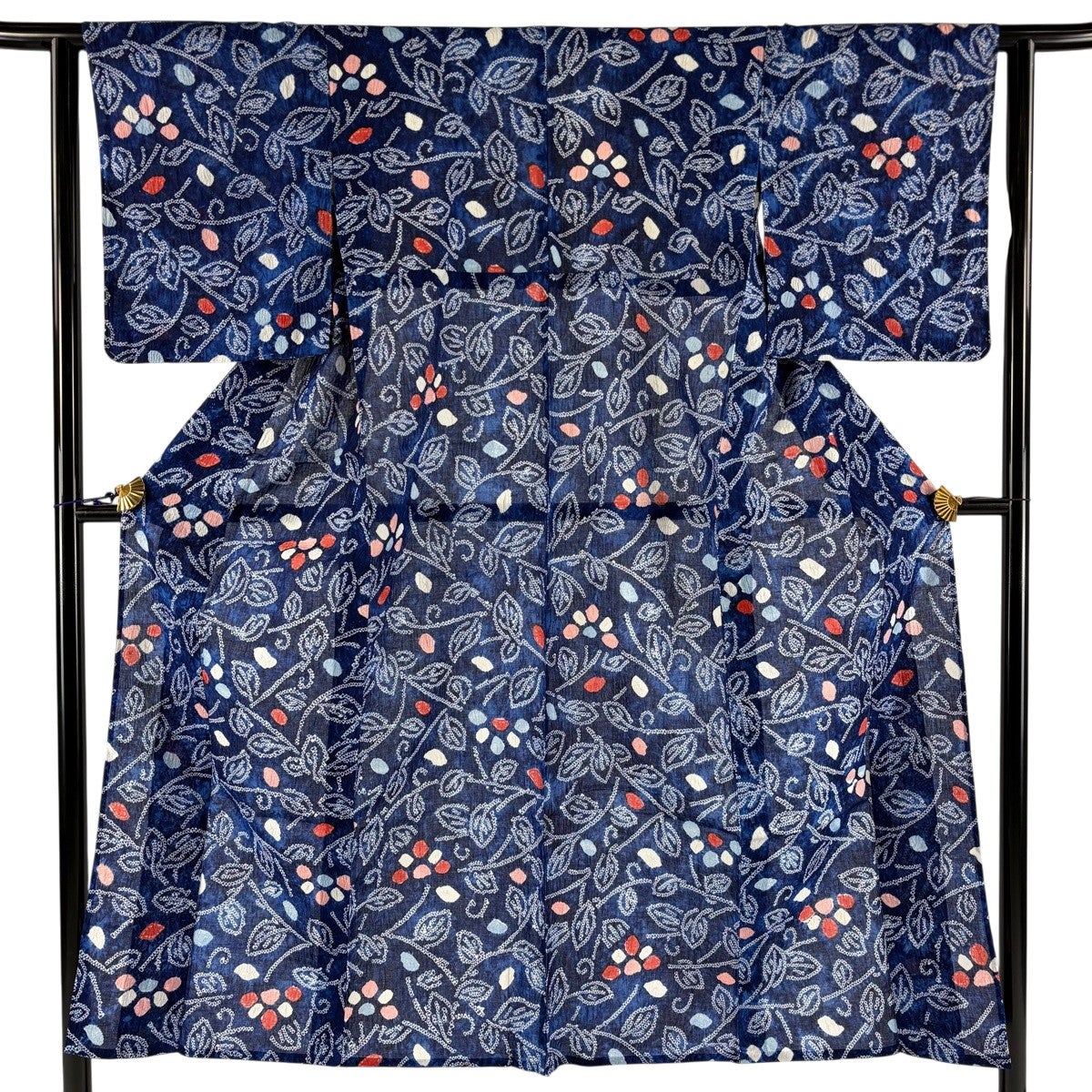 浴衣 身丈162cm 裄丈63cm S 絞り浴衣 草花 青 綿 名品