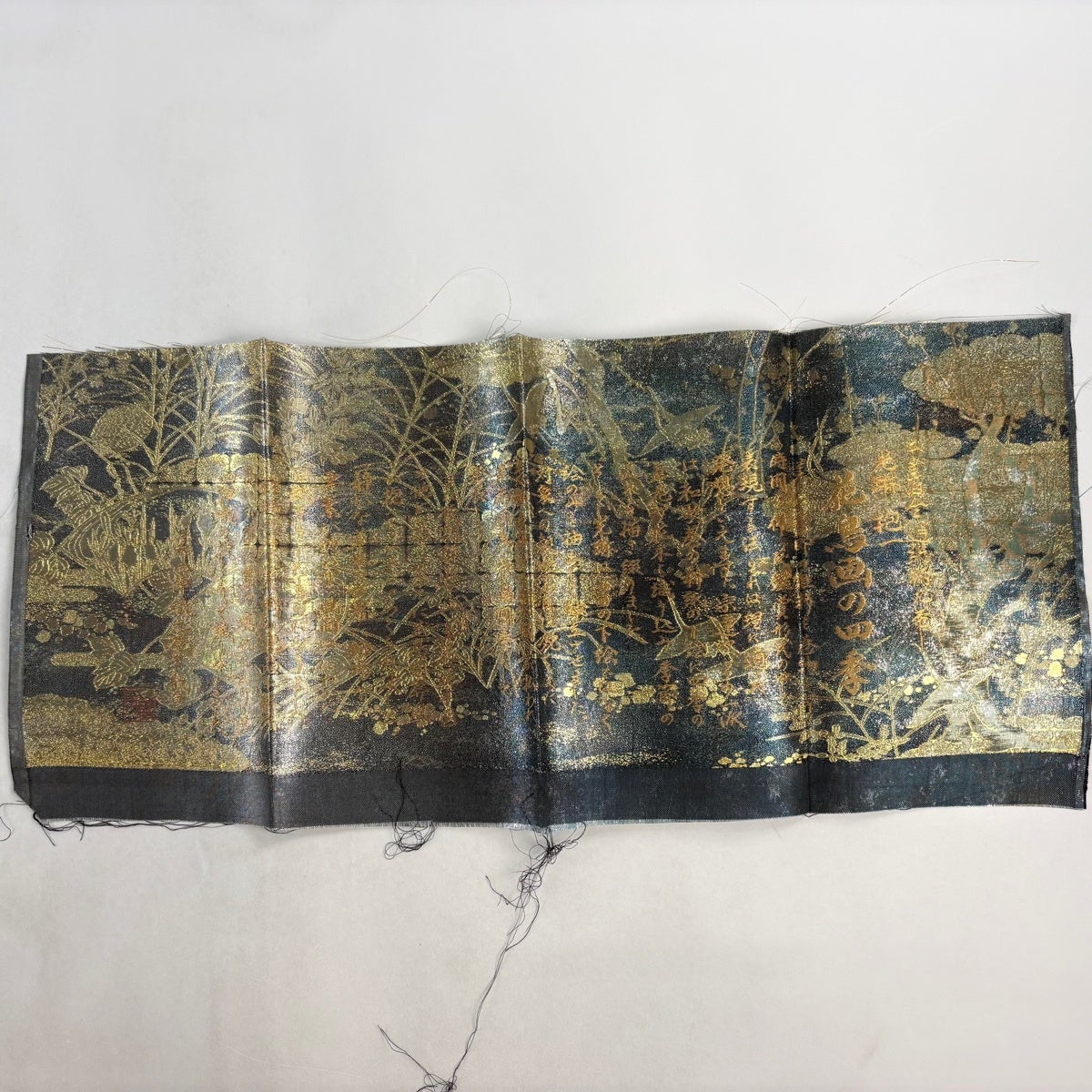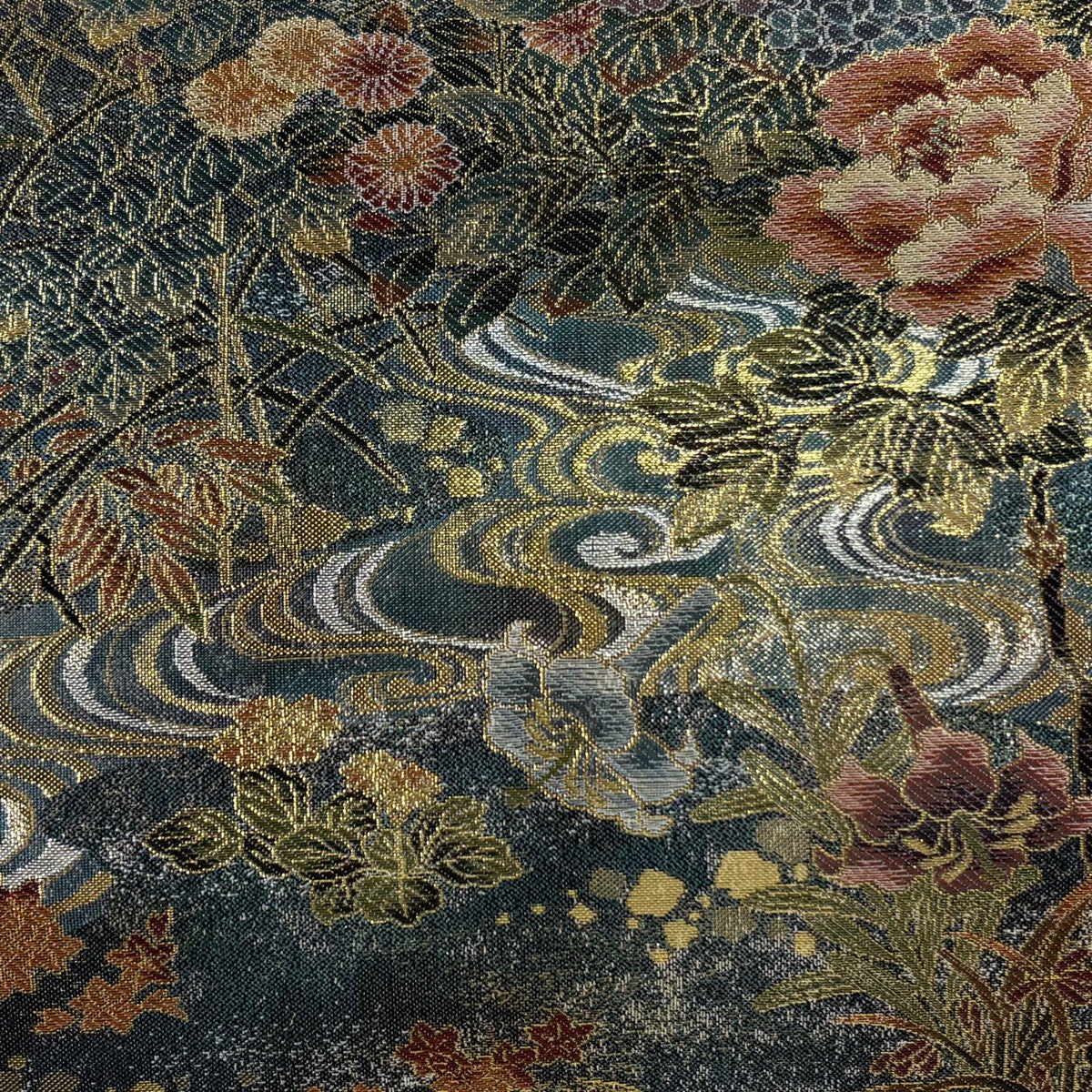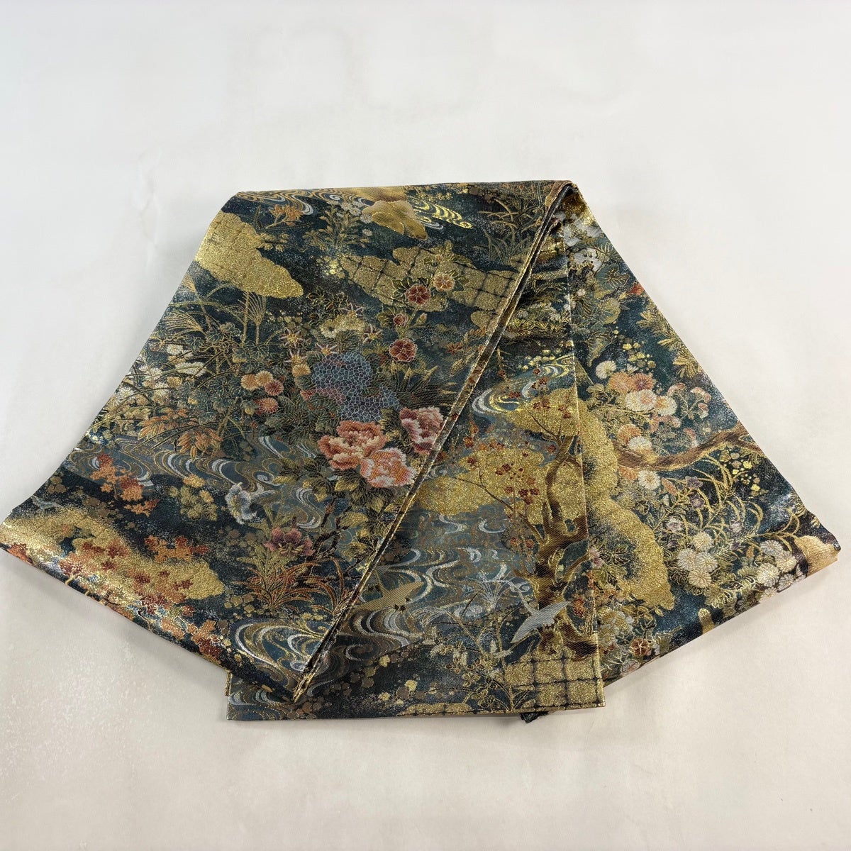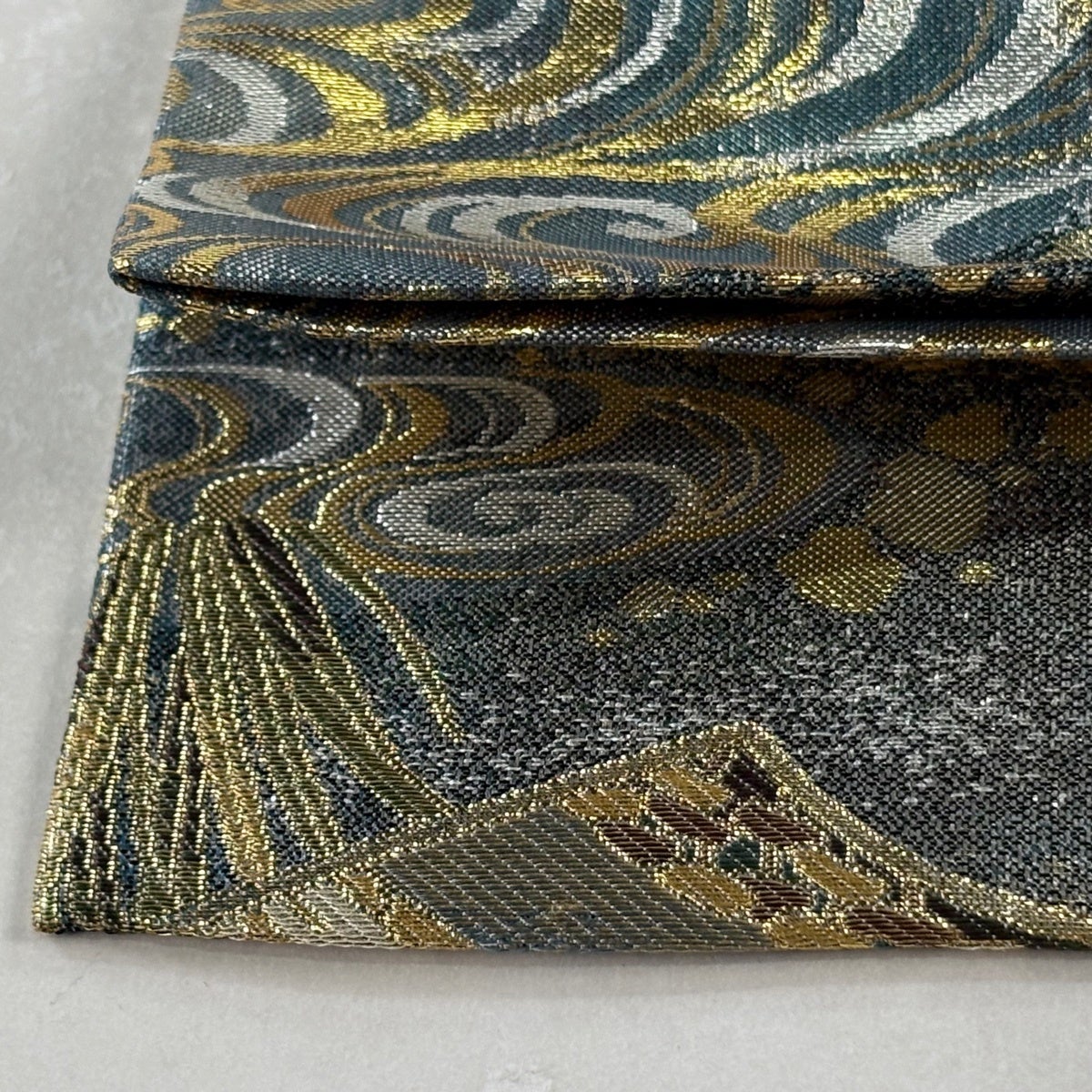 【美品】 袋帯 秀品 振袖向き 立涌華紋 華文 立涌 金銀糸 箔 青緑 六通 正絹