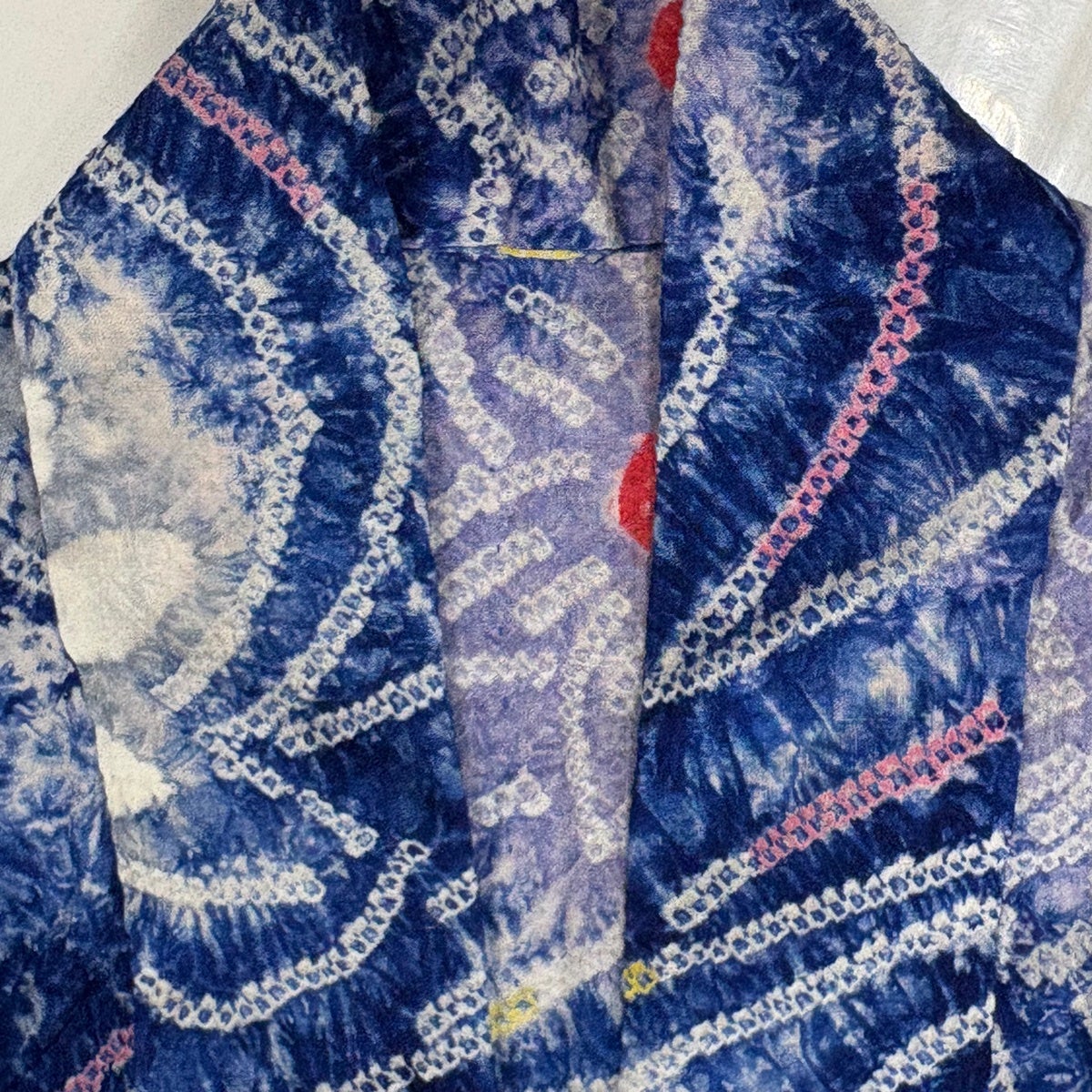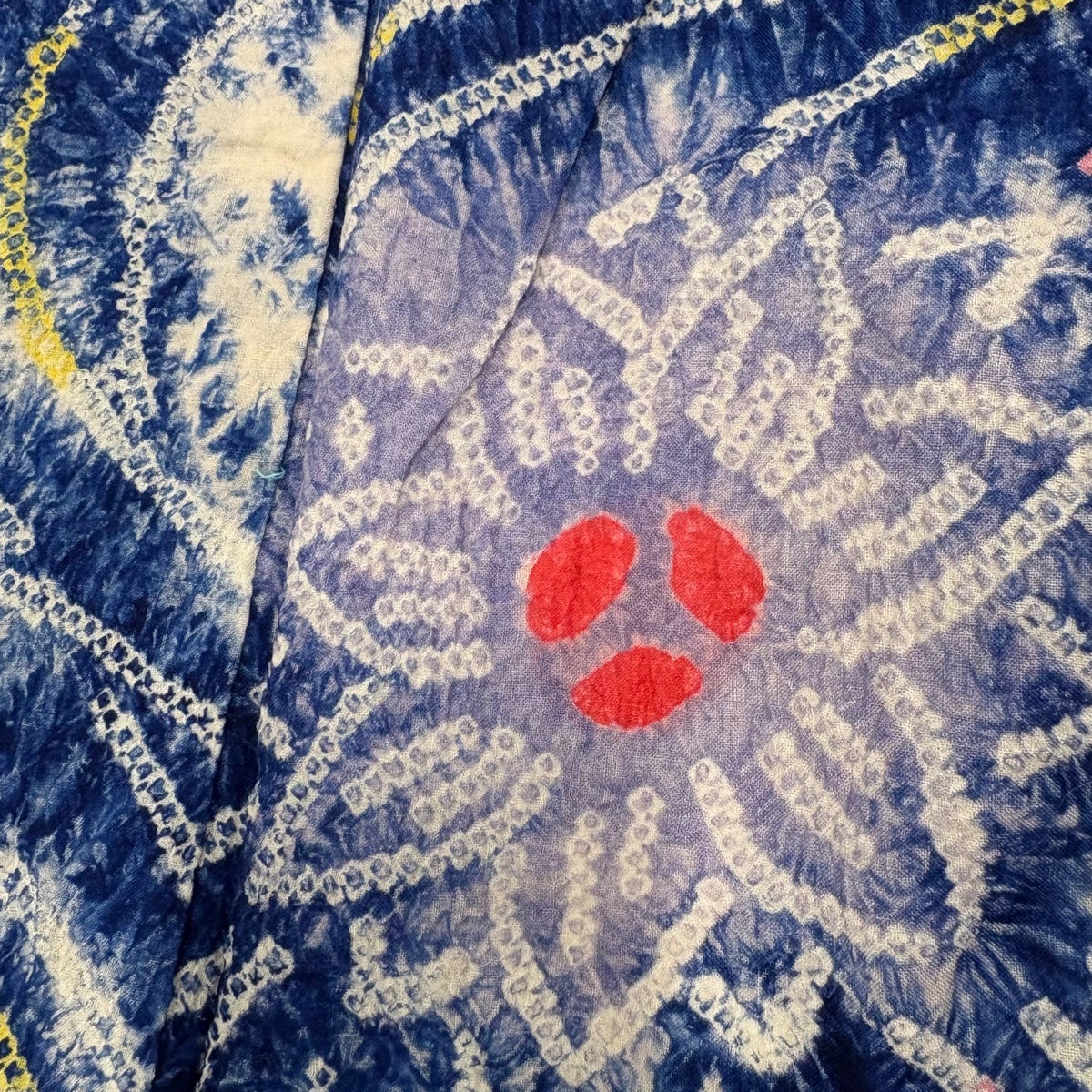 浴衣 身丈152cm 裄丈64cm M 絞り浴衣 草花 リボン 絞り 青 綿 名品