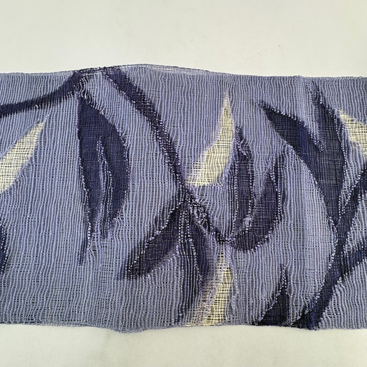 【美品】 袋帯 秀品 夏帯 露芝 銀糸 青紫 お太鼓柄 正絹