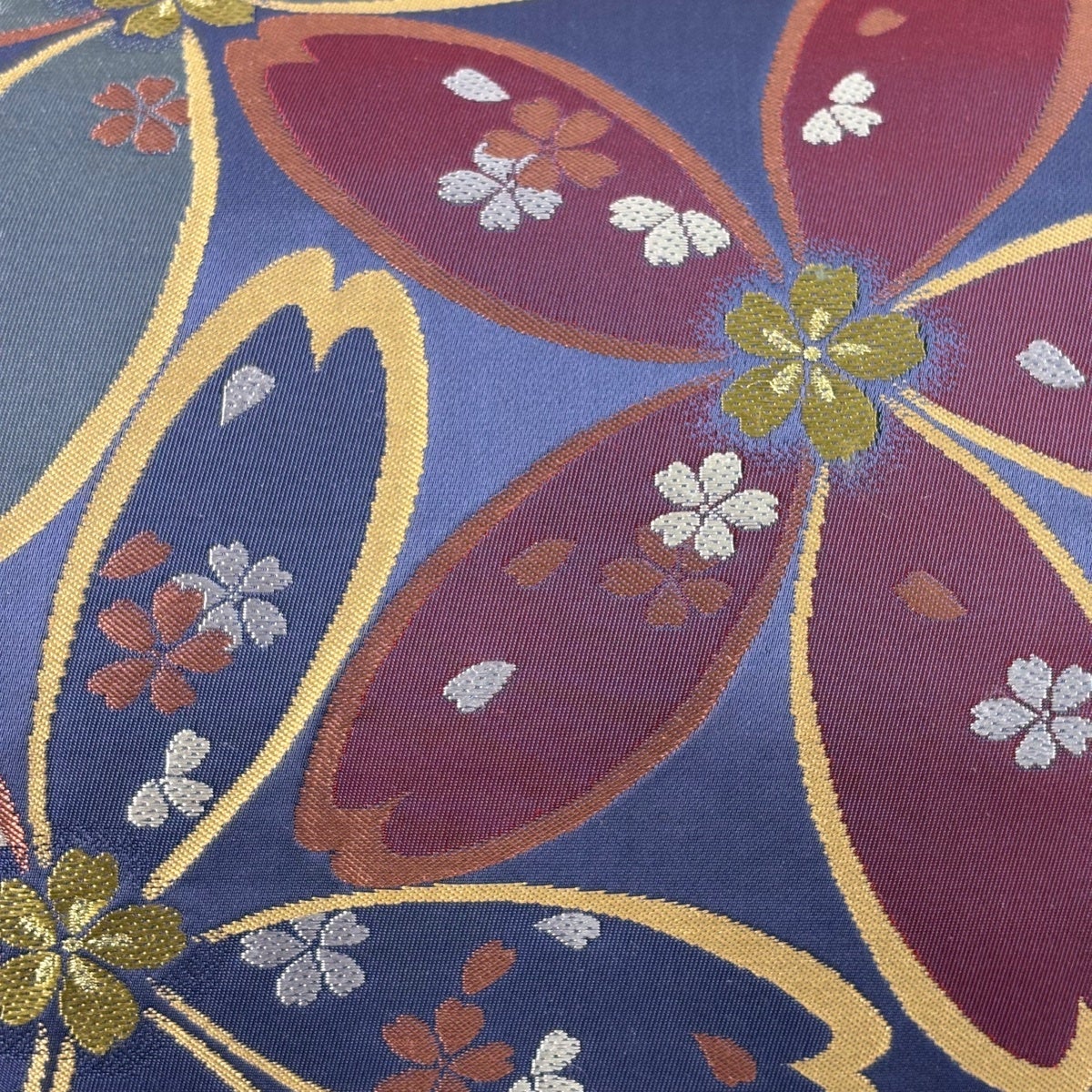 【美品】 袋帯 秀品 桜 組紐 金銀糸 唐織 青紫 六通 正絹