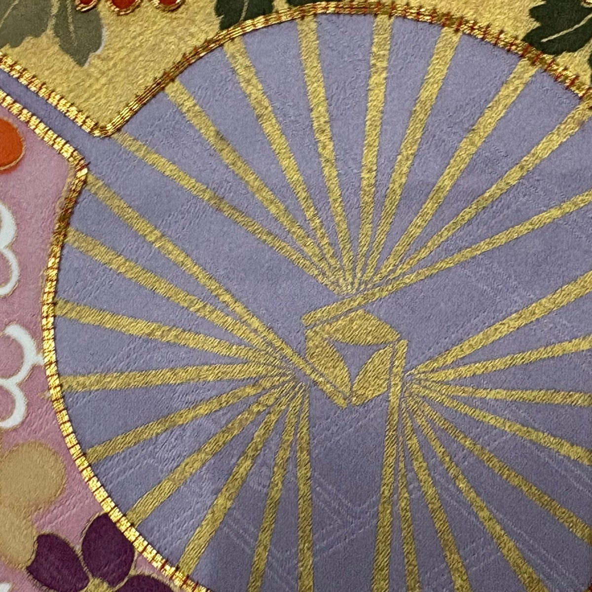 【在庫一掃】 【美品】 袋帯 名品 じゅらく 落款あり 扇面 草花 金糸 箔 青紫 六通 正絹