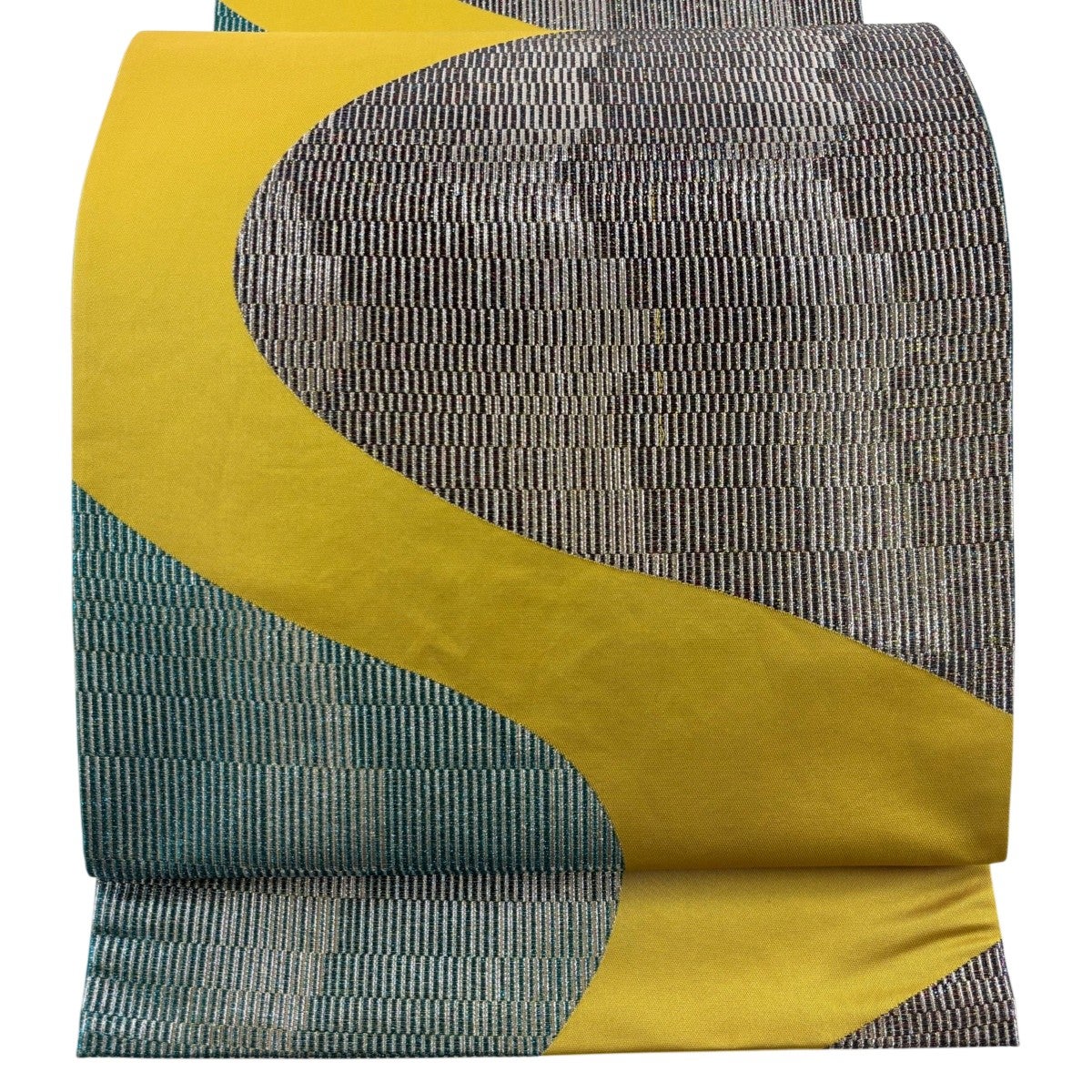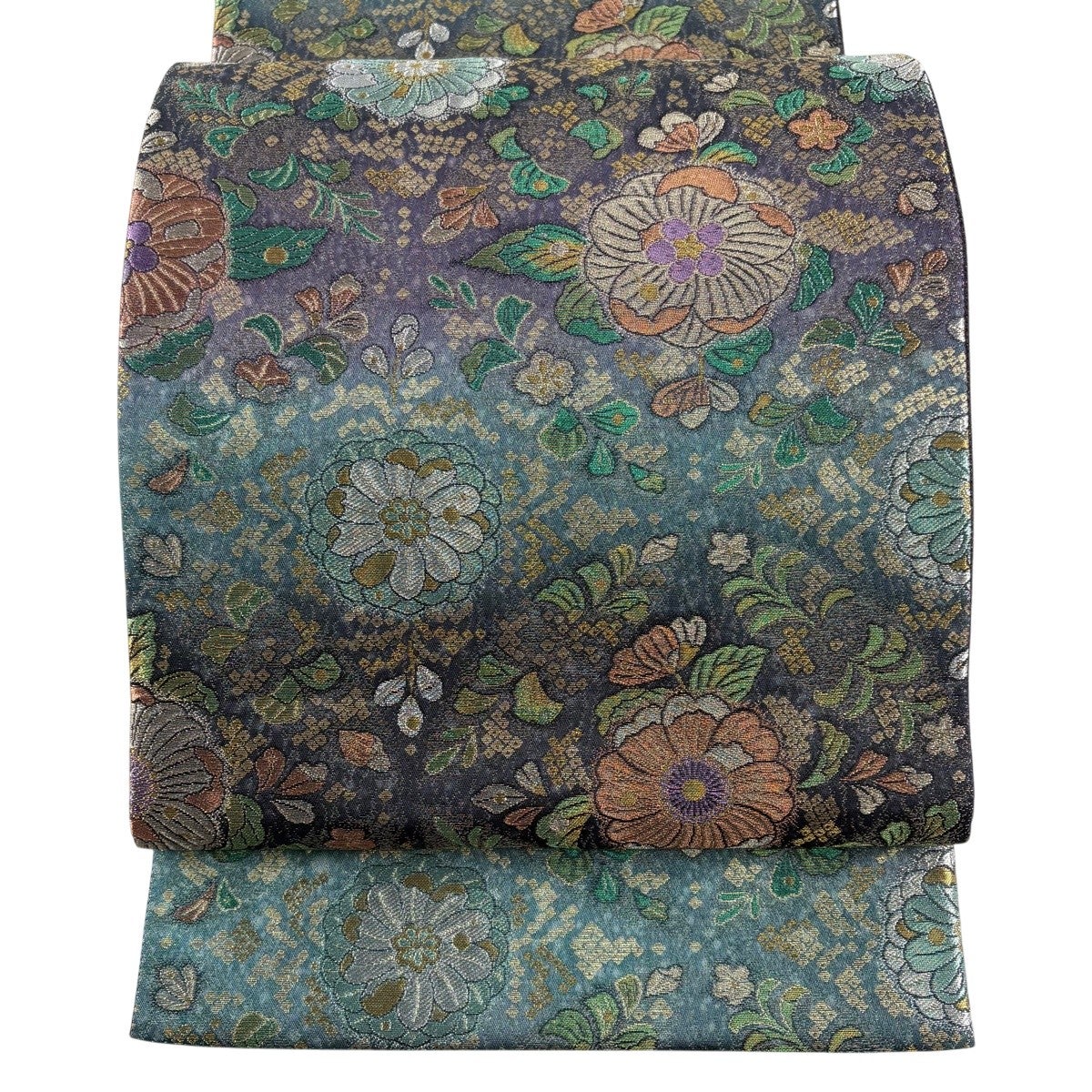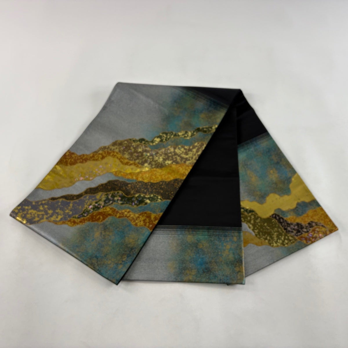 70%OFF 【美品】 袋帯 秀品 山並み 箔 青緑 正絹 K70
