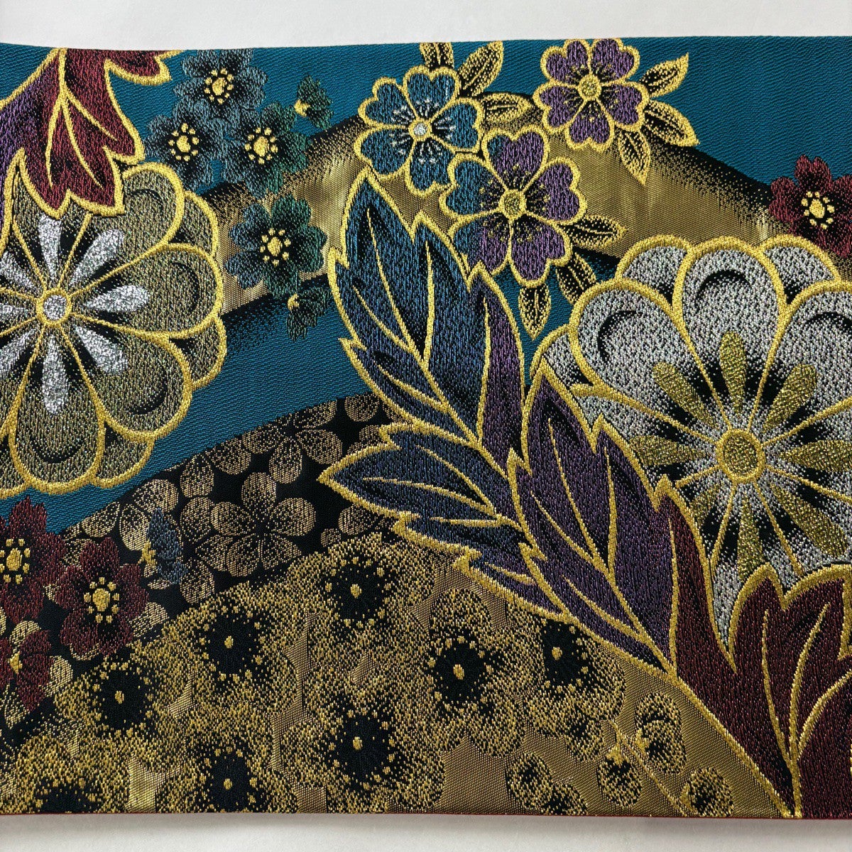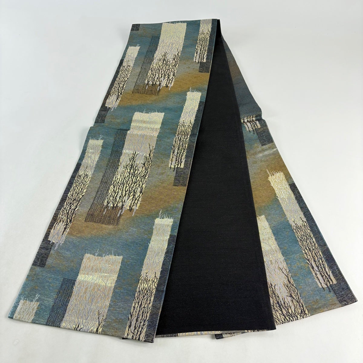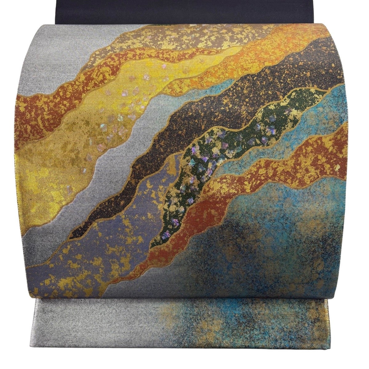 70%OFF 【美品】 袋帯 秀品 山並み 箔 青緑 正絹 K70