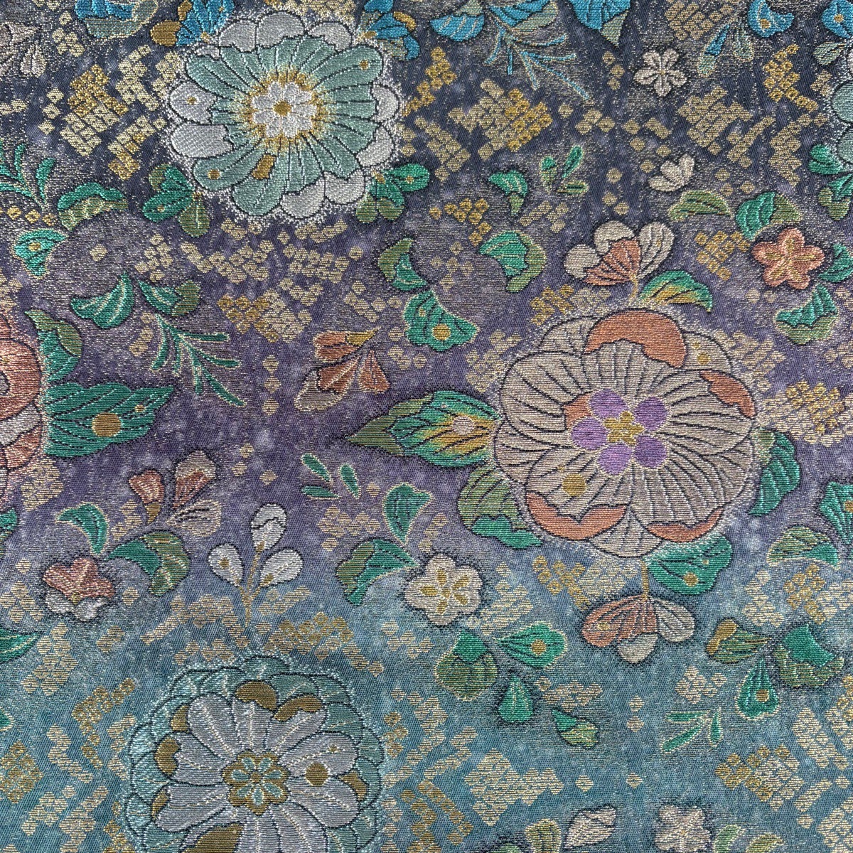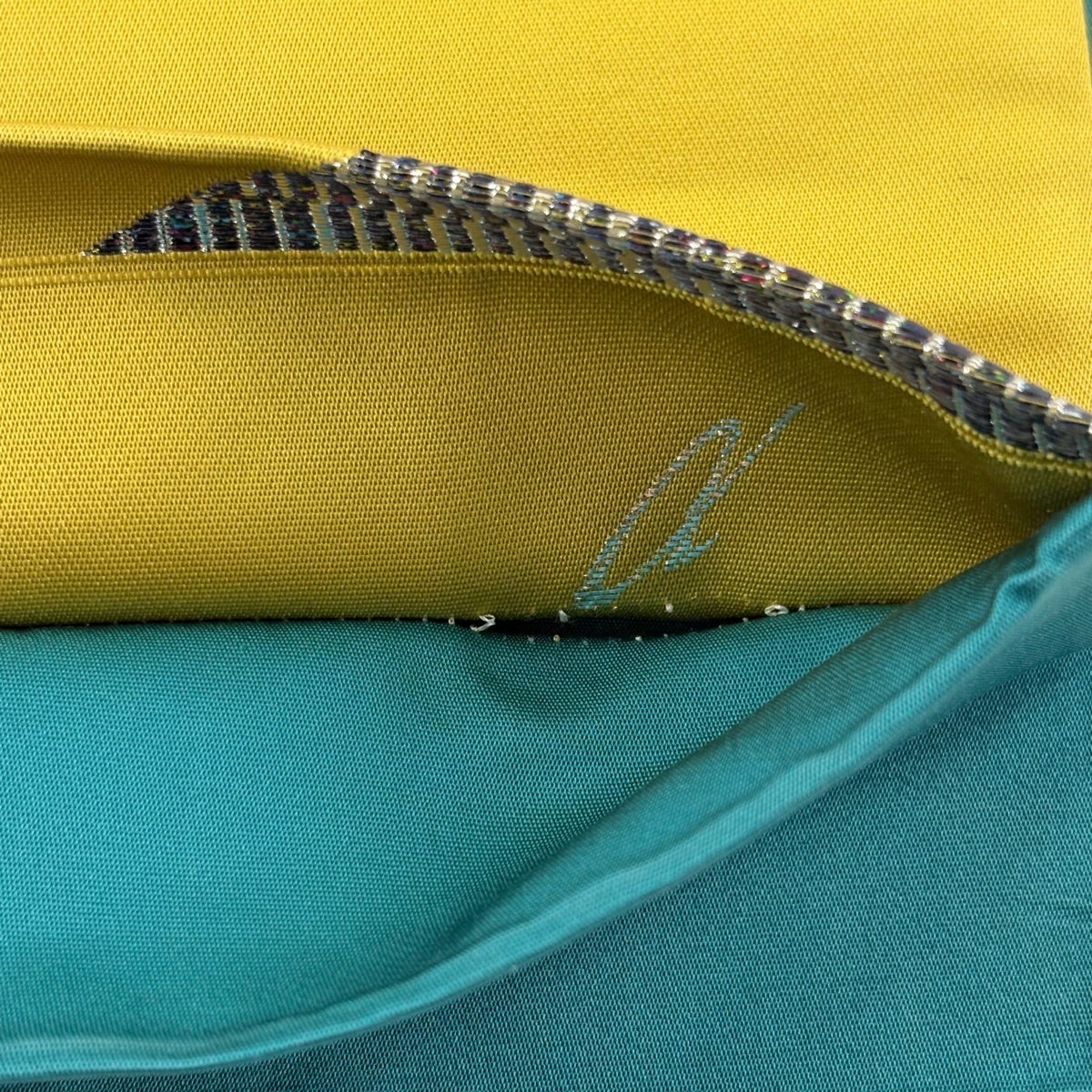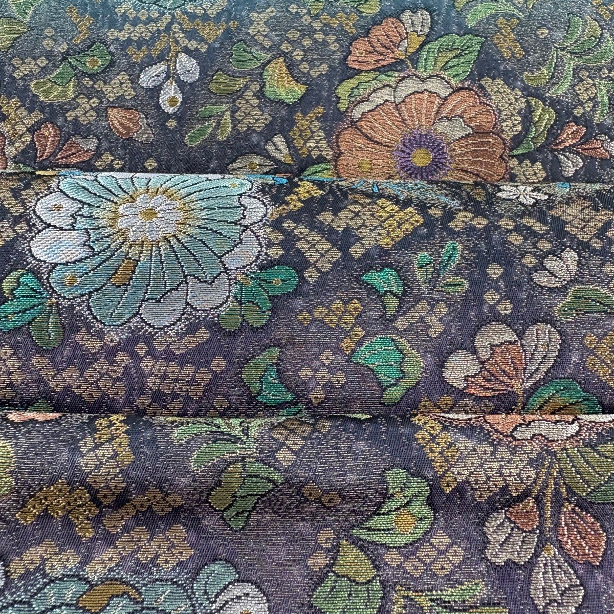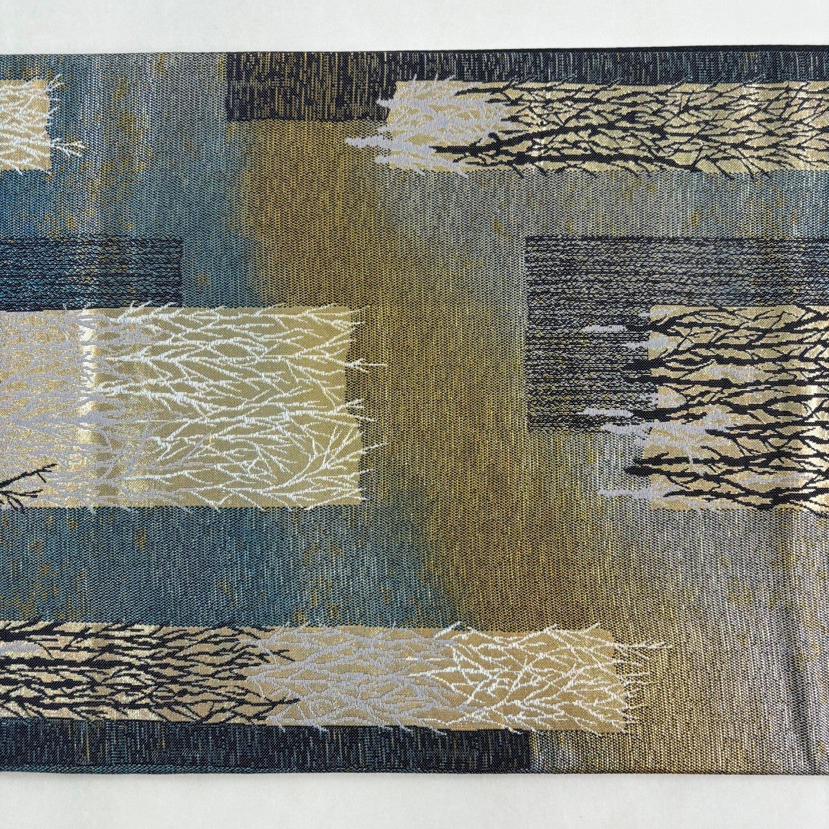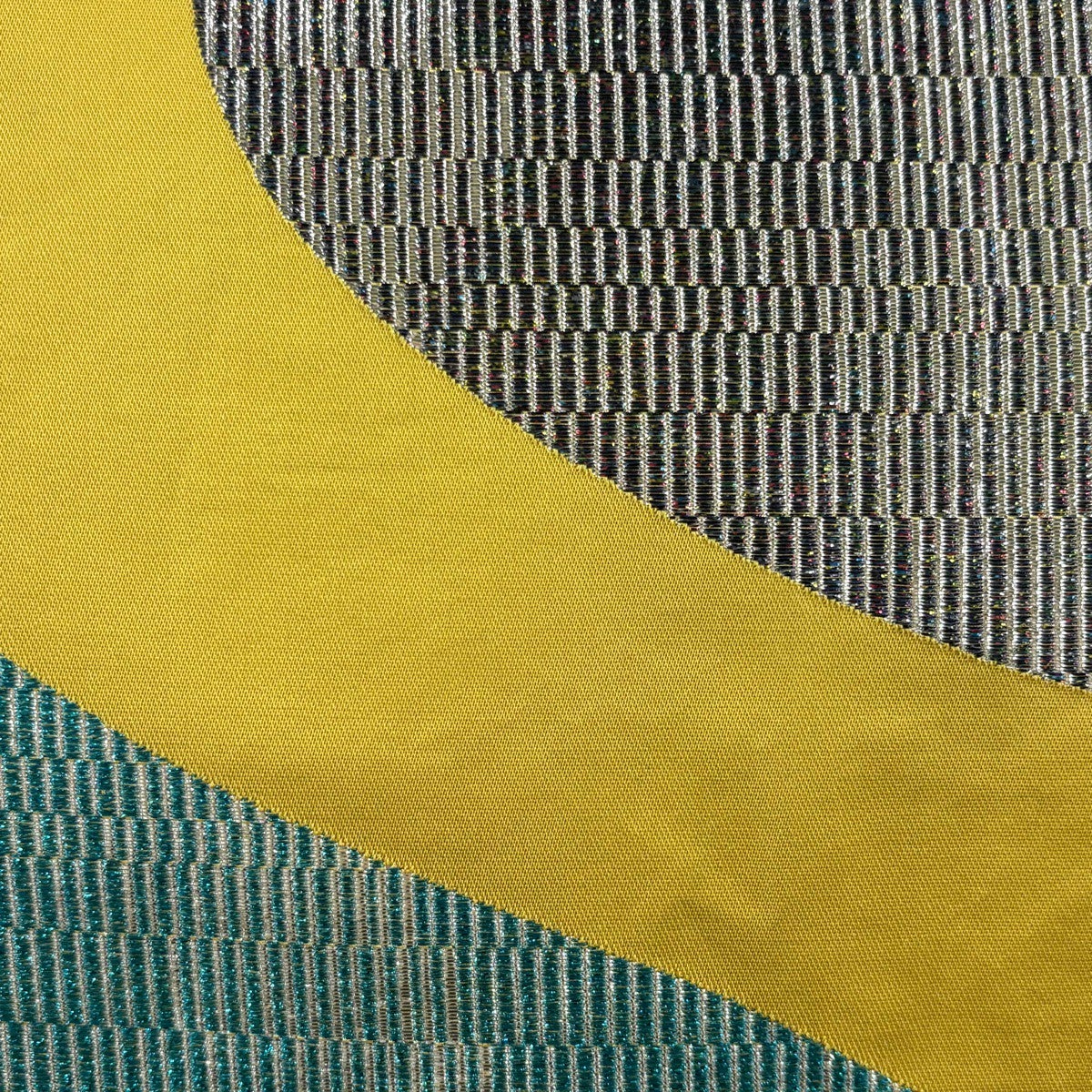 50%OFF 【美品】 袋帯 秀品 幾何学 箔 青緑 六通 正絹 K50