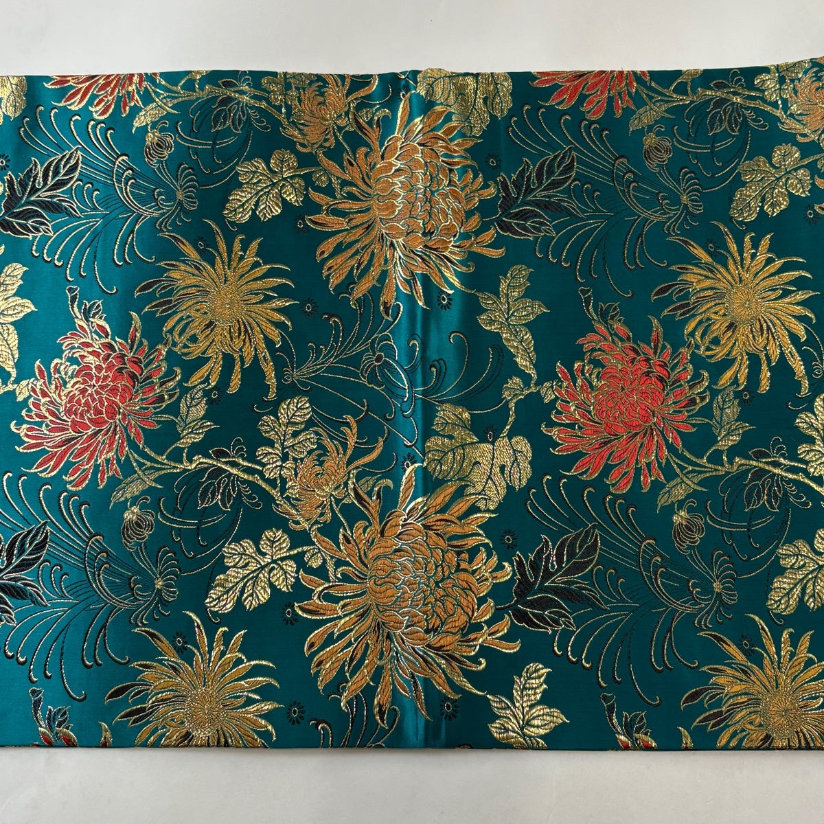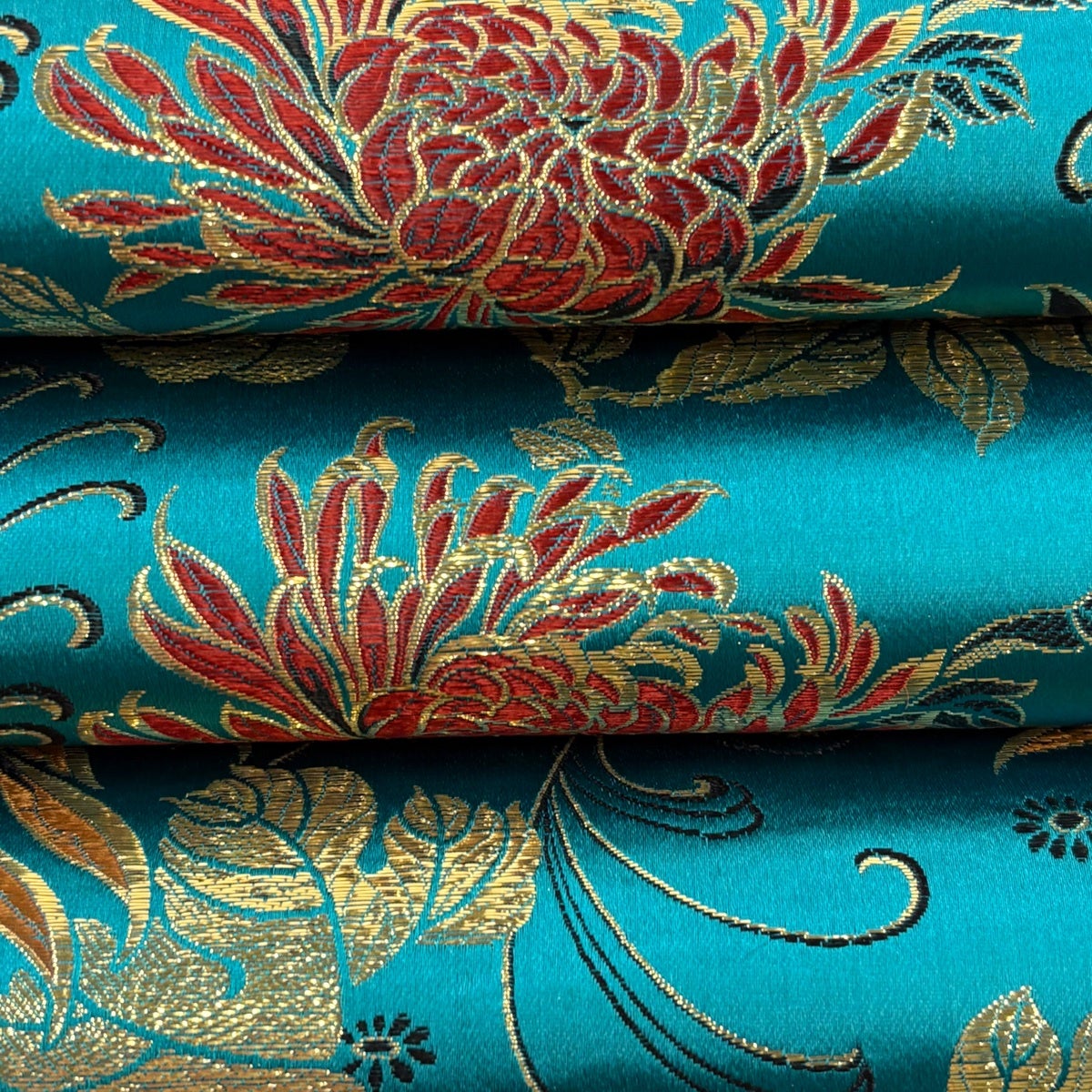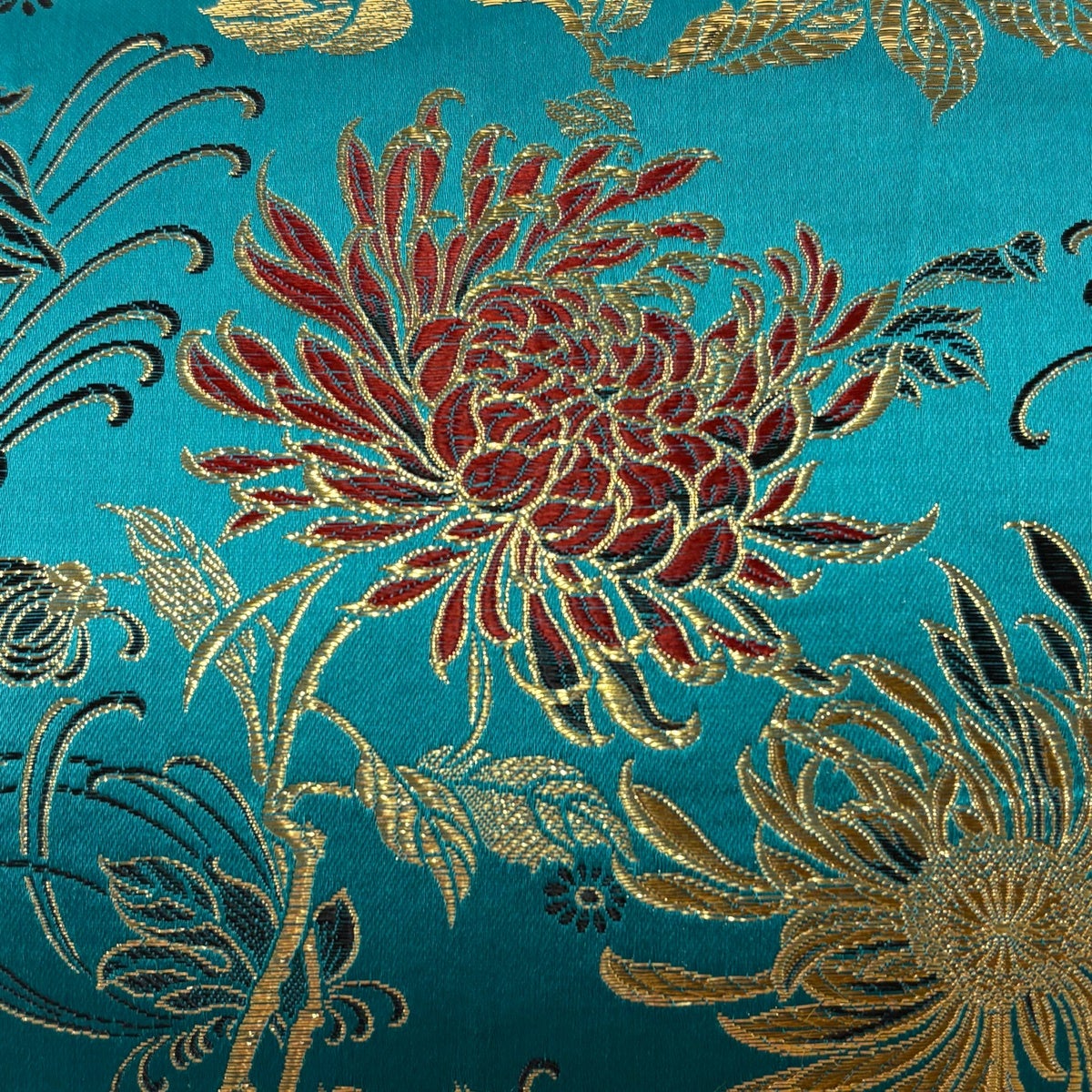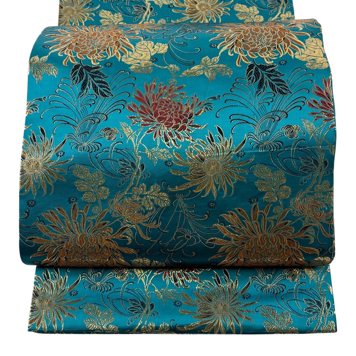 50%OFF 袋帯 秀品 菊 熨斗 刺繍 金糸 青緑 六通 正絹 K50