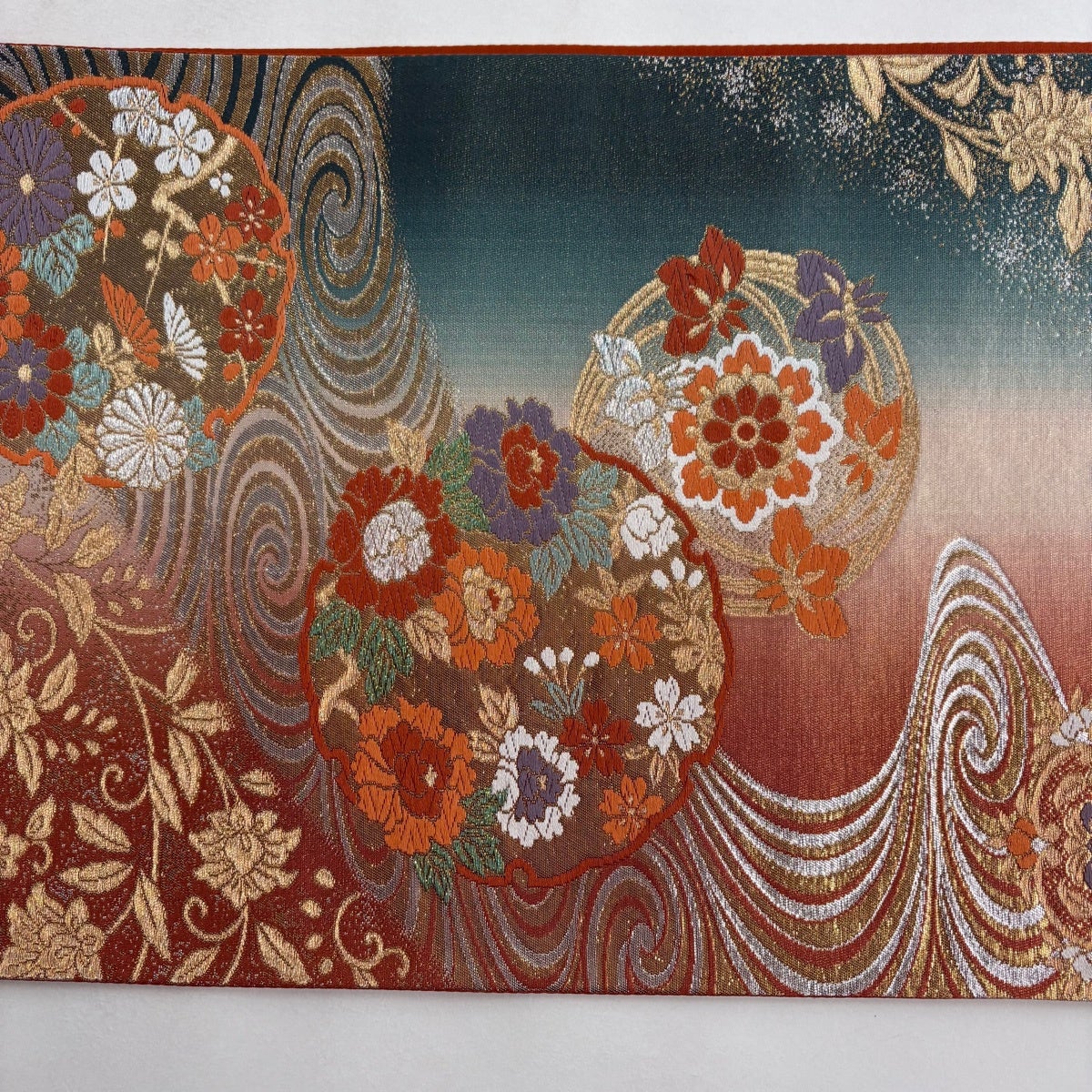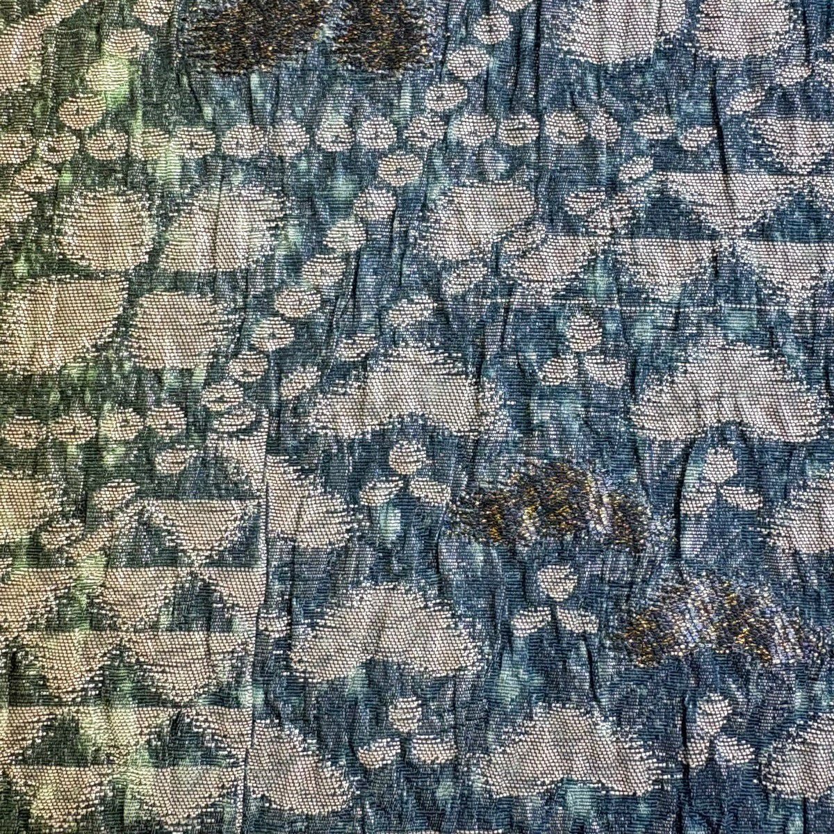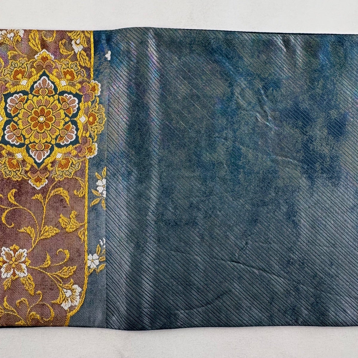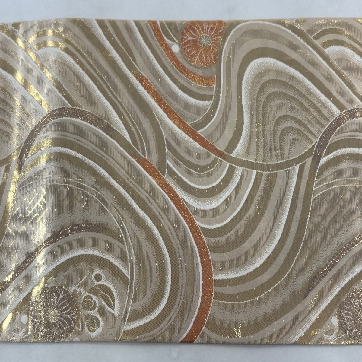 50%OFF 袋帯 名品 全通両面織 波 箔 青緑 全通 正絹 K50