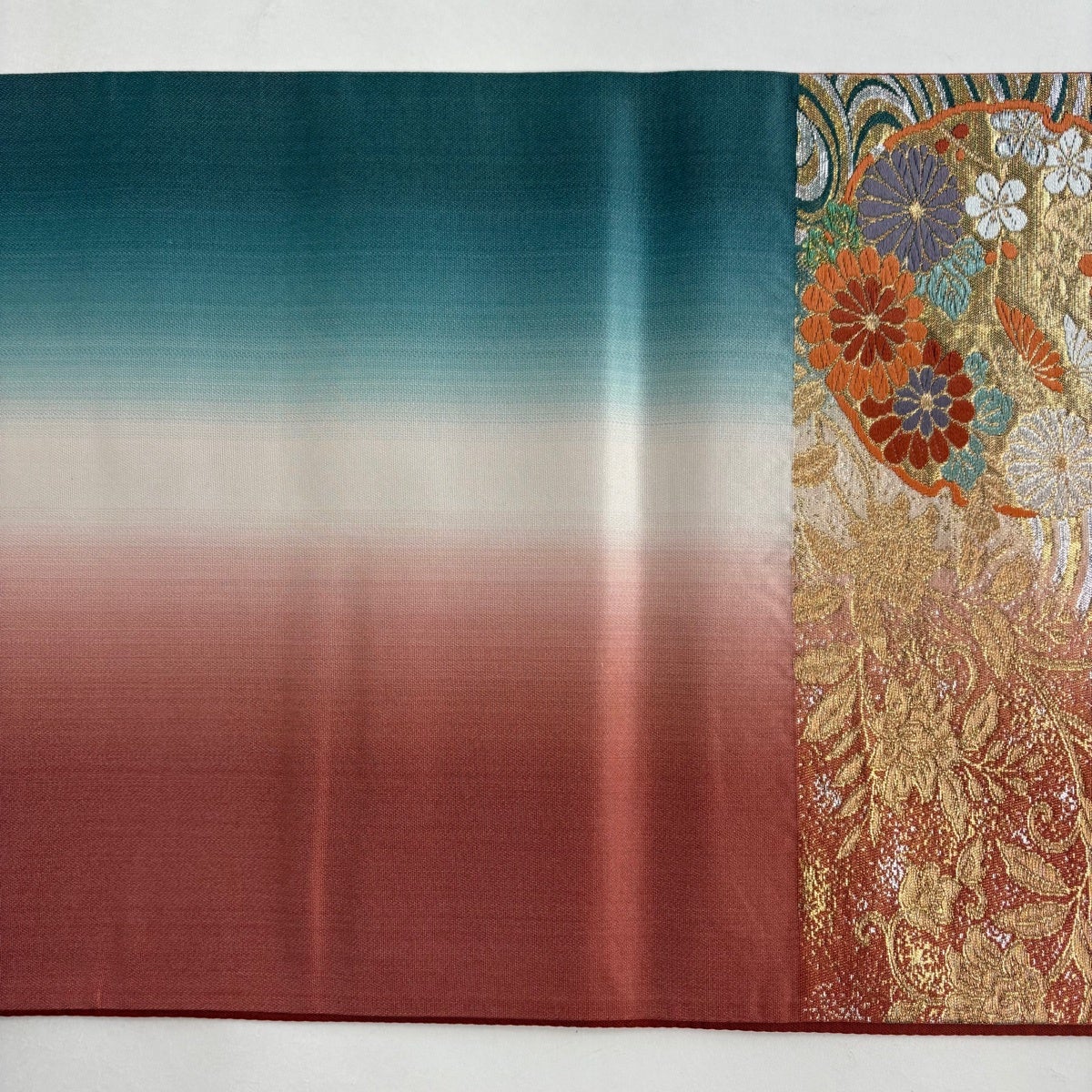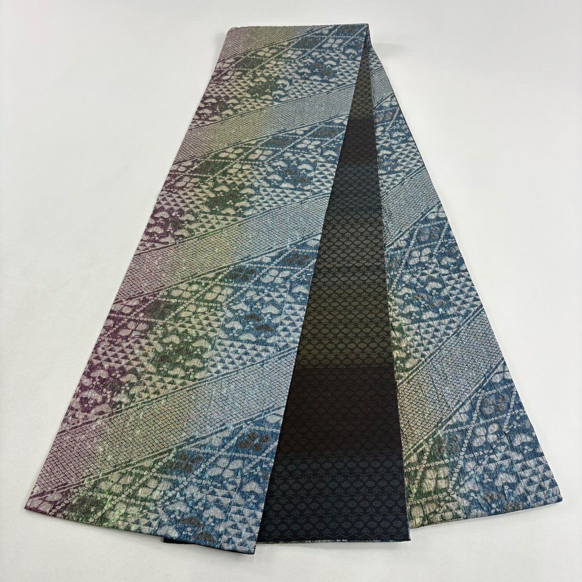 30%OFF 袋帯 秀品 夏帯 ぼかし柄 箔 青緑 全通 正絹 K30