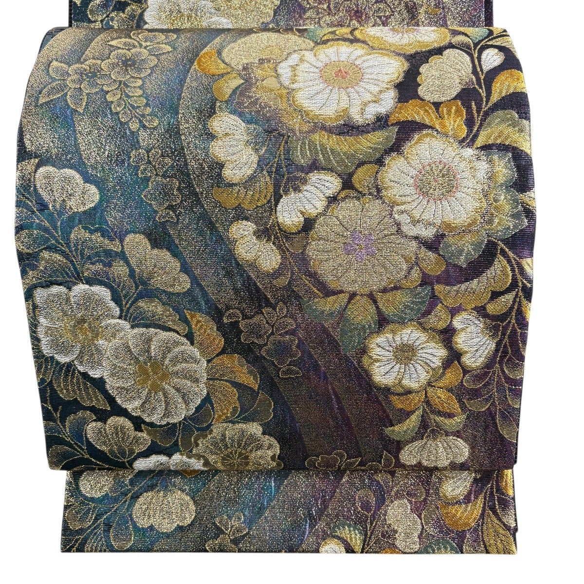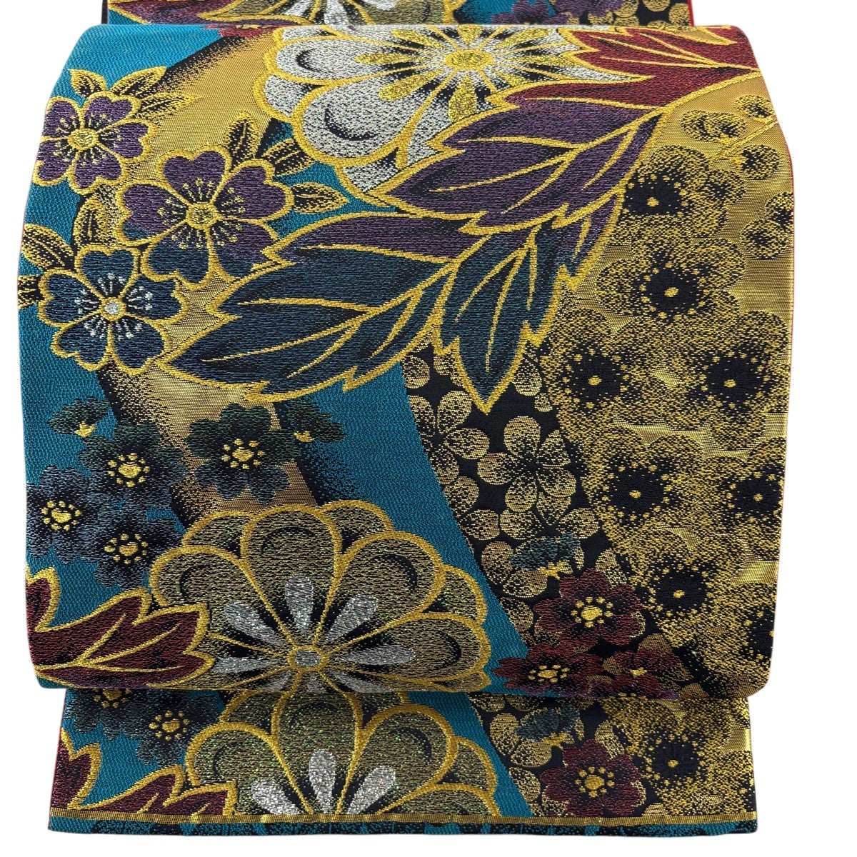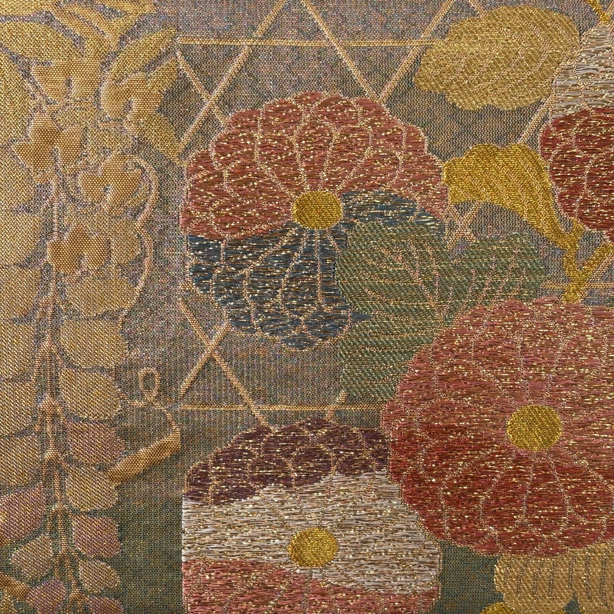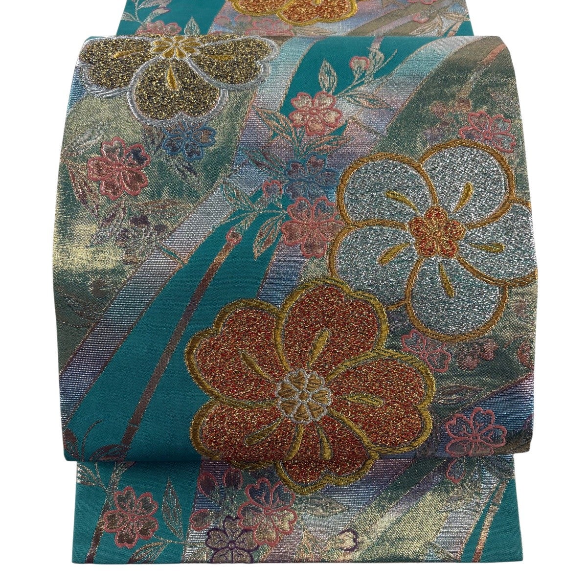 50%OFF 名古屋帯 秀品 椿 金通し 金銀彩 青緑 正絹 K50