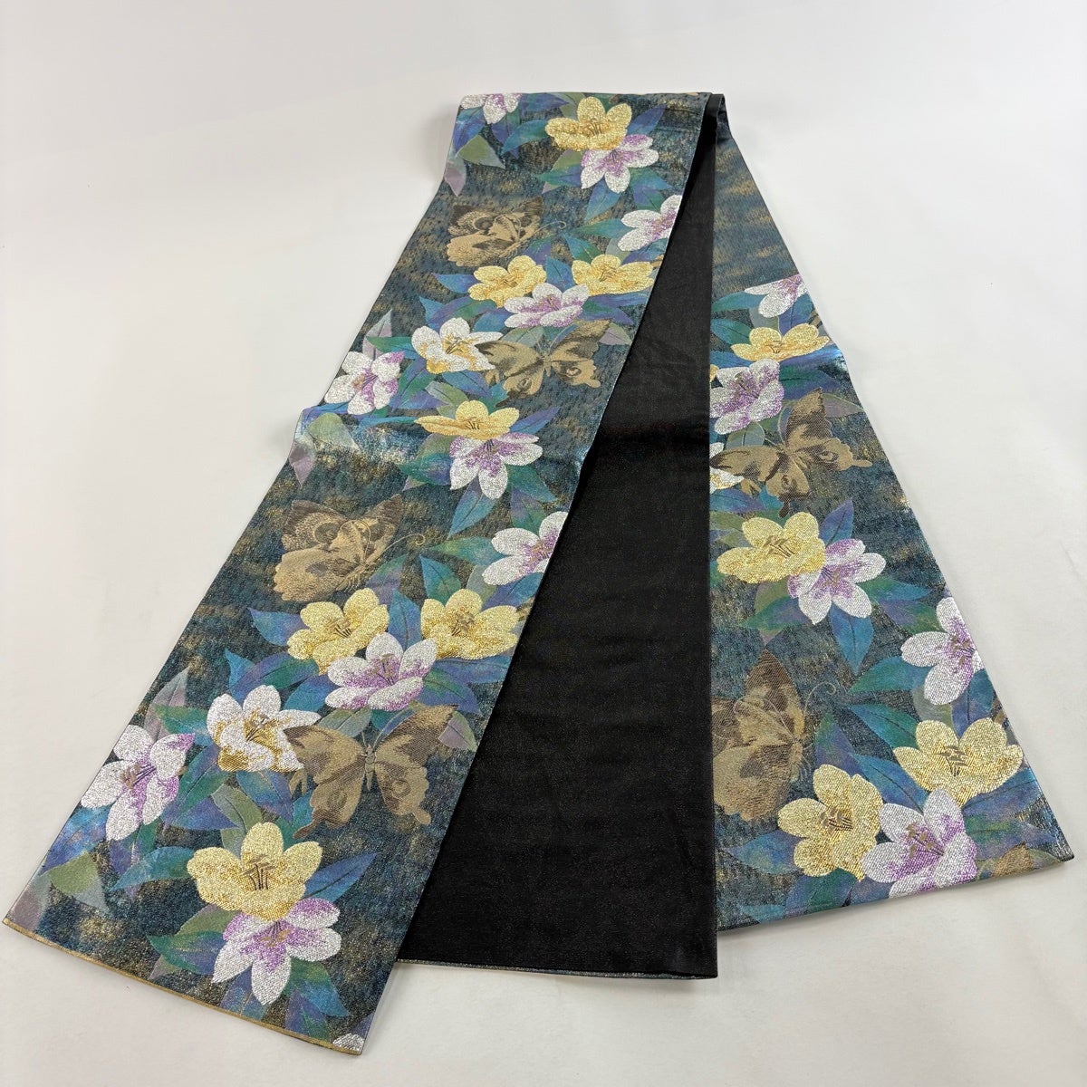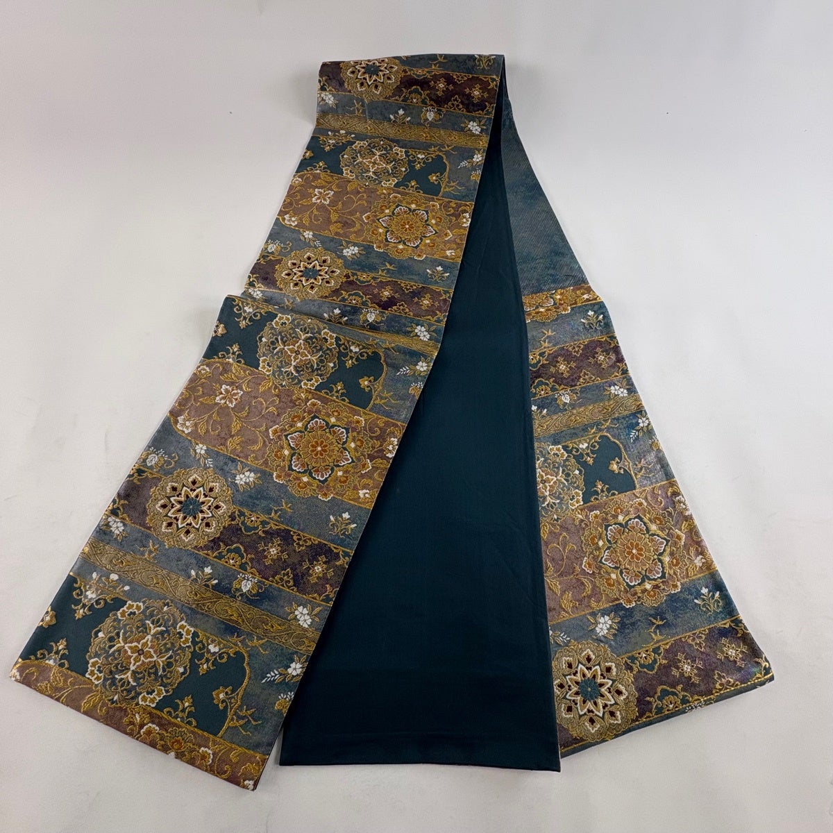 【最終価格】 70%OFF 半幅帯 優品 蝶 霞 箔 青緑 化繊 K70