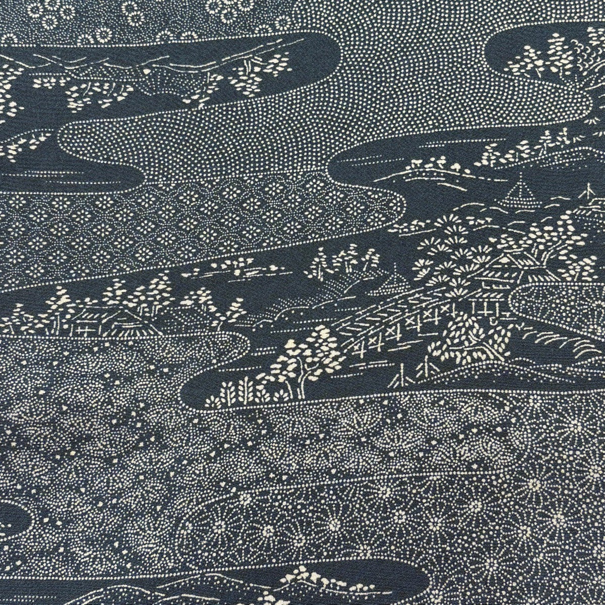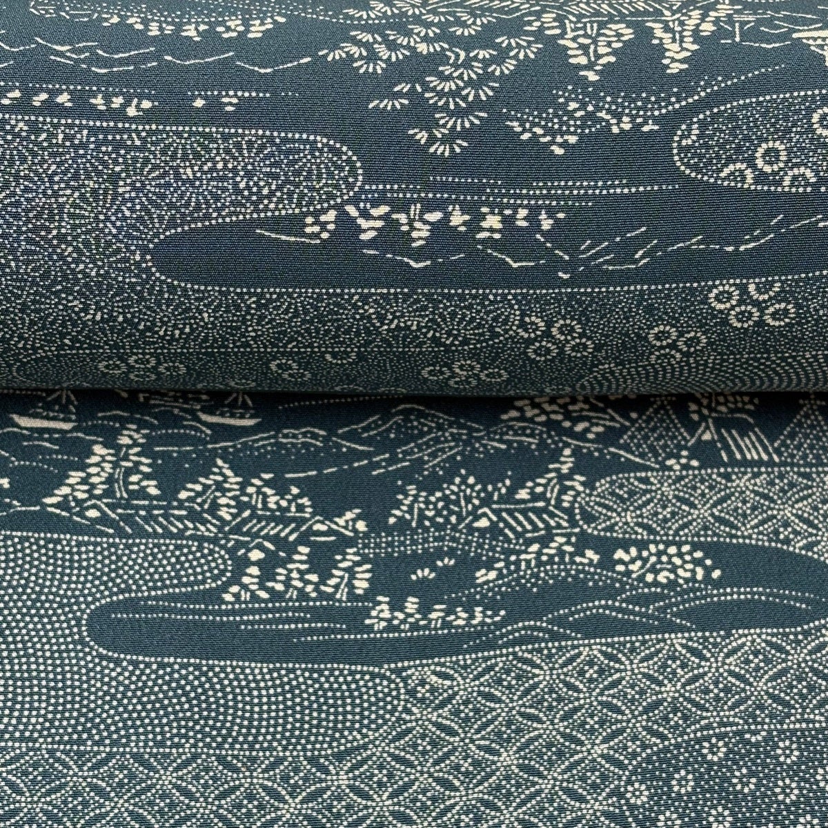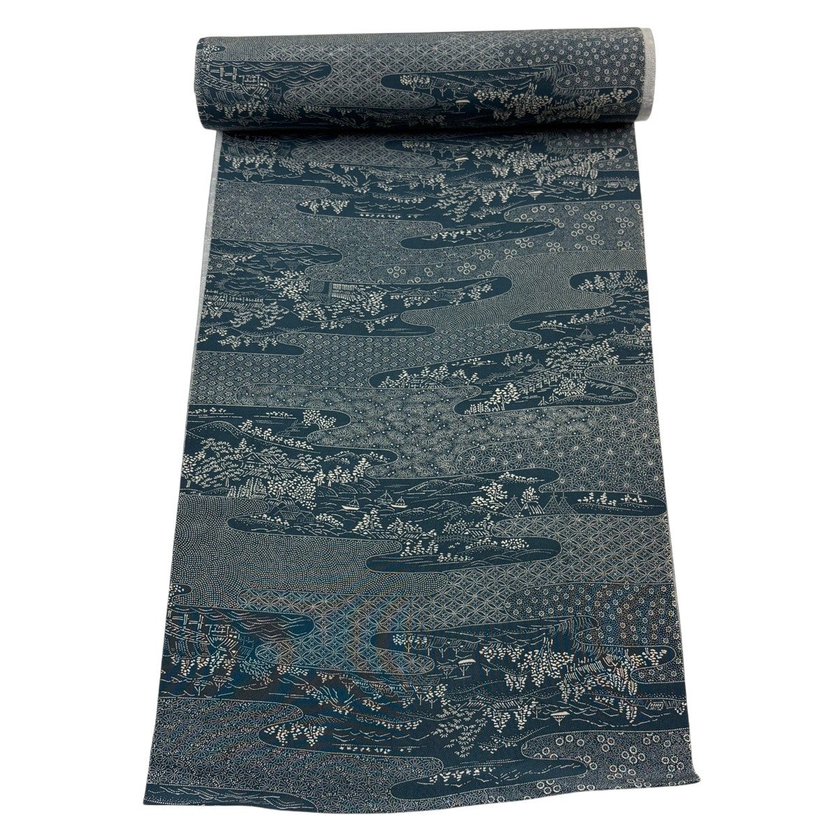 50%OFF 反物 秀品 紬 証紙有 樹木 建物 青緑 正絹 K50